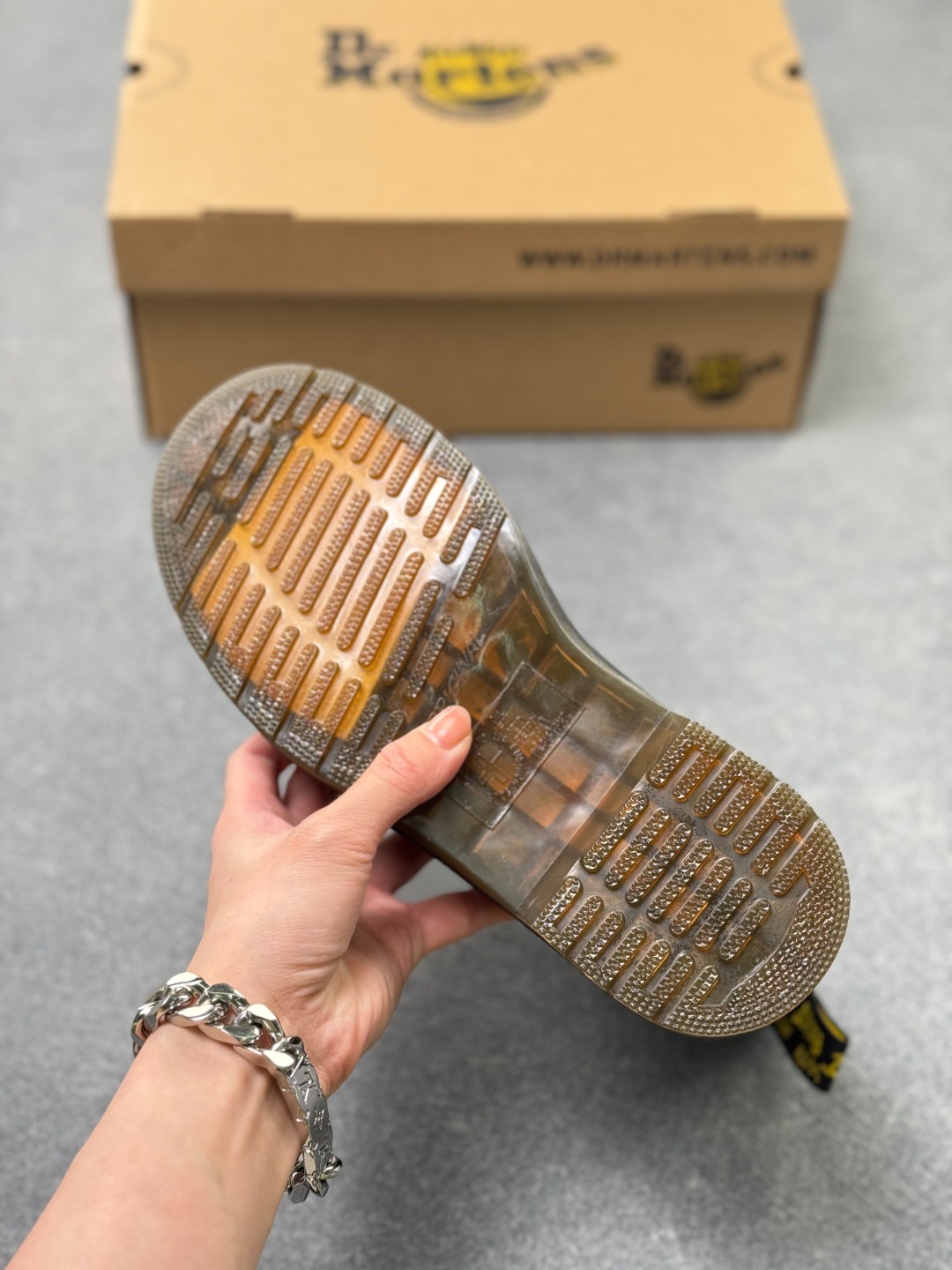 采用硬质牛培开边珠牛培皮打造鞋面 厚实耐磨PVC原厂透明水晶橡胶大底 原版一致空胶工艺 真实大底拉帮线锁底