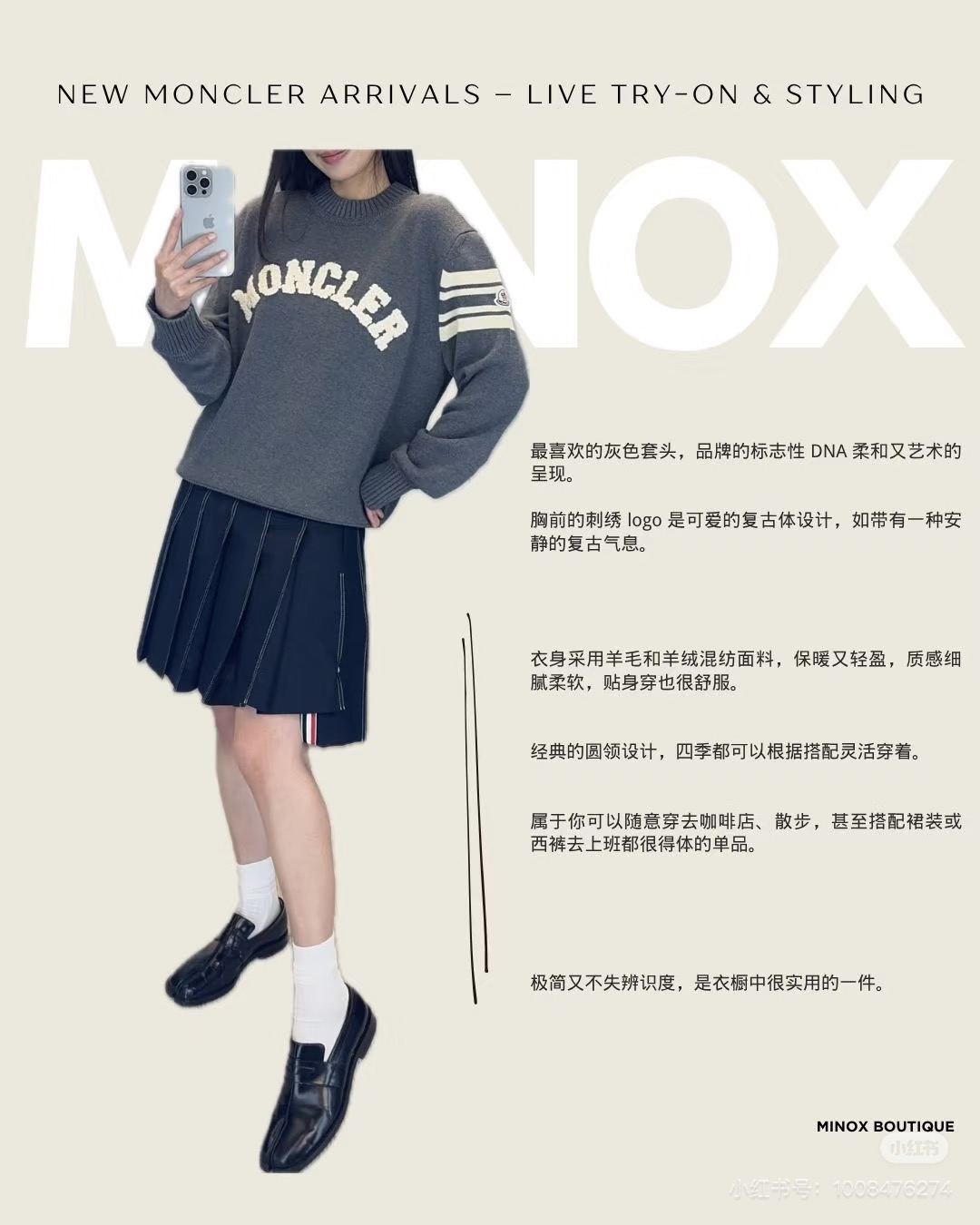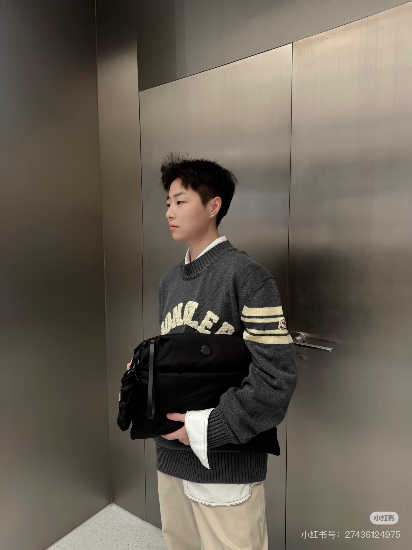模特咨询图 款号 Y273 Moncler 蒙口情侣款春秋冬两色小标毛巾绣针织圆领毛衣