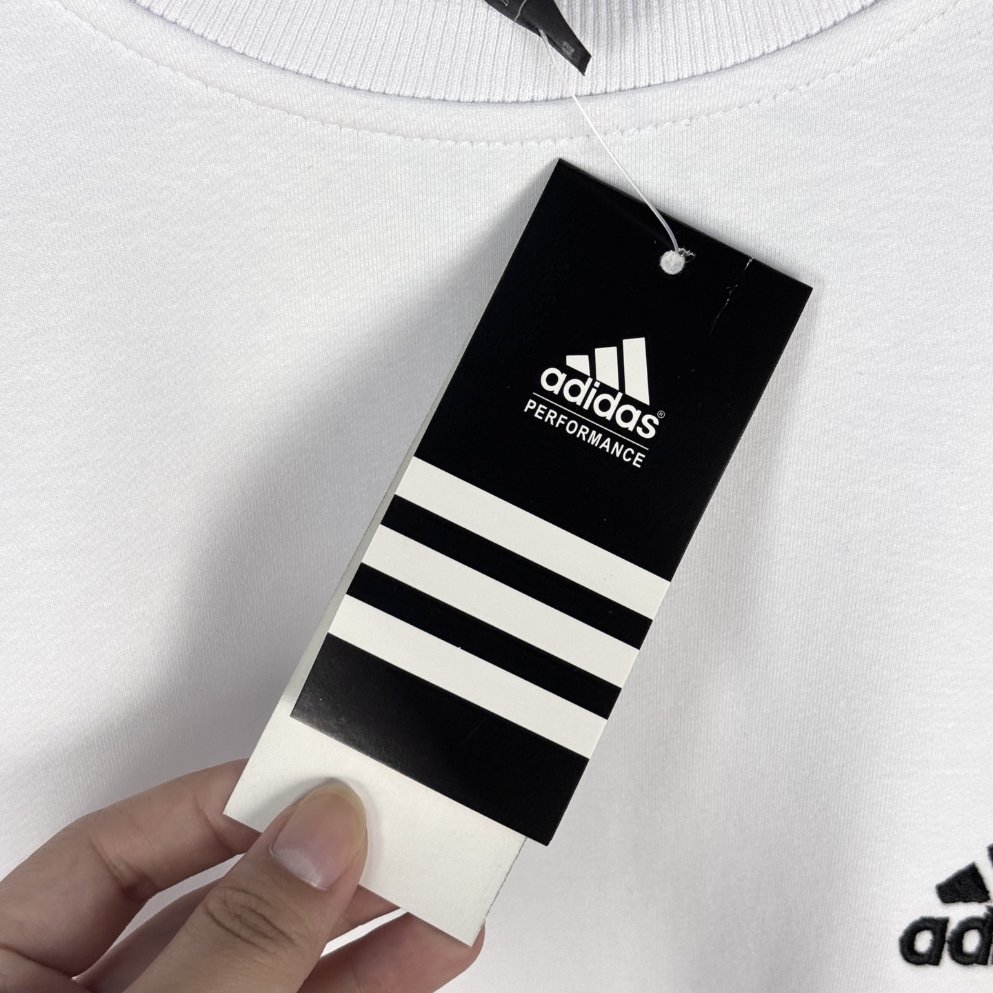面料采用定制原版春季大克重空气棉 胸口处字母采用万针刺绣 清晰饱满无毛边 后脖领处螺纹采用logo包边织带 袖子有阿迪经典三条杠 从领口处一直延伸至袖口处 胸口经典小logo搭配纯色整体 经典百搭 男女都好穿