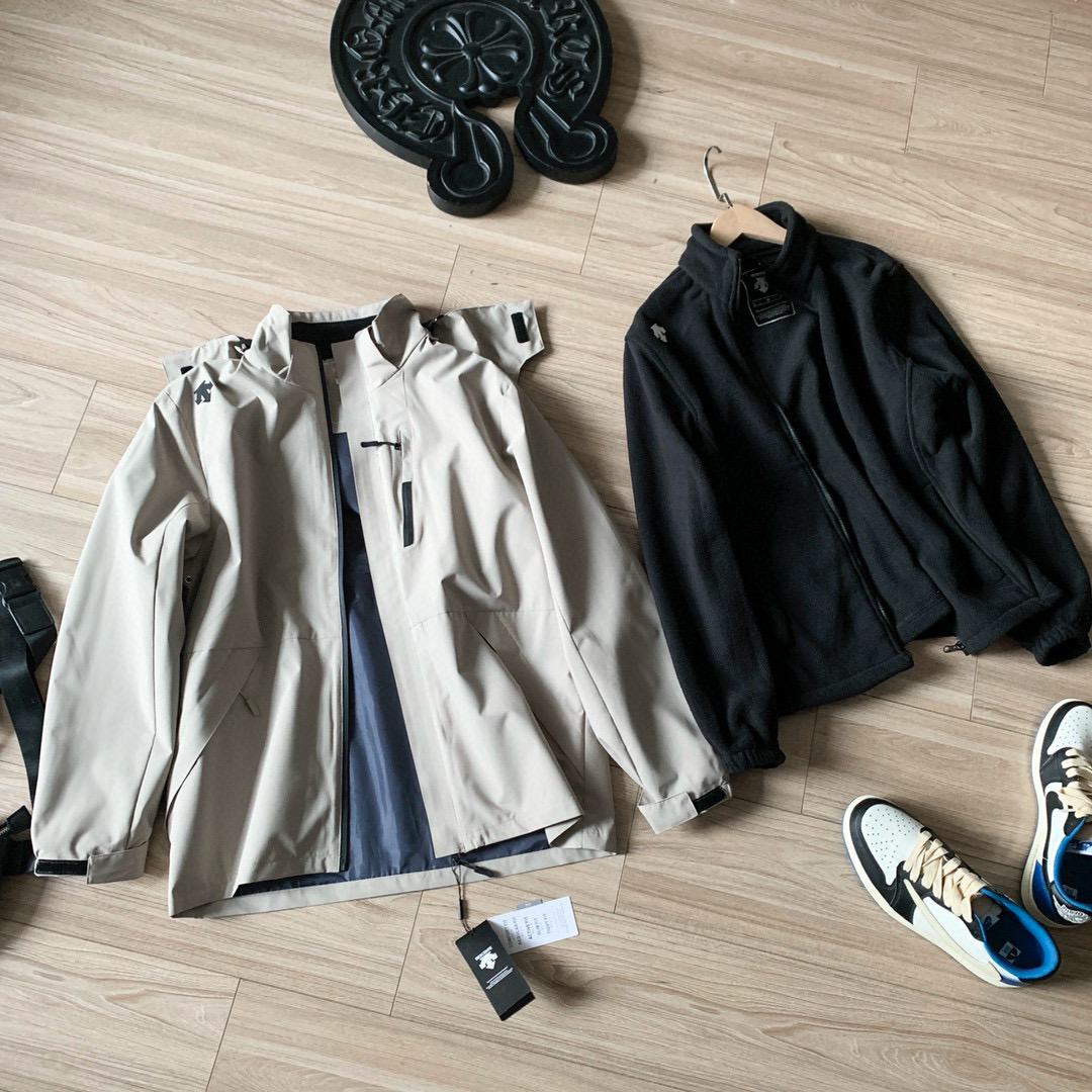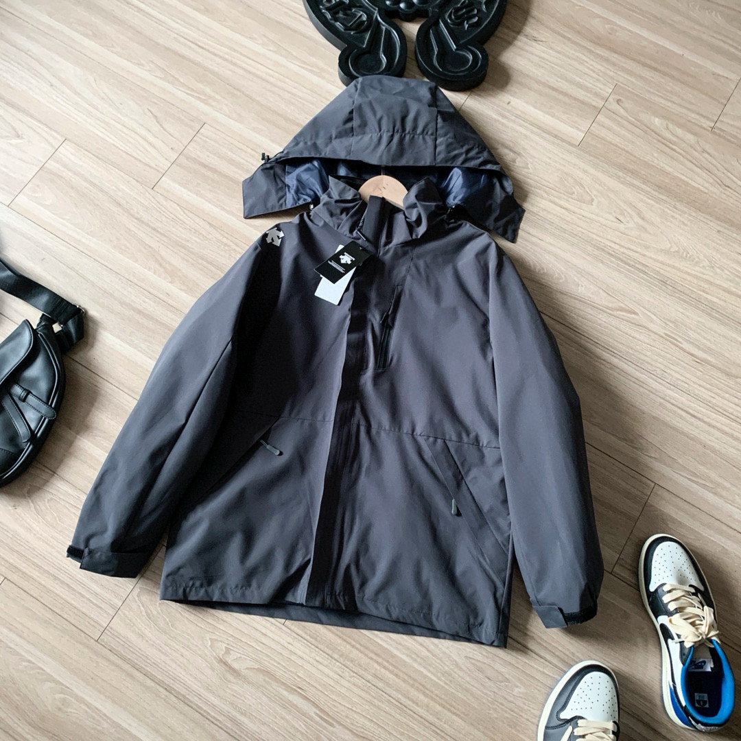 迪桑特25ss秋冬新款户外系列连帽户外运动软壳防风三合一冲锋衣外套 户外运动系列经典款 帽子 拆卸 内里搭配可拆卸内胆 一衣两穿 风格百搭 秋冬出行穿搭必备百搭单品