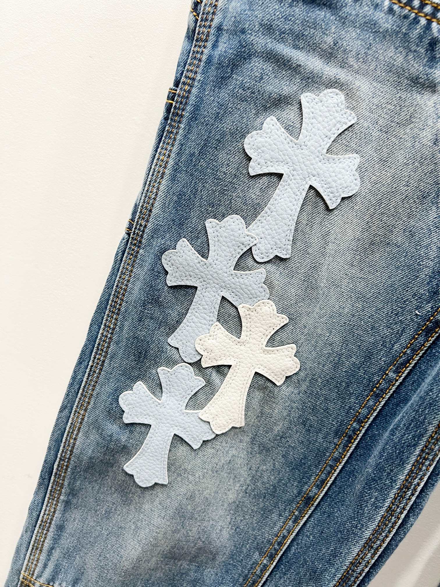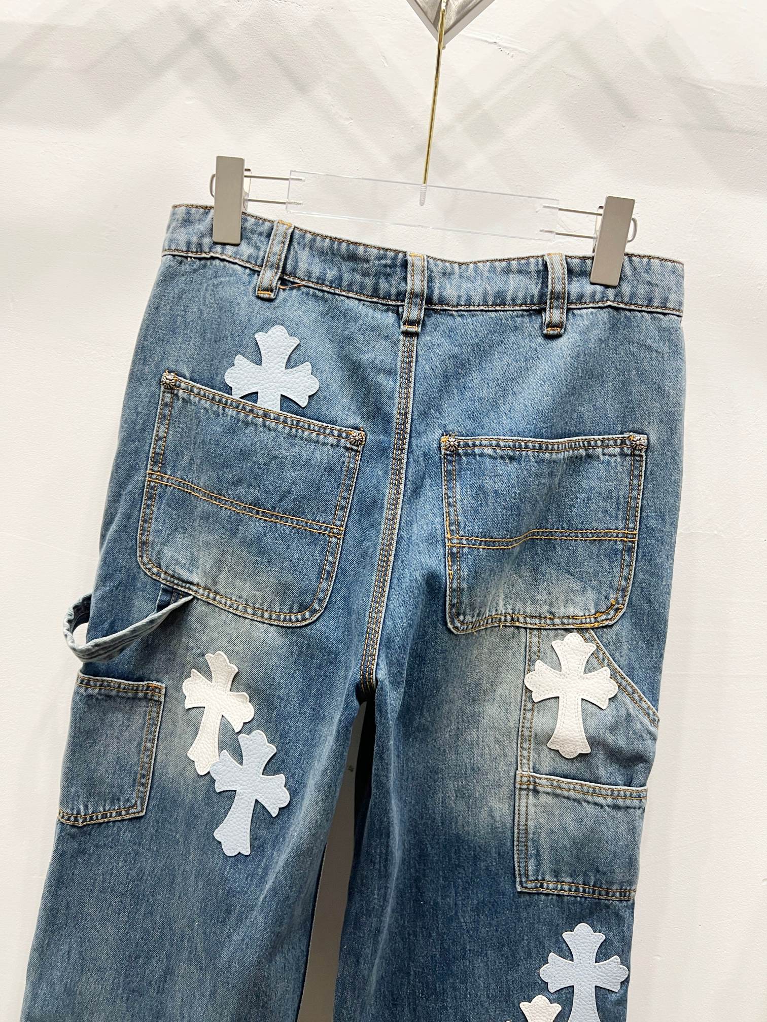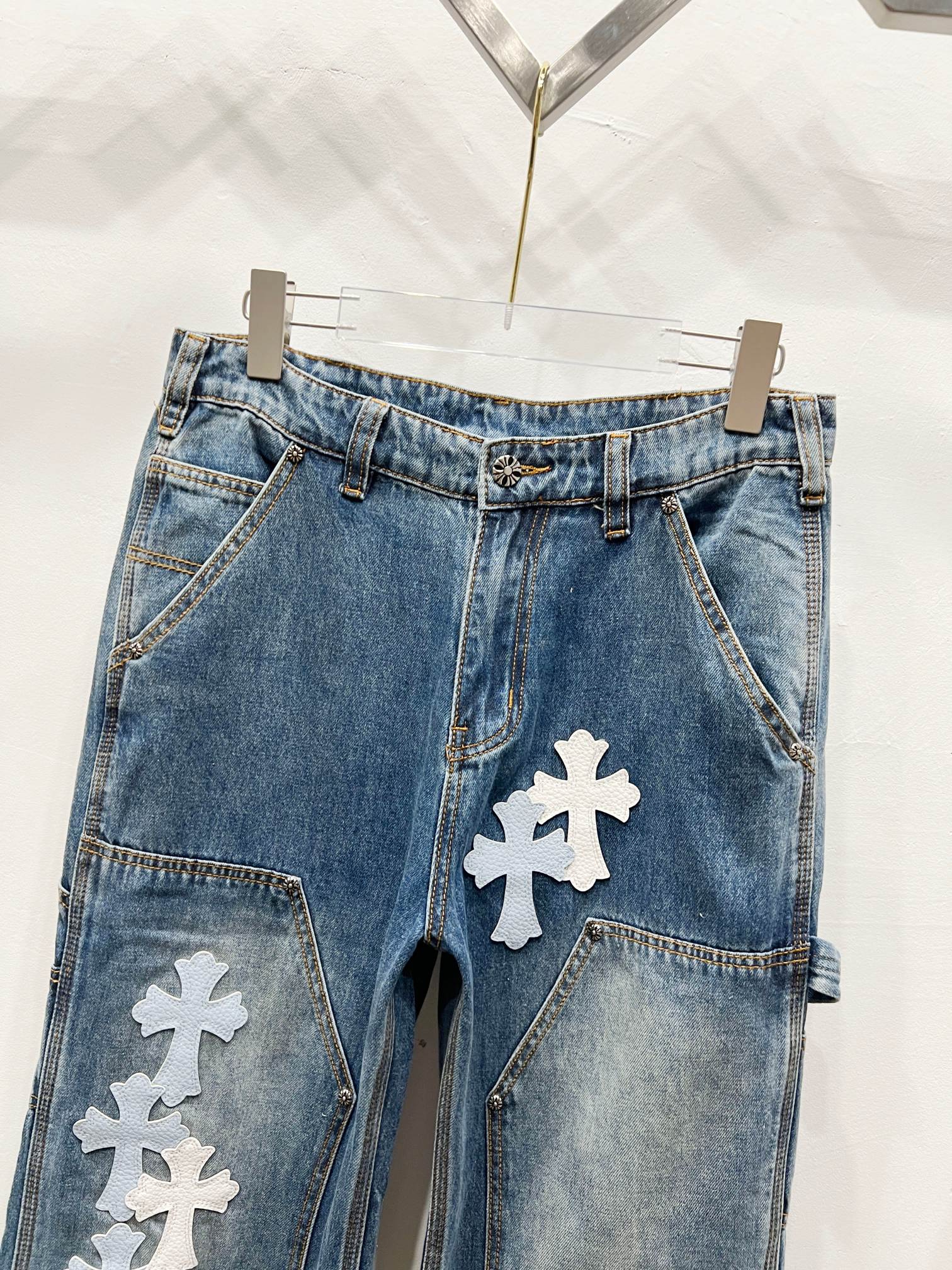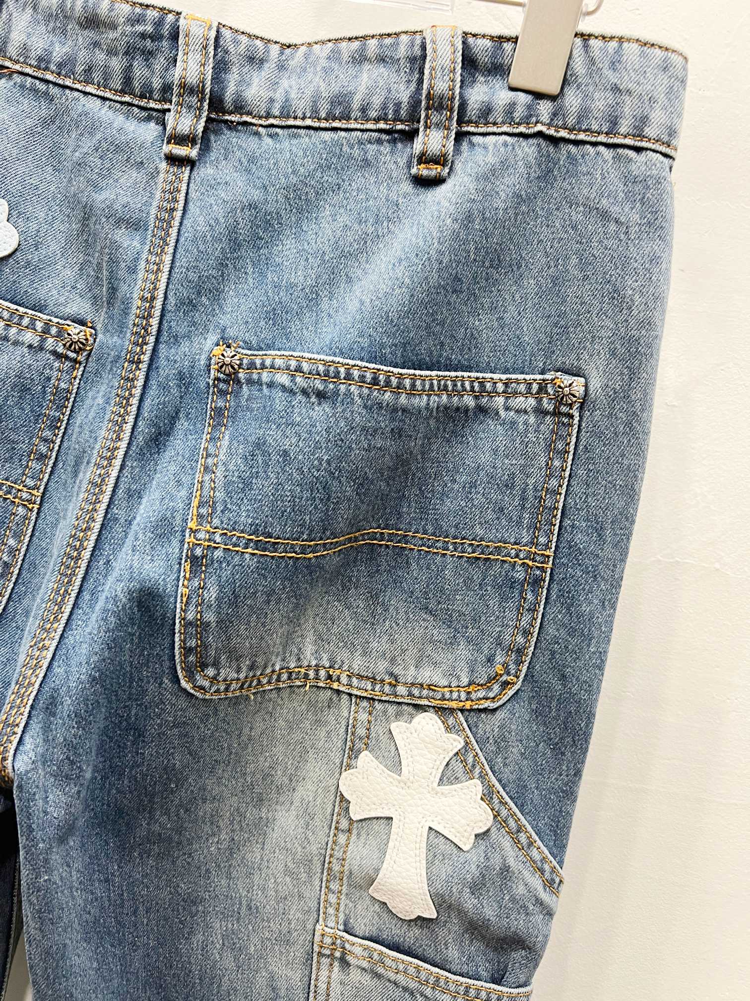 Chrome Hearts 克罗心 25FW CH工装伐木白蓝拼皮限量牛王牛仔裤