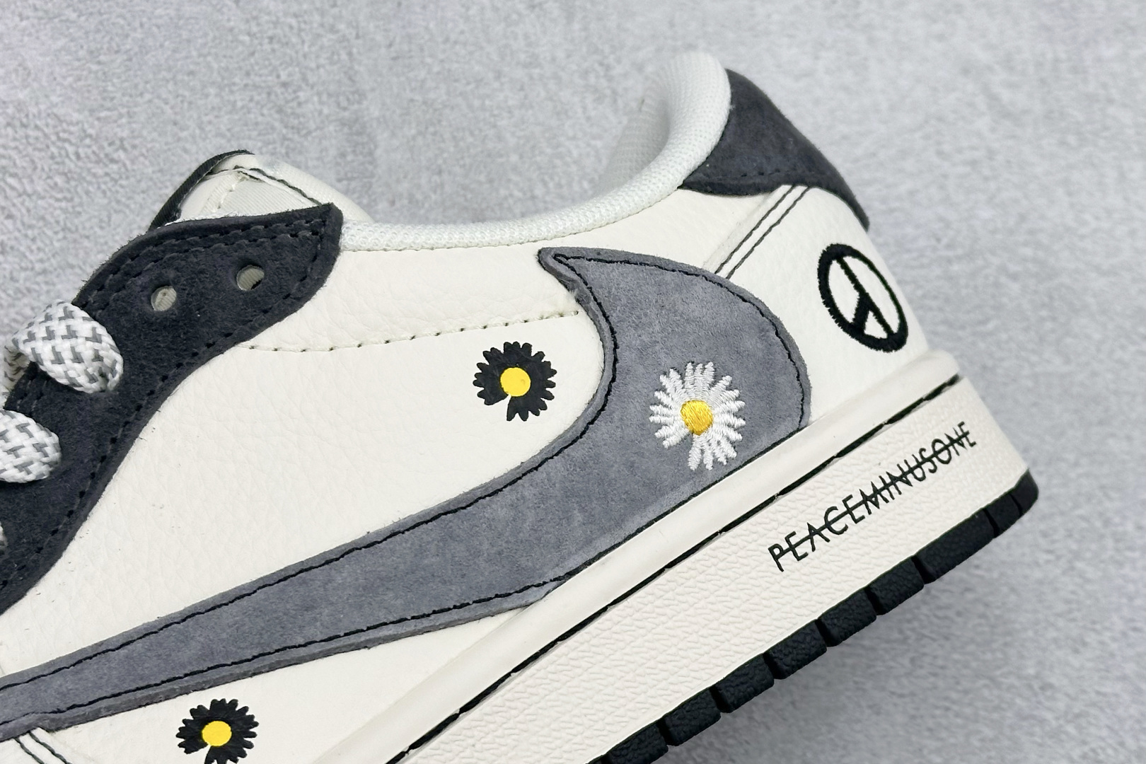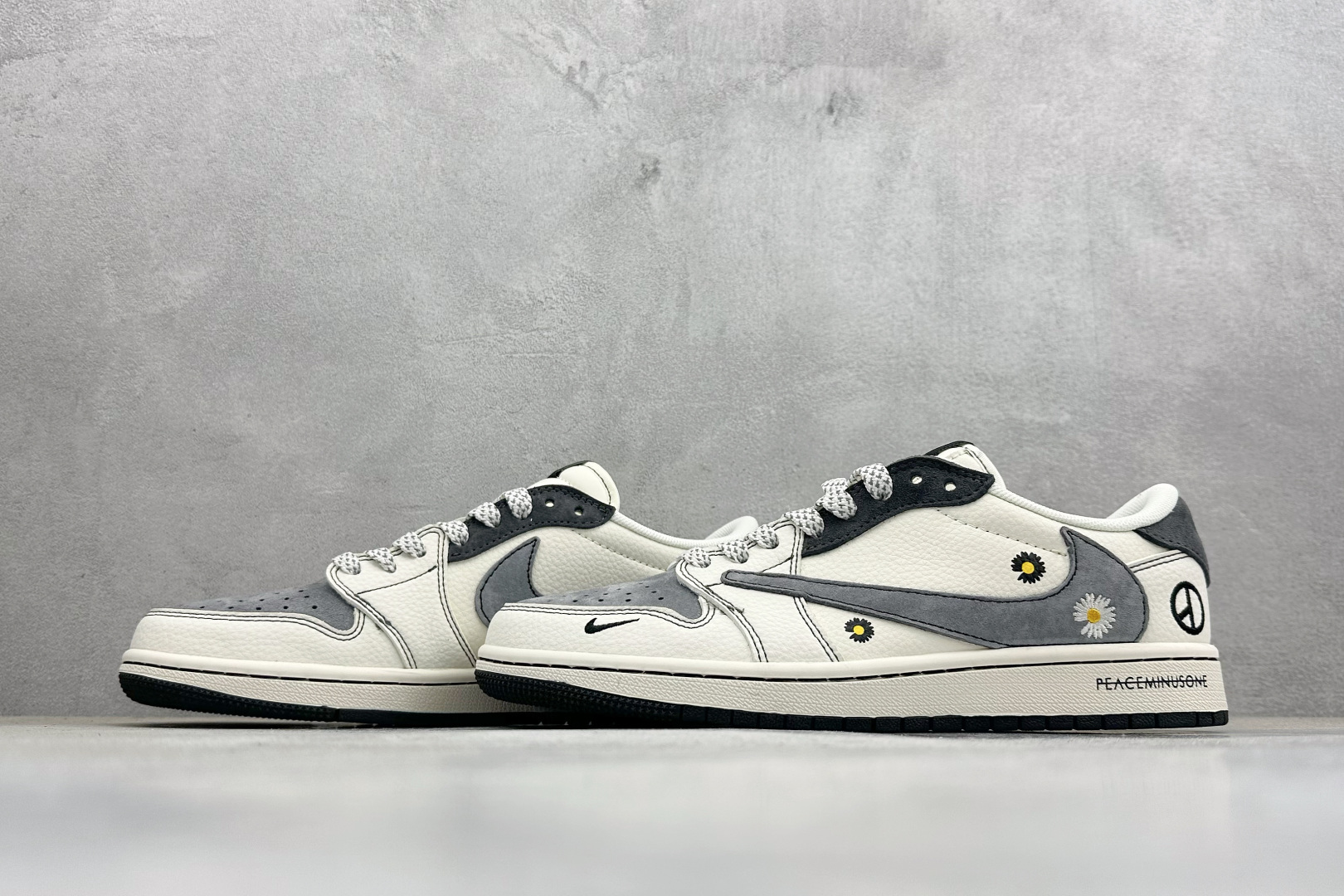 Travis Scott x Jordan 1 Low 权志龙联名 雏菊米灰黑 高端定制 乔丹倒勾低帮休闲板鞋 大厂纯原品质出货 纯正版型 定制鞋盒 皮料切割干净无任何毛边 细节完美 超高清洁度