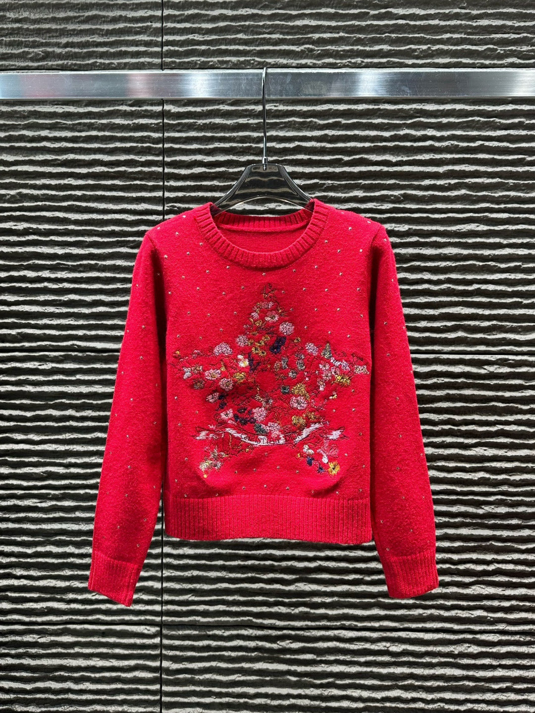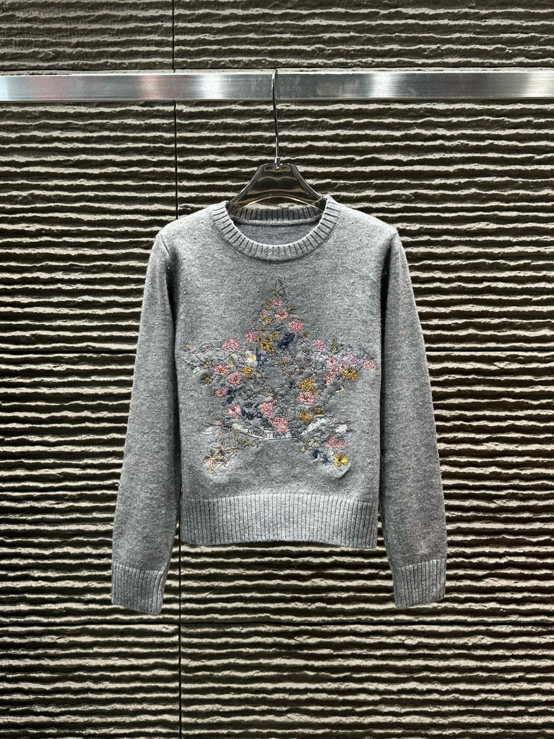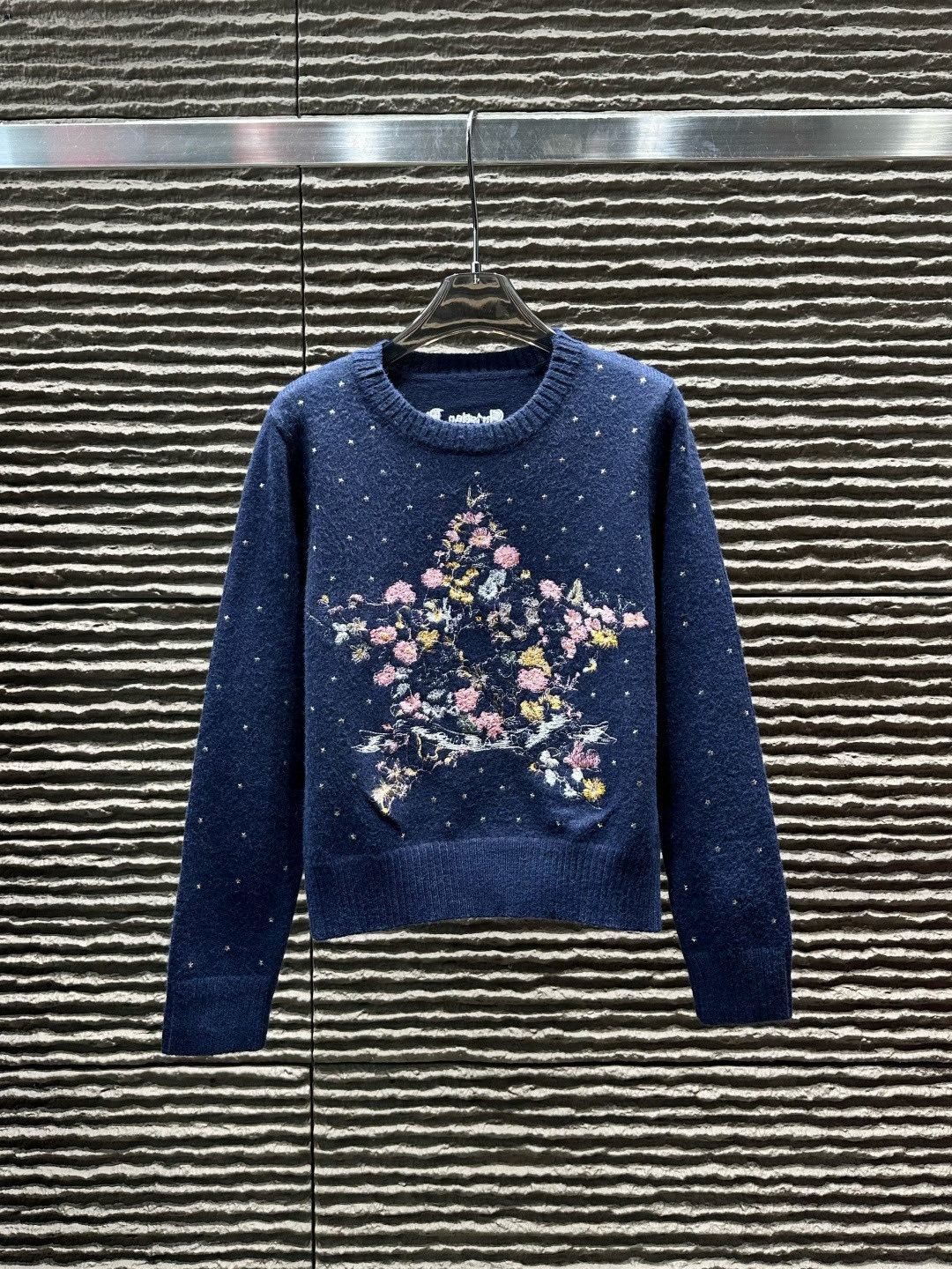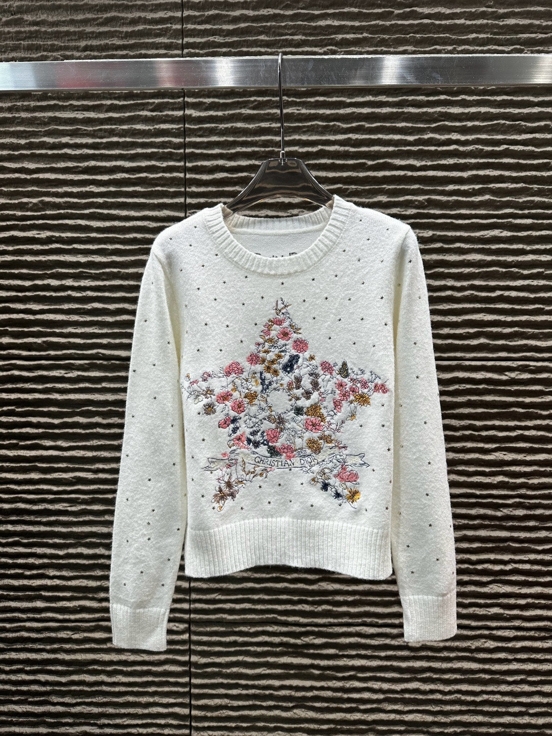 115135948 - Dior迪奥花卉五角星重工刺绣烫钻圆领长袖针织毛衣 款号 2 383707