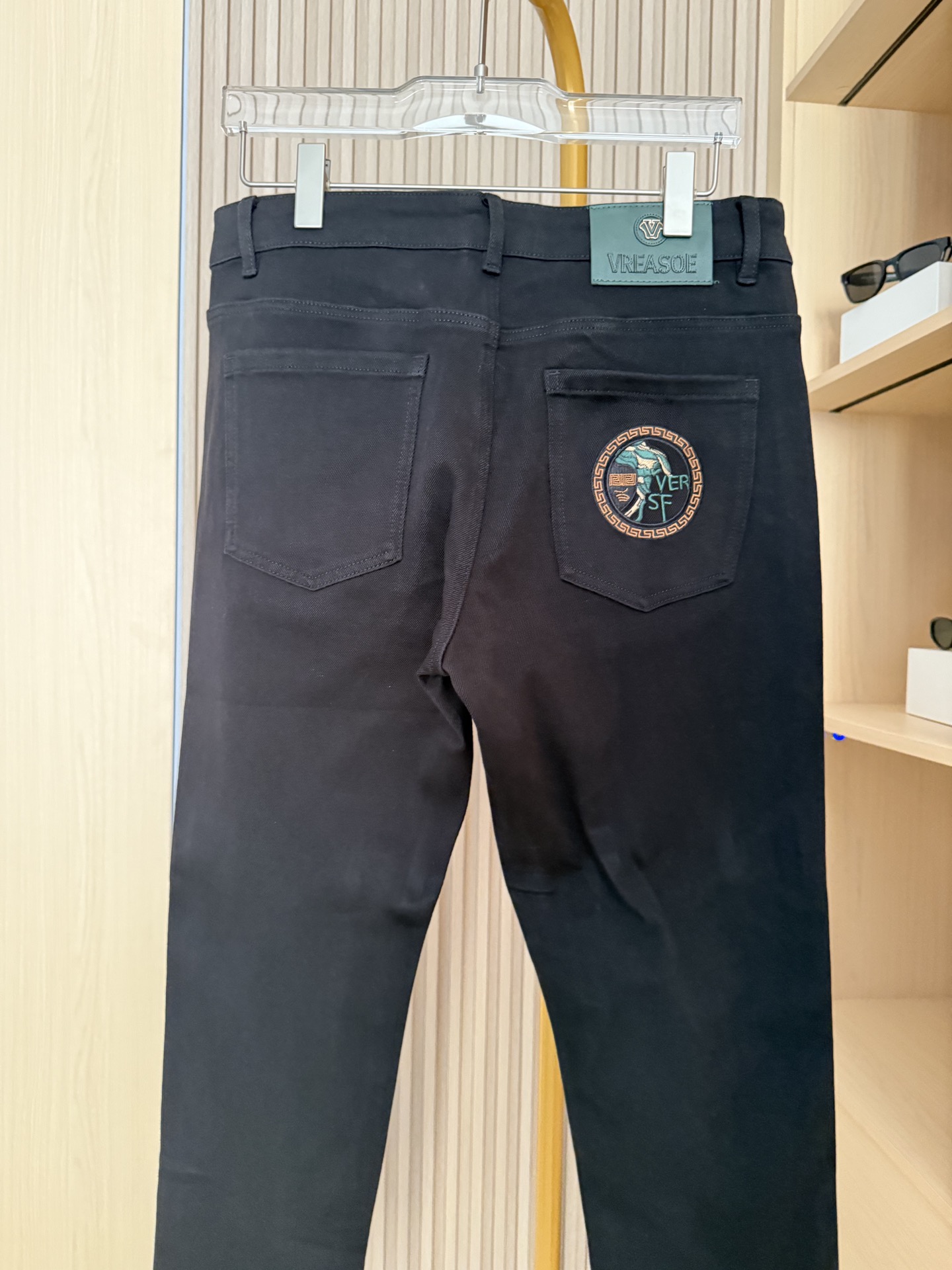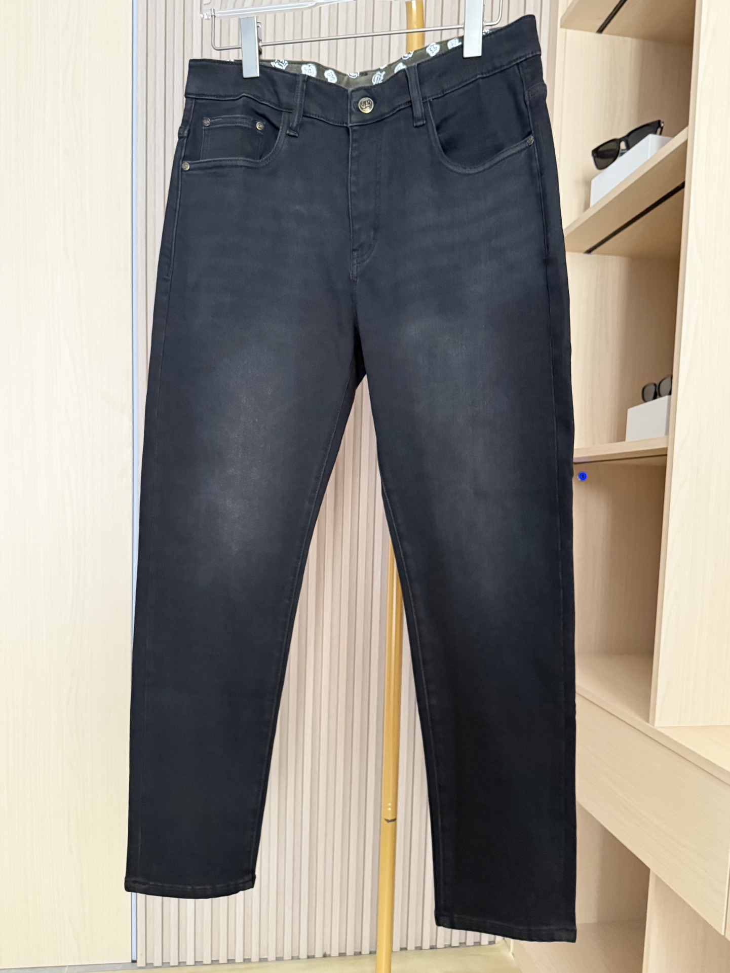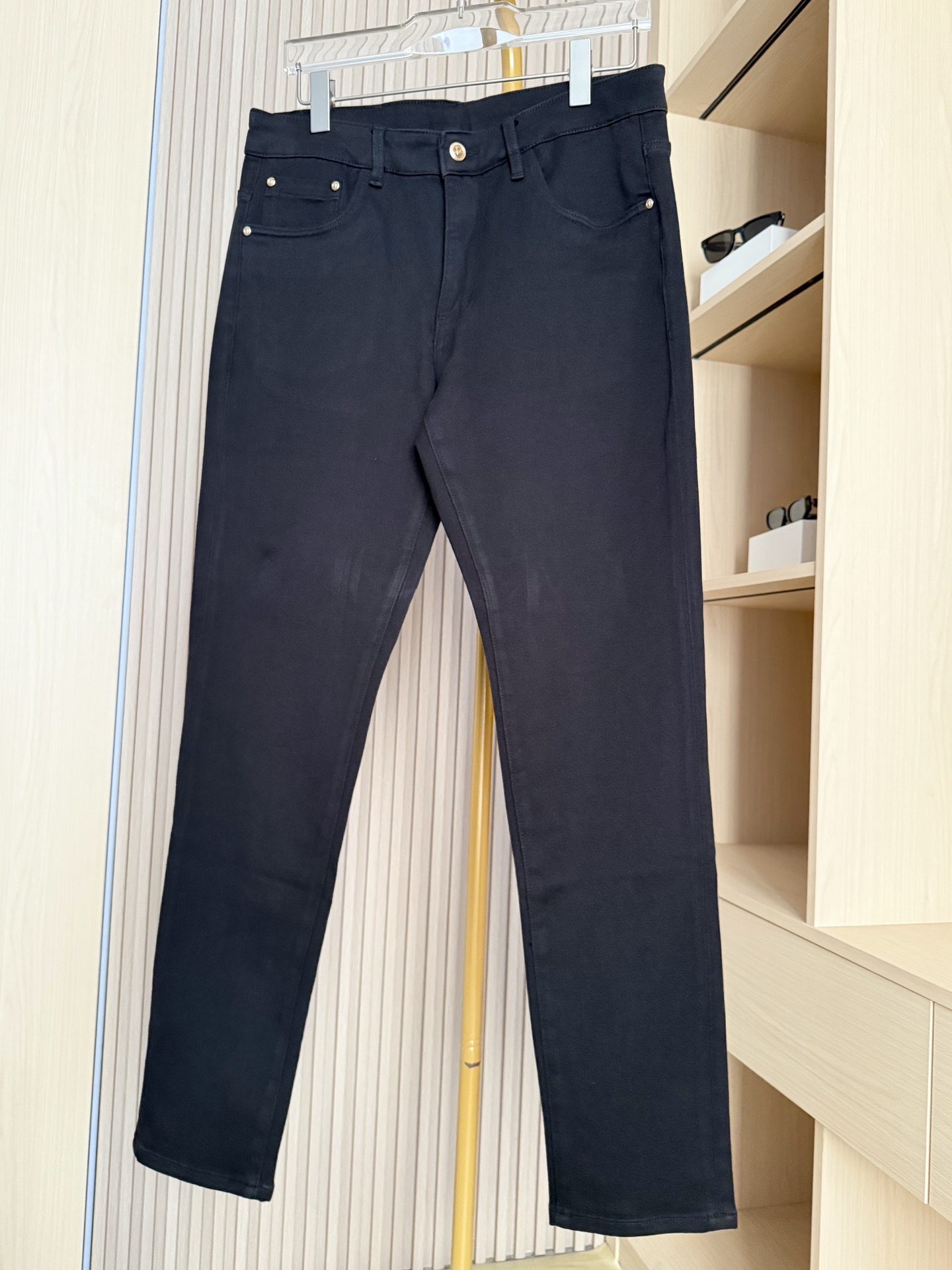 新款牛仔裤 哑光黑的细腻面料垂坠感强还自带高级 低调光泽 贴肤不紧绷 后腰口袋的复古徽章刺绣 经典回纹边框 低调中带点轻奢设计感 不撞款还显品味 修身直筒 微锥形剪裁 既能修饰腿型 藏肉 显利落 日常活动也不会有束缚感 码数 29 38 配香港连卡佛礼盒包装 P