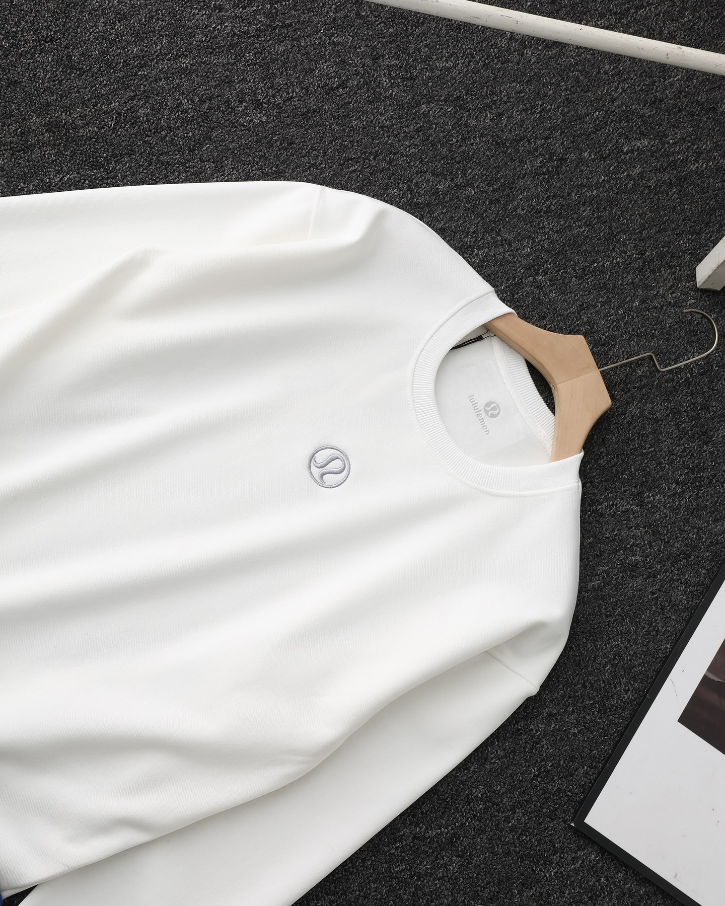 重点是胸前这枚精致的 lulu 刺绣 logo 针脚细密不扎肤 低调中带着点小精致 抬手低头间都能透出质感 日常穿不浮夸 出街又自带辨识度