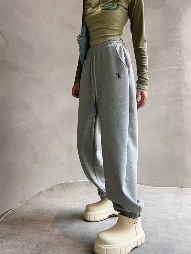 Calvin Klein CK ss25新款休闲高街徽标束脚卫裤长裤子 网红穿搭博主力荐长裤 男女同款