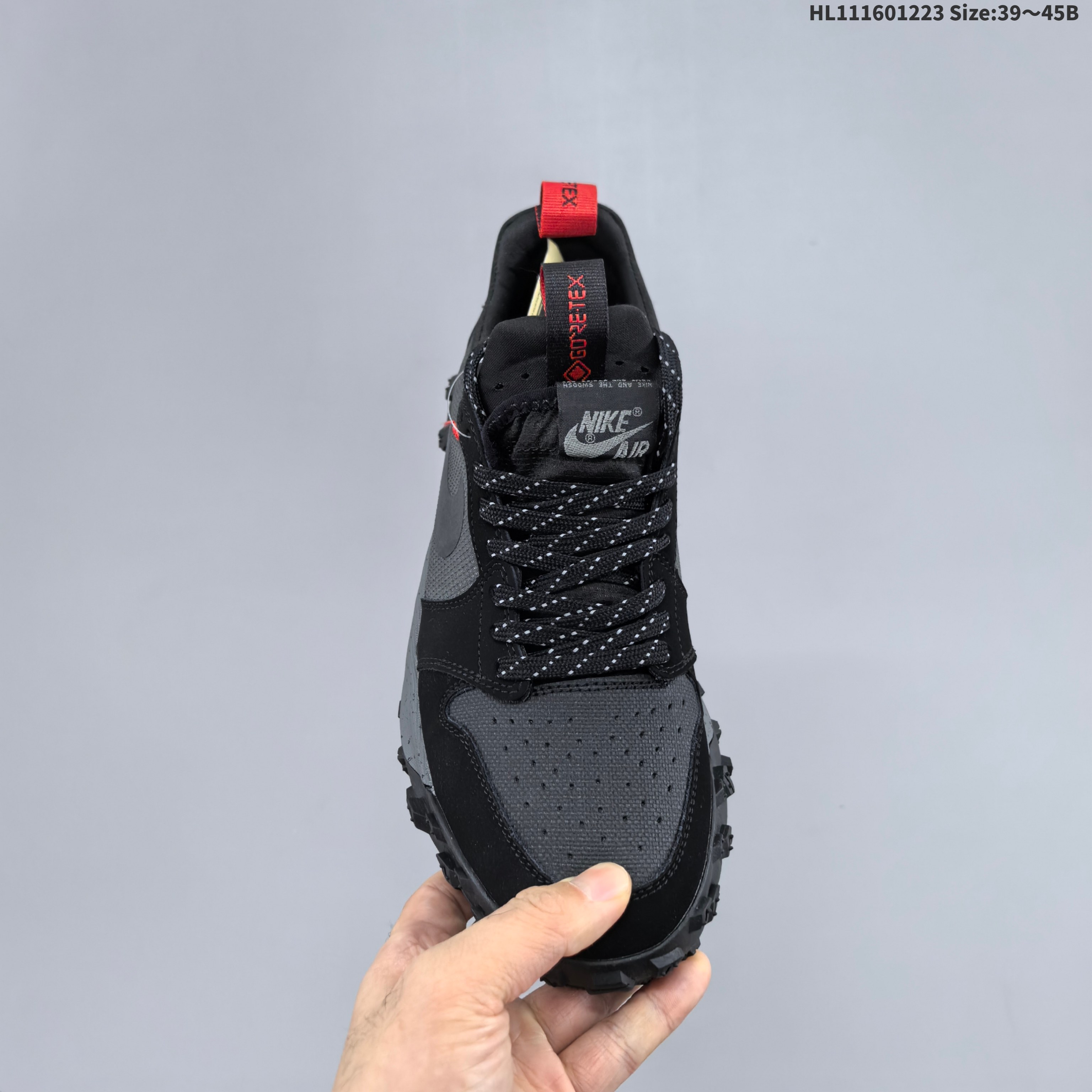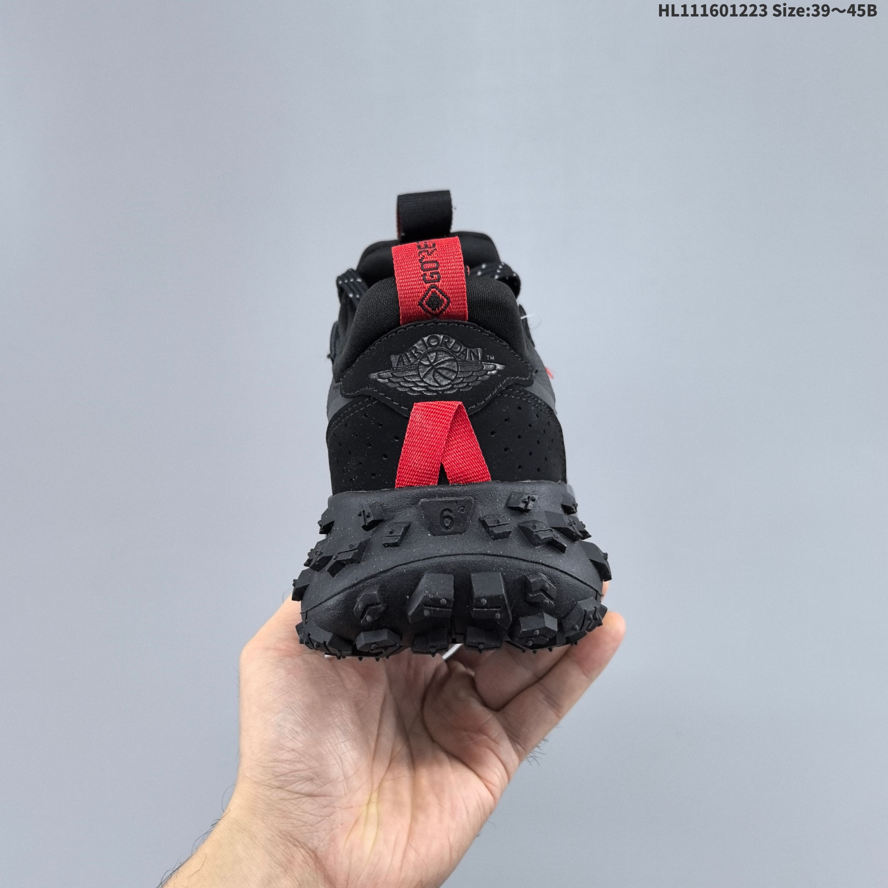 以 AJ1 Low 为蓝本 但是几乎彻底改造为专为户外设计的战靴 后跟拥有 GORE TEX 标签加持 确保户外性能