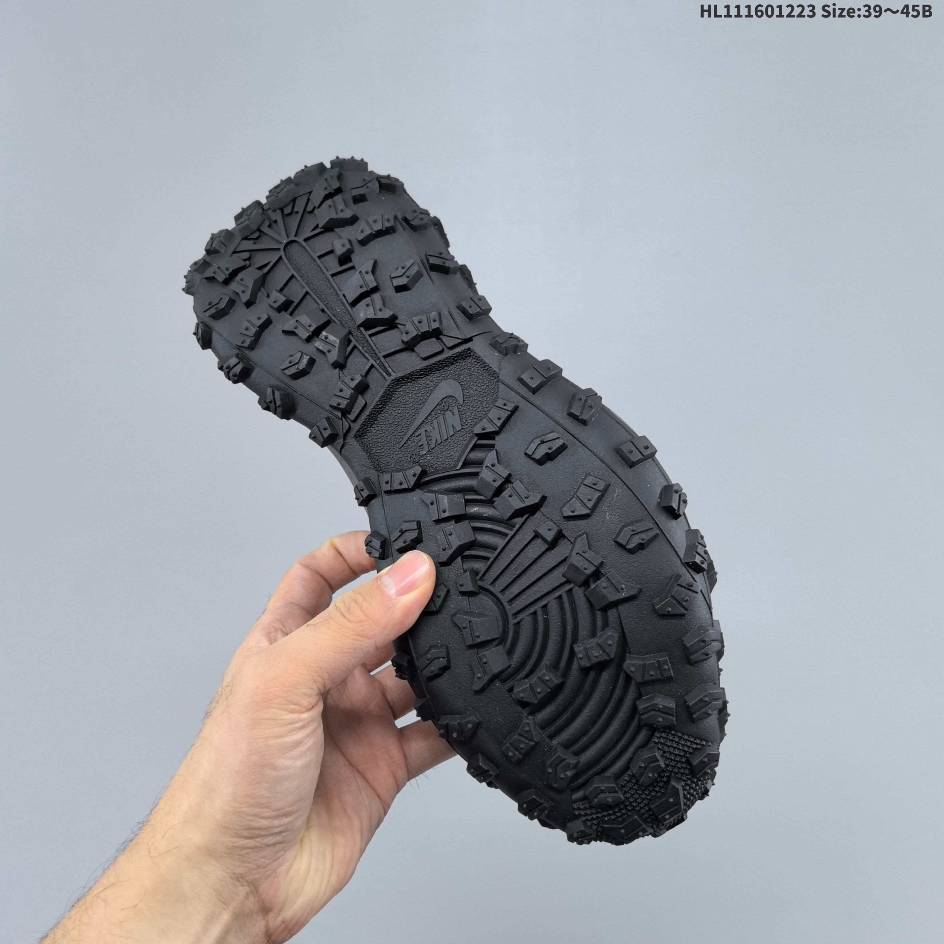 鞋面追加更多橡胶保护 同时防水防尘 外底全部覆盖大橡胶鞋钉 带来更强的野外抓地力