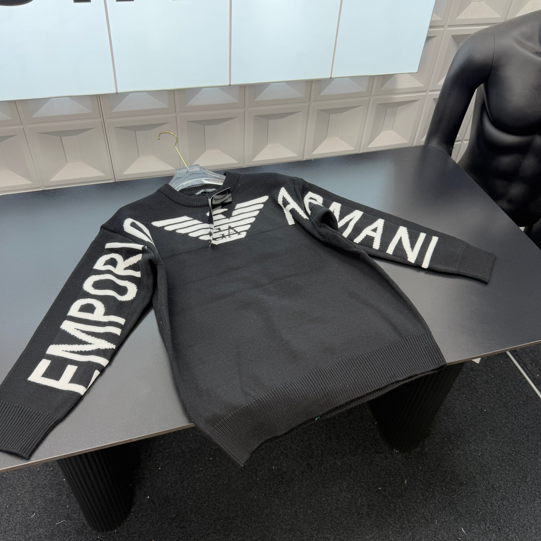 冬季热销爆款网红博主推荐款Ea7阿玛尼针织毛衣 袖子满印字母图案 三标齐全官网一致 放大看细节原相机实物拍摄 颜色 黑色 尺码 L 4xl L 80 105斤 XL 105 120斤 2XL 120 140斤 3XL 140 160斤 4XL 160 180斤
