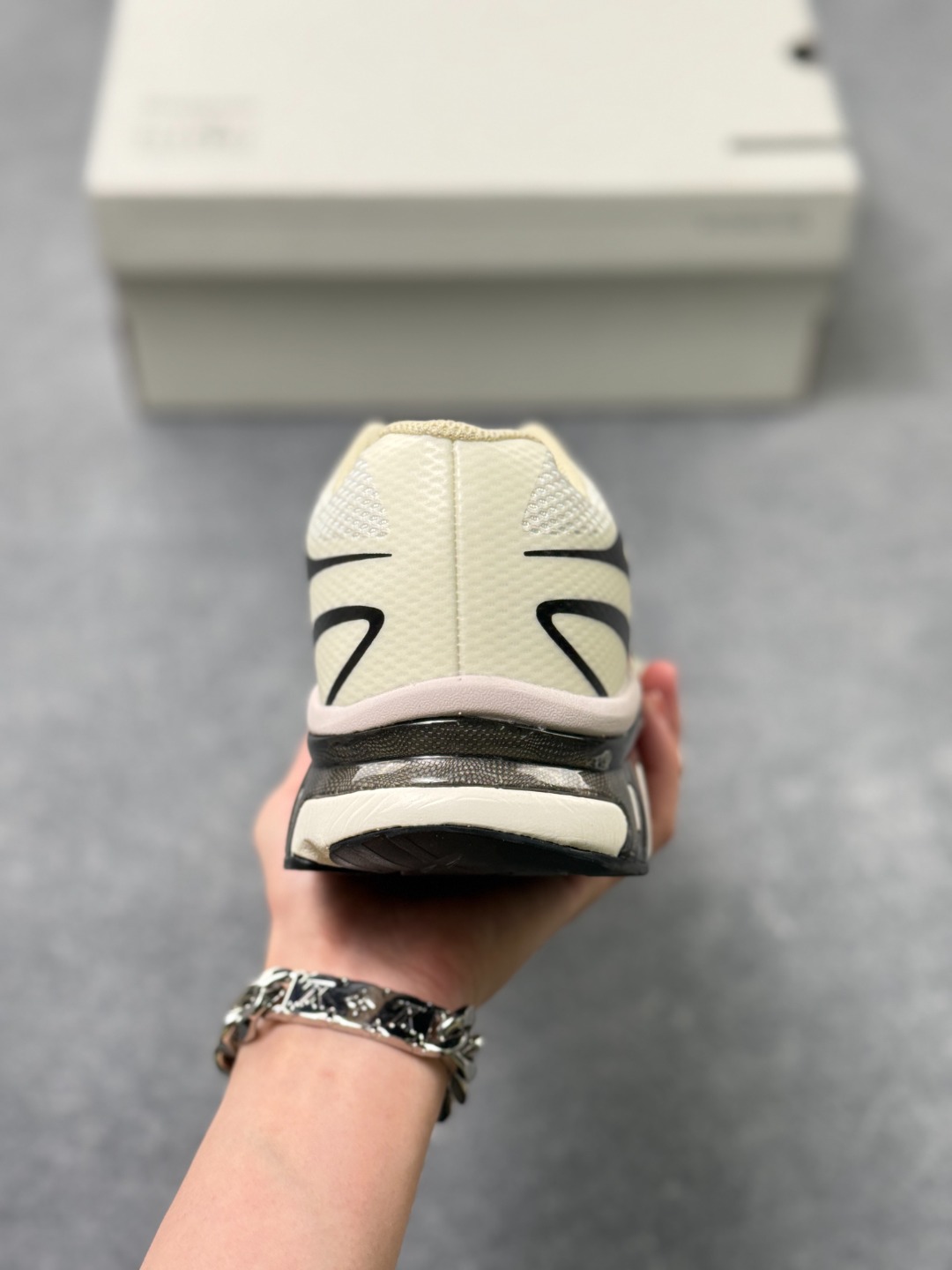 米白基底撞黑灰线条 鞋身数字印花直接踩在潮流审美上