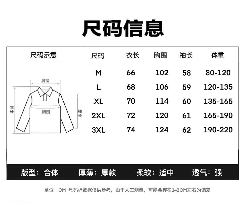 3XL码 衣长74 胸围124 袖长62 建议体重190 220斤