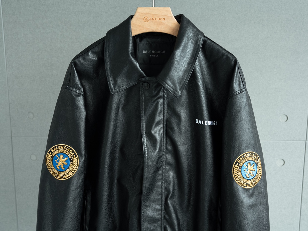 顶级做货版本 Balenciaga巴黎世家 狮子臂章pu皮 皮革夹克外套 男女同款