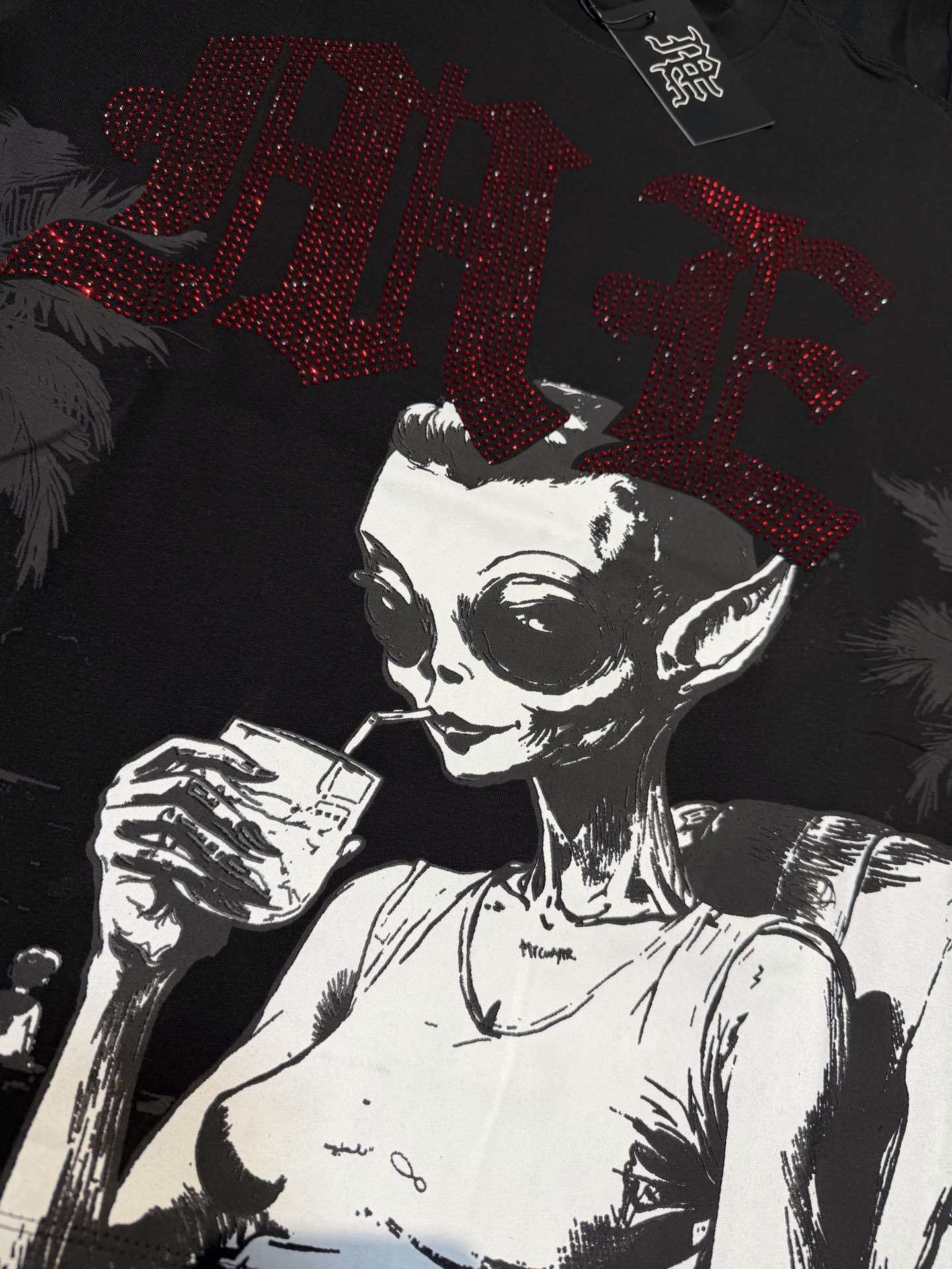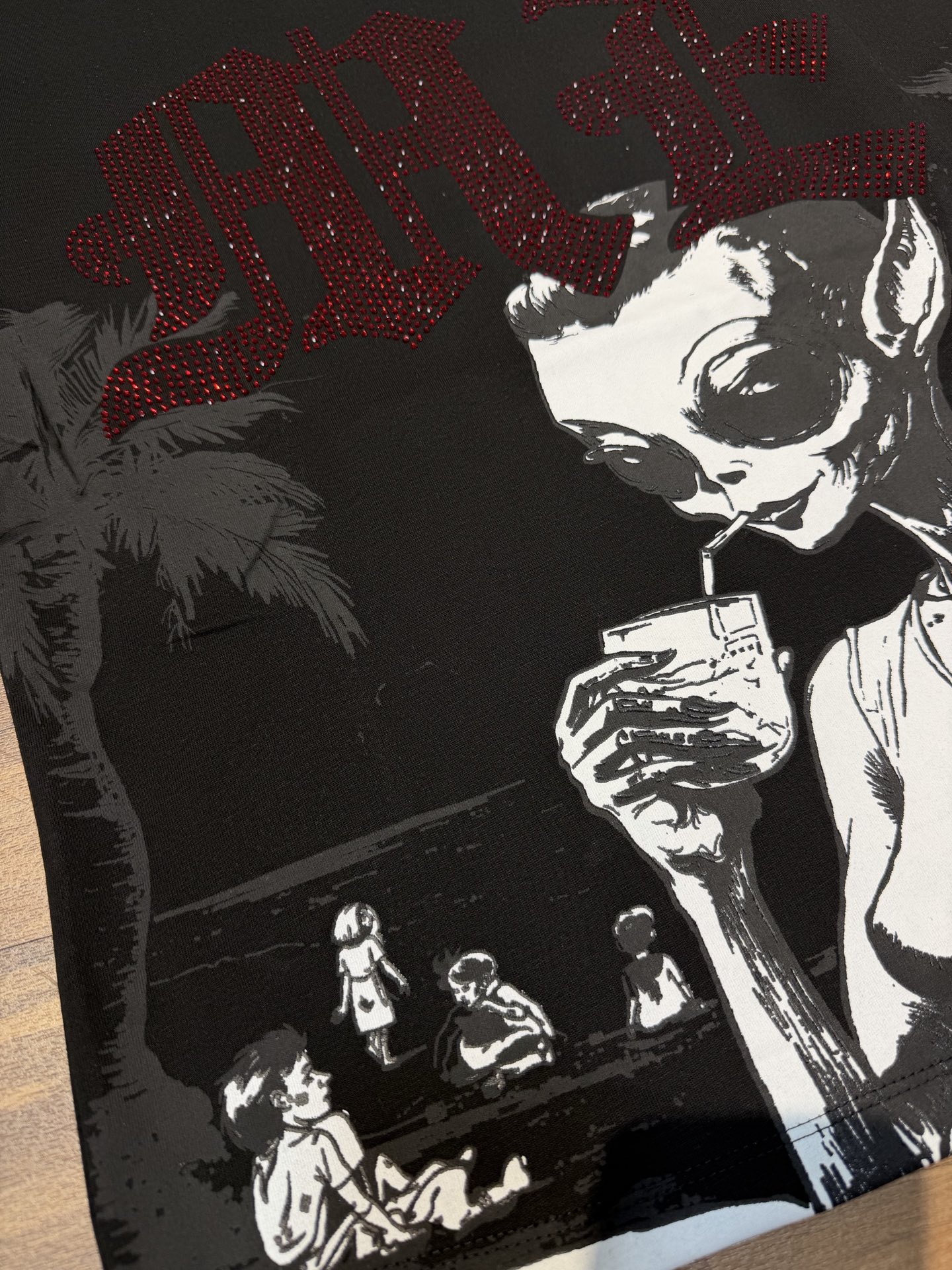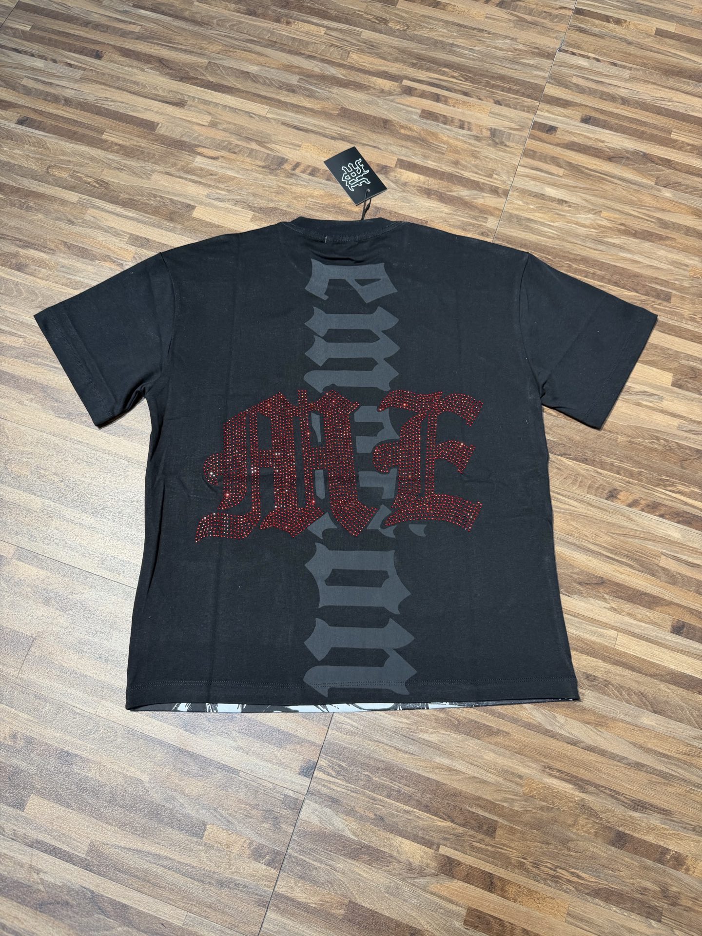 杏色 活性黑 MIXED EMOTION 现货实拍 烫进口澳钻 美式潮牌宽松休闲T恤 面料 fabric 32支270克重精梳双纱纯棉 码数 size S M L X L 工艺 高清印花 颜色 colour 杏色 活性黑