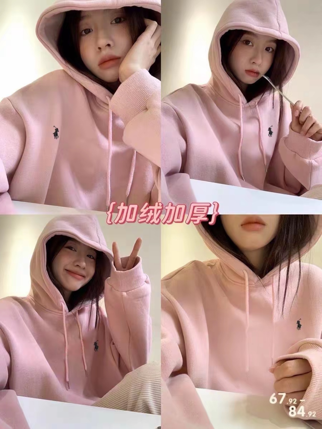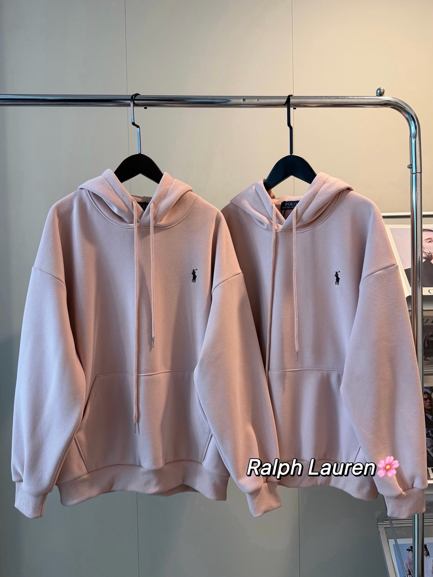 Ralph Lauren拉夫劳伦战马刺绣蜜桃粉加绒连帽卫衣