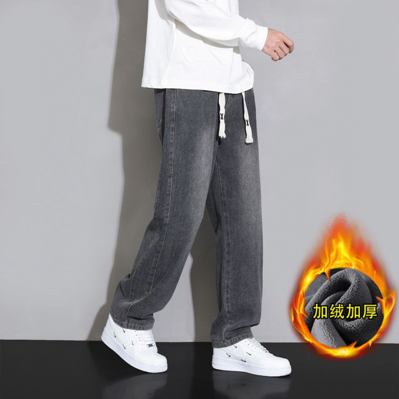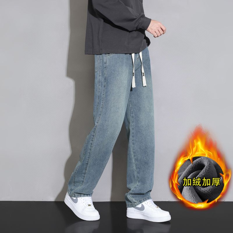NIKE 耐克秋冬弹力加绒加厚直筒男士阔腿牛仔长裤
