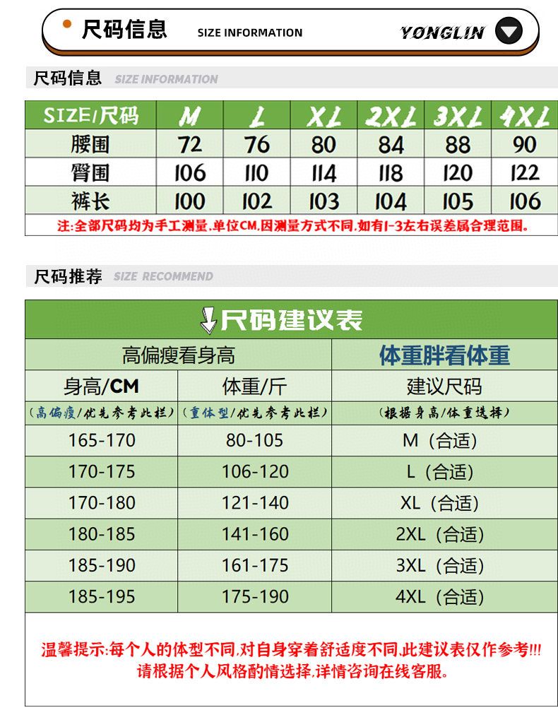 尺码 M 4XL