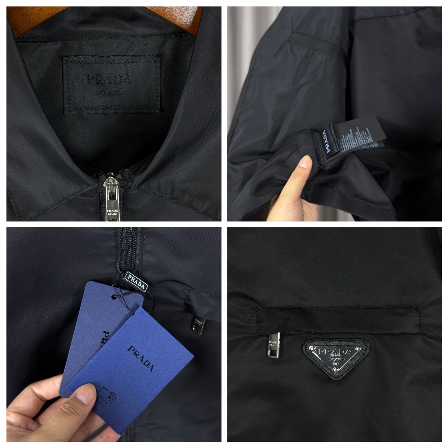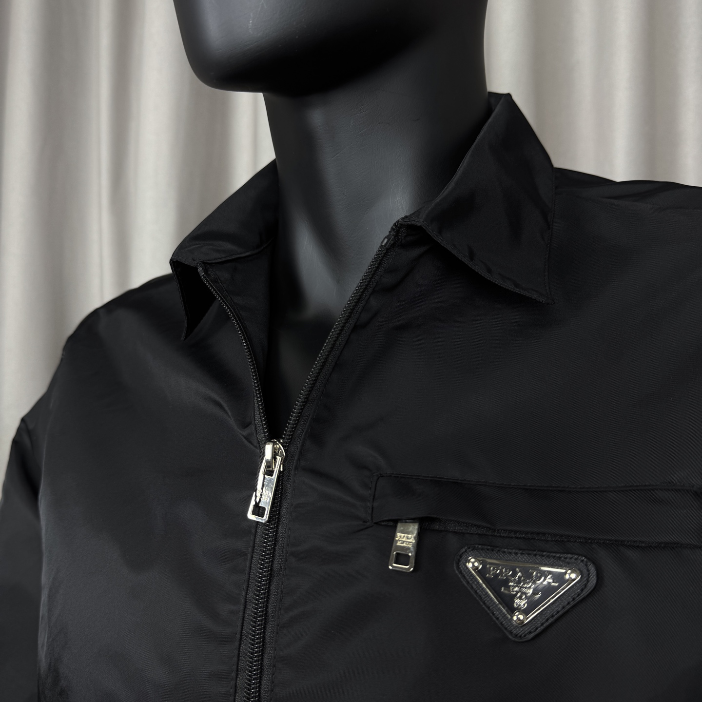 𝑷𝒂𝒓𝒅𝒂 普拉达经典款翻领金属三角标外套春秋款尼龙立领徽章拉链夹克男女同款