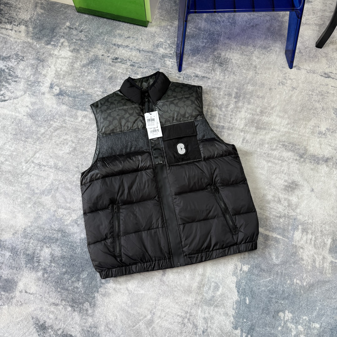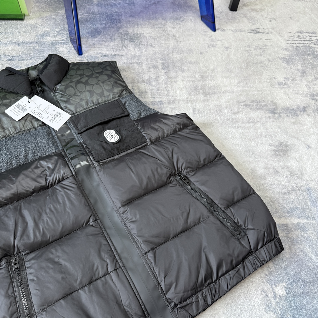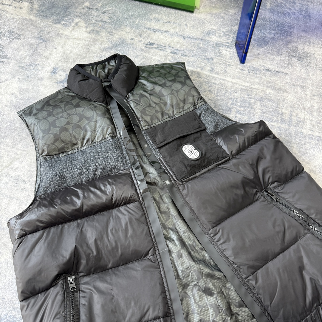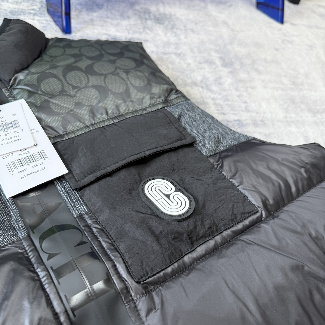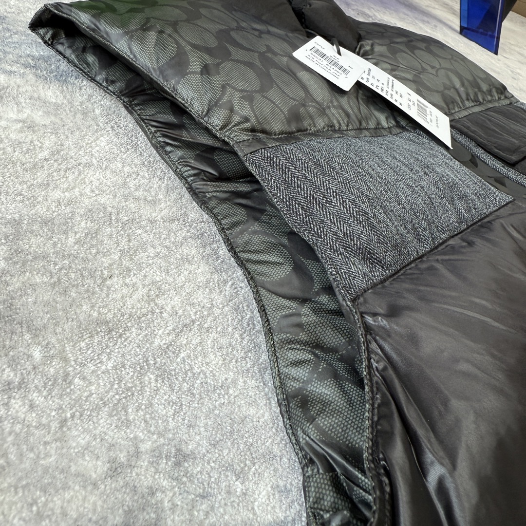 COACH蔻家男士经典黑色拼接老花C字拼接白鸭绒羽绒服马甲 性价比之王 只此一批 错过不再有 兄弟们冲啊