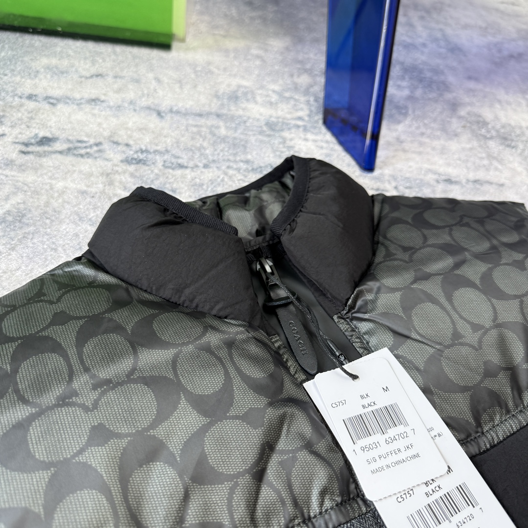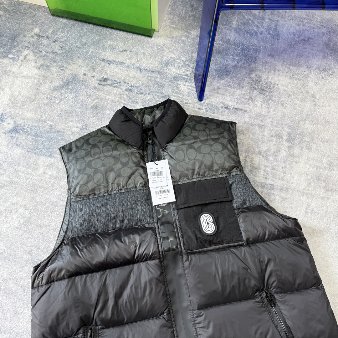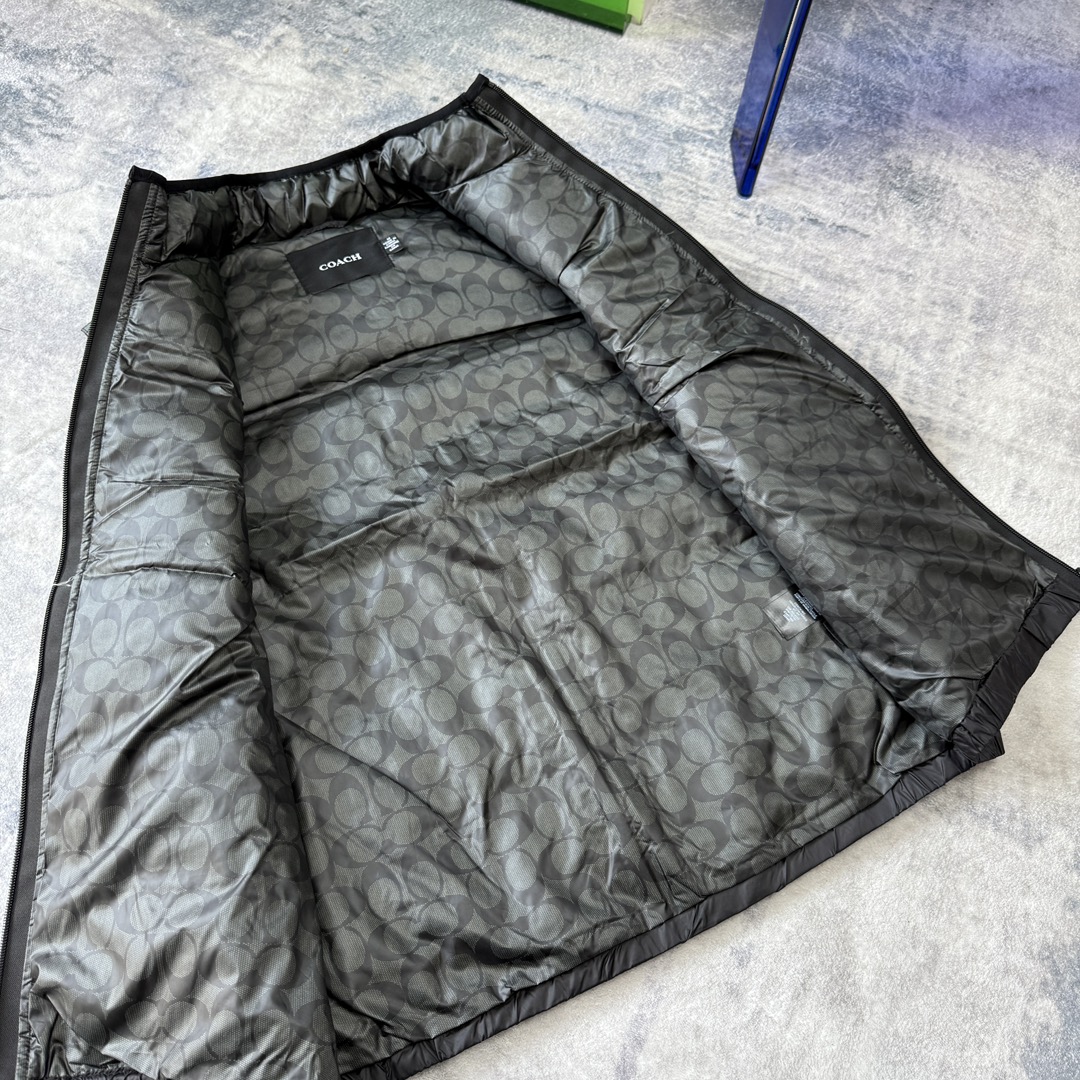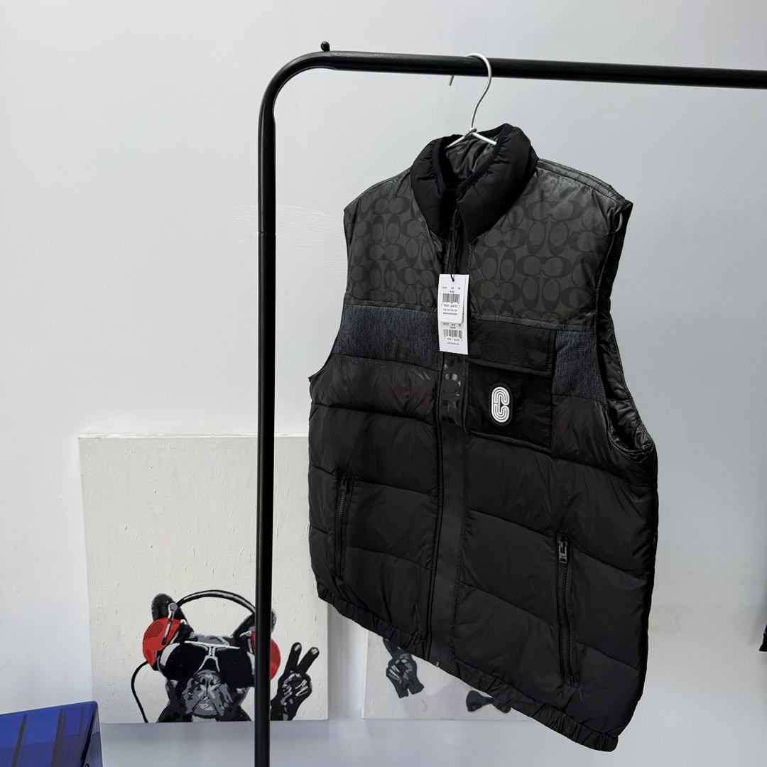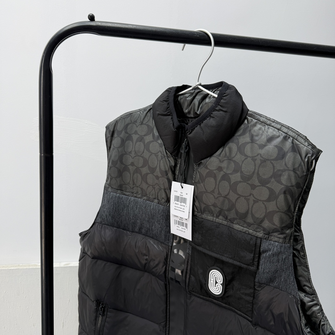 COACH蔻家男士经典黑色拼接老花C字拼接白鸭绒羽绒服马甲 性价比之王 只此一批 错过不再有 兄弟们冲啊