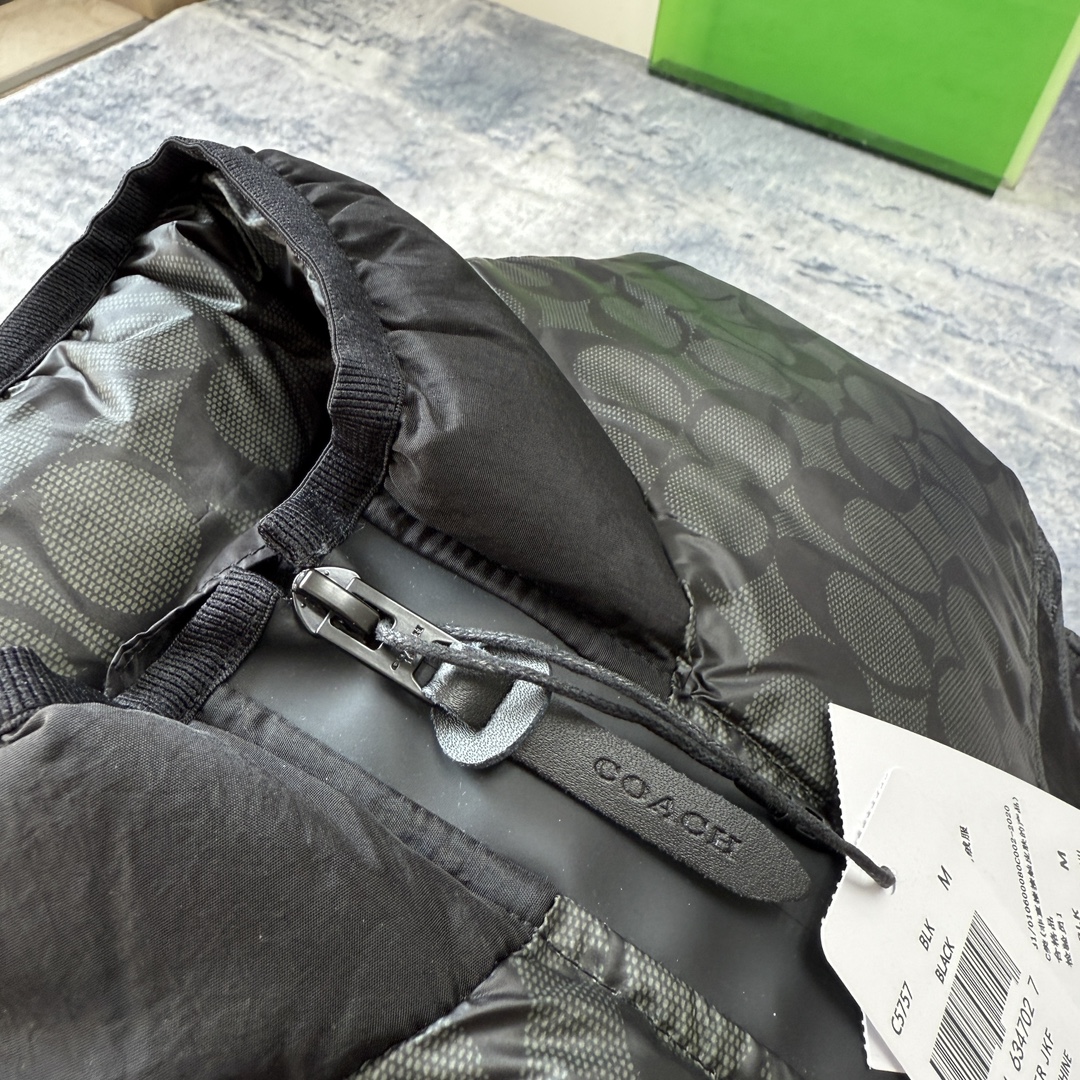 235128826 - COACH蔻家男士经典黑色拼接老花C字拼接白鸭绒羽绒服马甲 361439