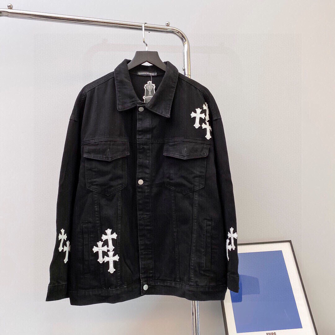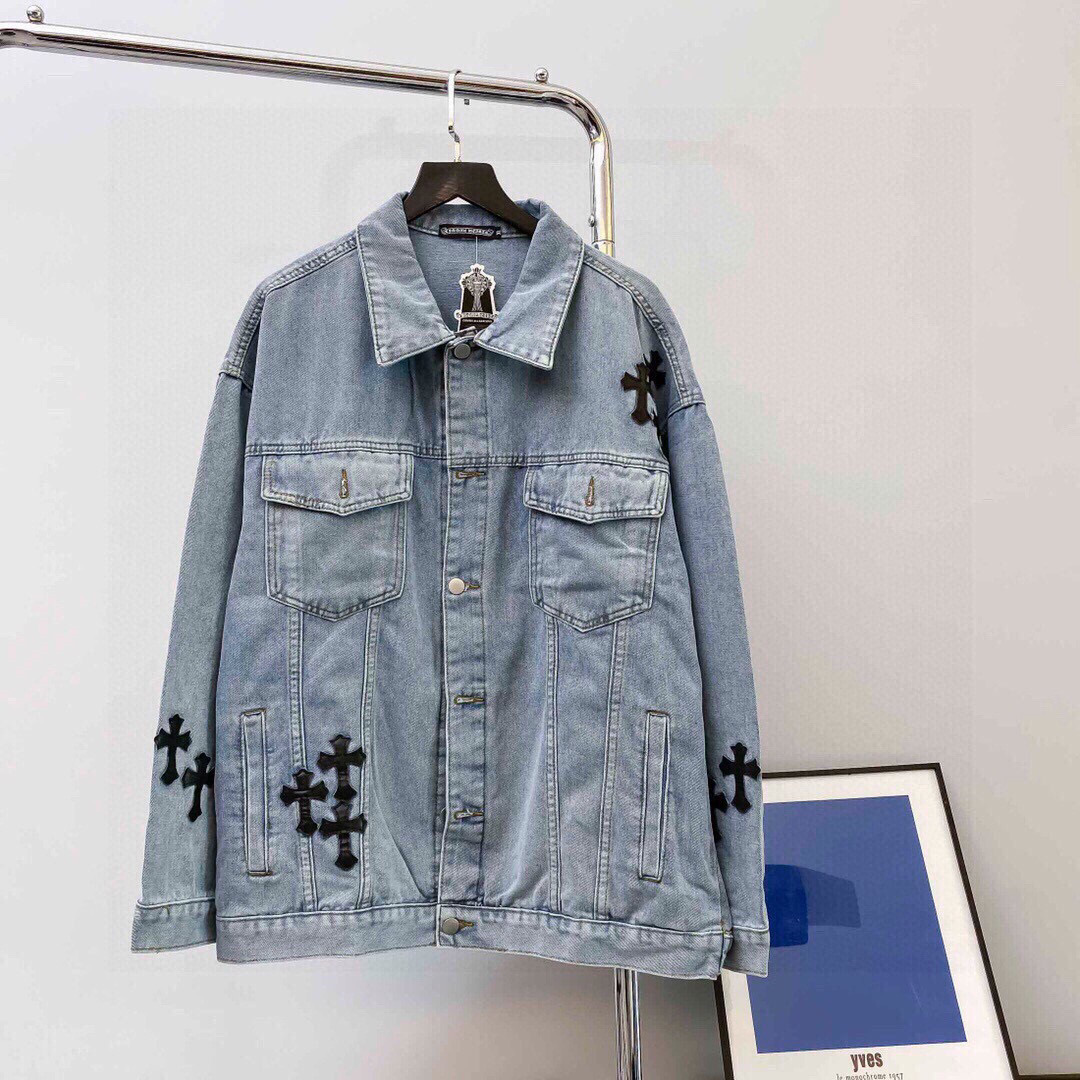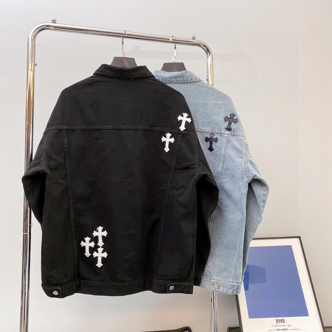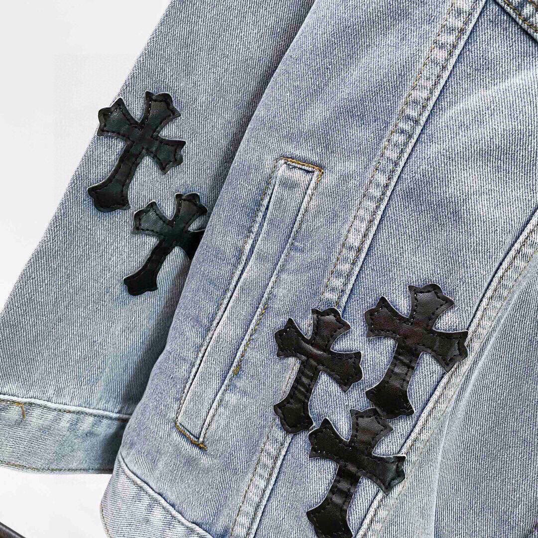 ChromeHearts克罗心经典刺绣皮标做旧水洗双色牛仔外套火热上新