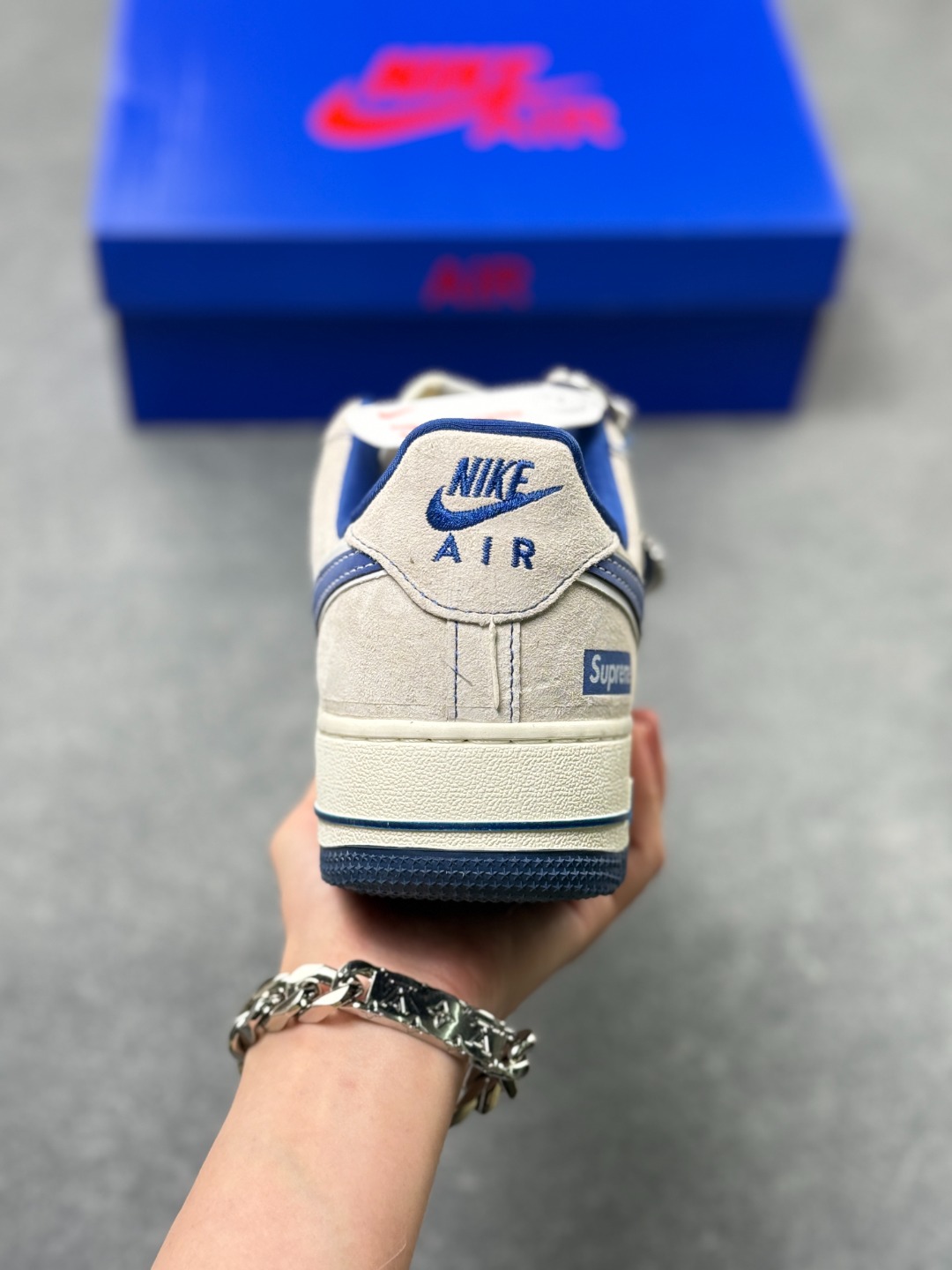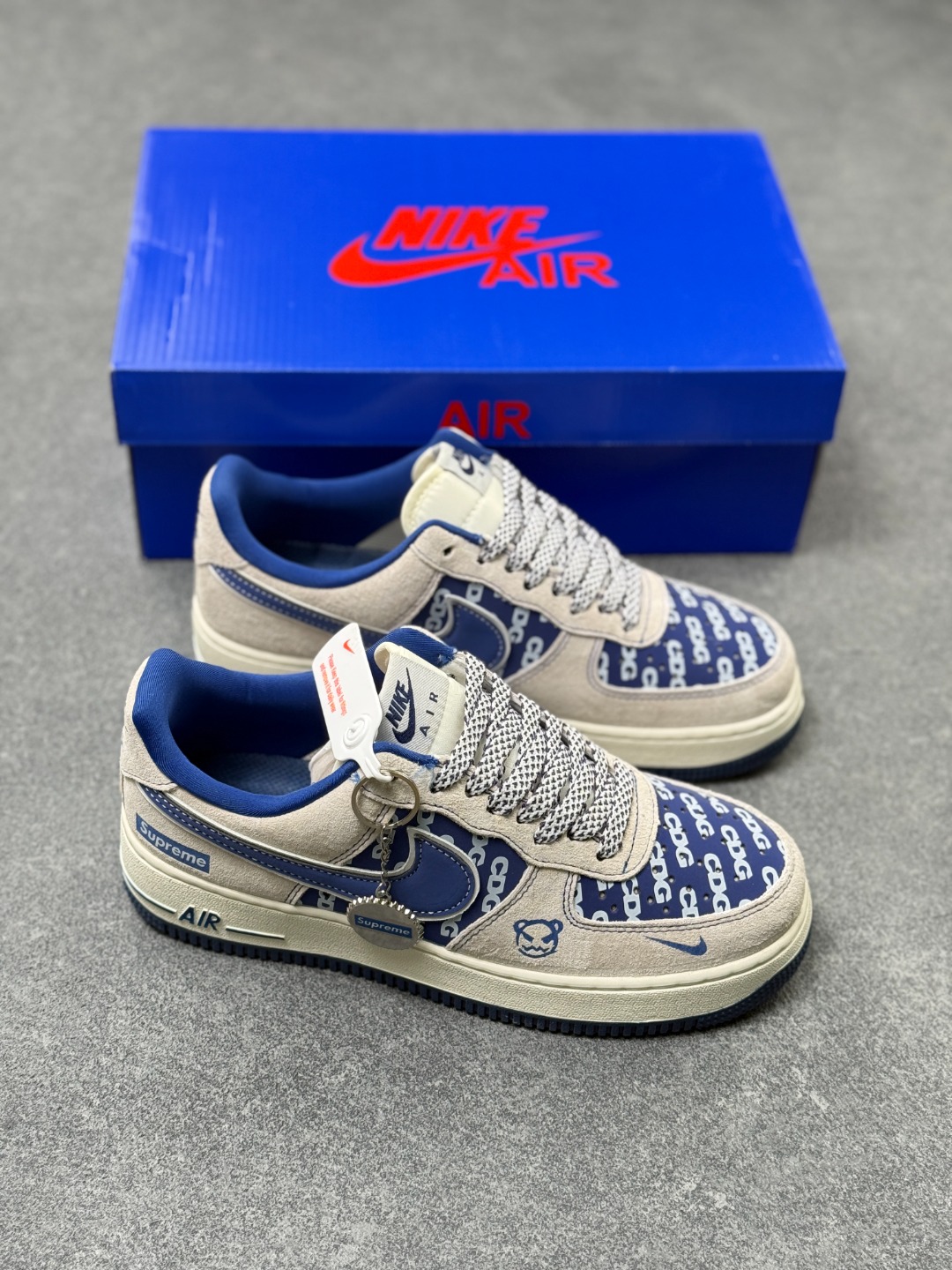 海外限量发售 公司级NIke Air Force 1 07 Low Supreme联名 灰蓝暴力熊 空军一号 低帮 运动鞋 休闲鞋 折边针车 工艺难度大 原楦头原纸板 原装鞋盒 定制五金配件 内置全掌气垫 原厂鞋底