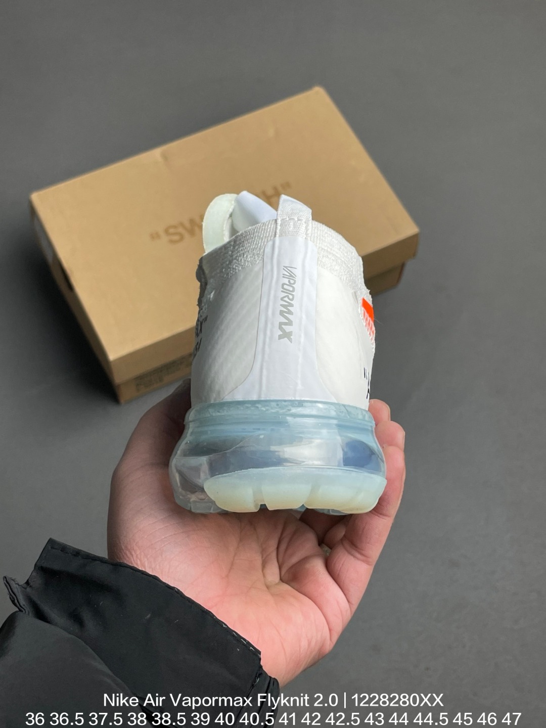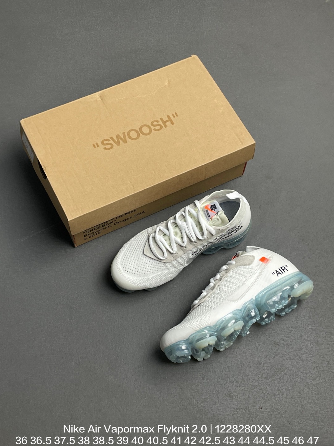 Nike 耐克 采用德产斯托尔针织横机生产原档案针织鞋面材质 侧面 鱼骨线 清晰立体 市面最为正确小P氮气全掌气垫高俊熙 周雨彤众明星同款 Virgil Abloh主理设计师品牌Off White x Nike Air Vapormax Flyknit 2 0 White Total Orange 二代全掌大气垫系列飞织低帮百搭休闲运动慢跑鞋