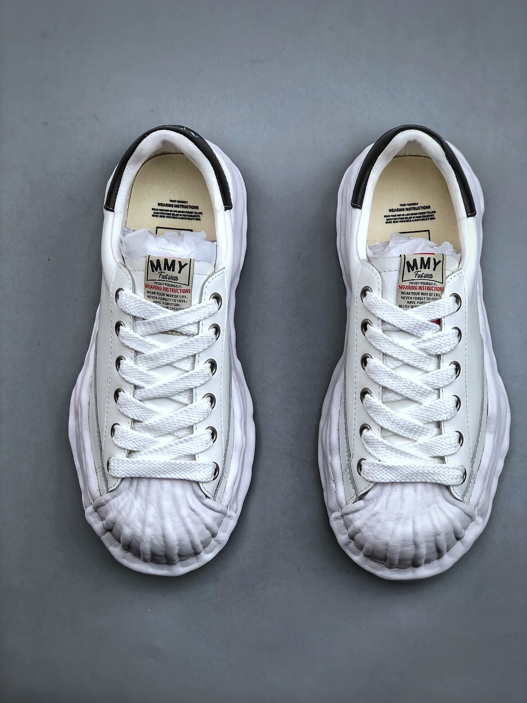 礼盒版本 东莞大厂出品 原楦原纸版开发楦型 全新开发双模一次发泡点位气孔EVA中底 底部嵌入组合RB橡胶耐磨大底 采用软质粒面牛皮革鞋面材质 正确织麦及包装盒 清晰后跟LOGO 挂镀双层眼扣不生锈不掉漆 区别市面普通版本 余文乐挚爱2025ss新品 复古溶解风日本概念时装设计师 三原康裕品牌MMY Maison Mihara Yasuhiro Original STC Sole Leather Low cut sneakers经典贝壳头版变形溶解雪糕底低帮休闲百搭帆布板鞋