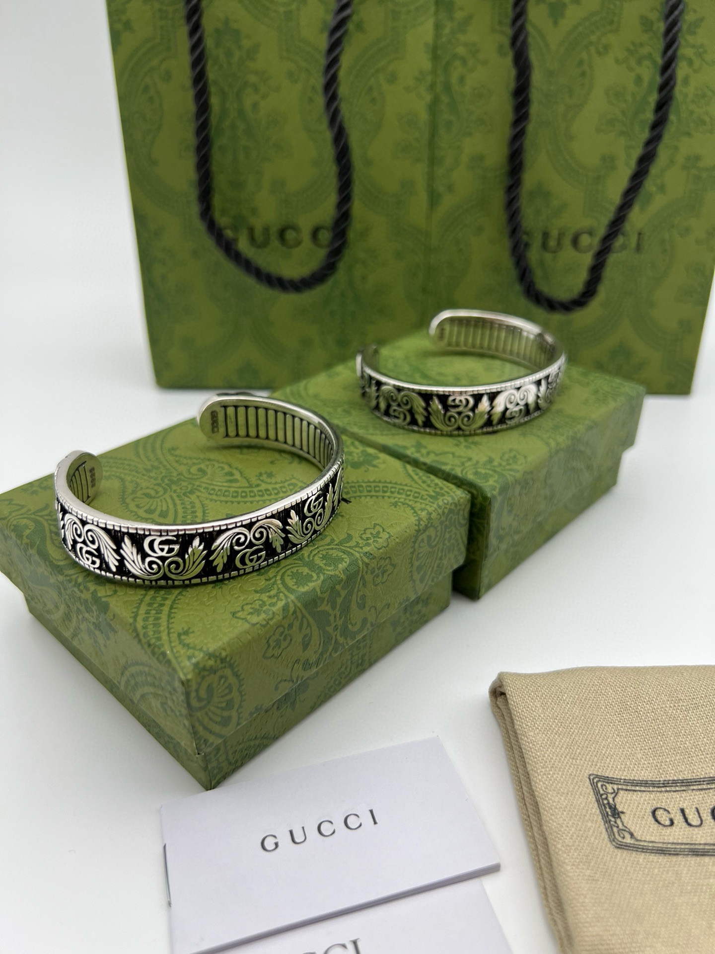 创始人Guccio Gucci姓名的首字母以互扣式双G形式呈现在这款手镯上 传达了时尚永不落幕的理念 这款手链采用泰银制作