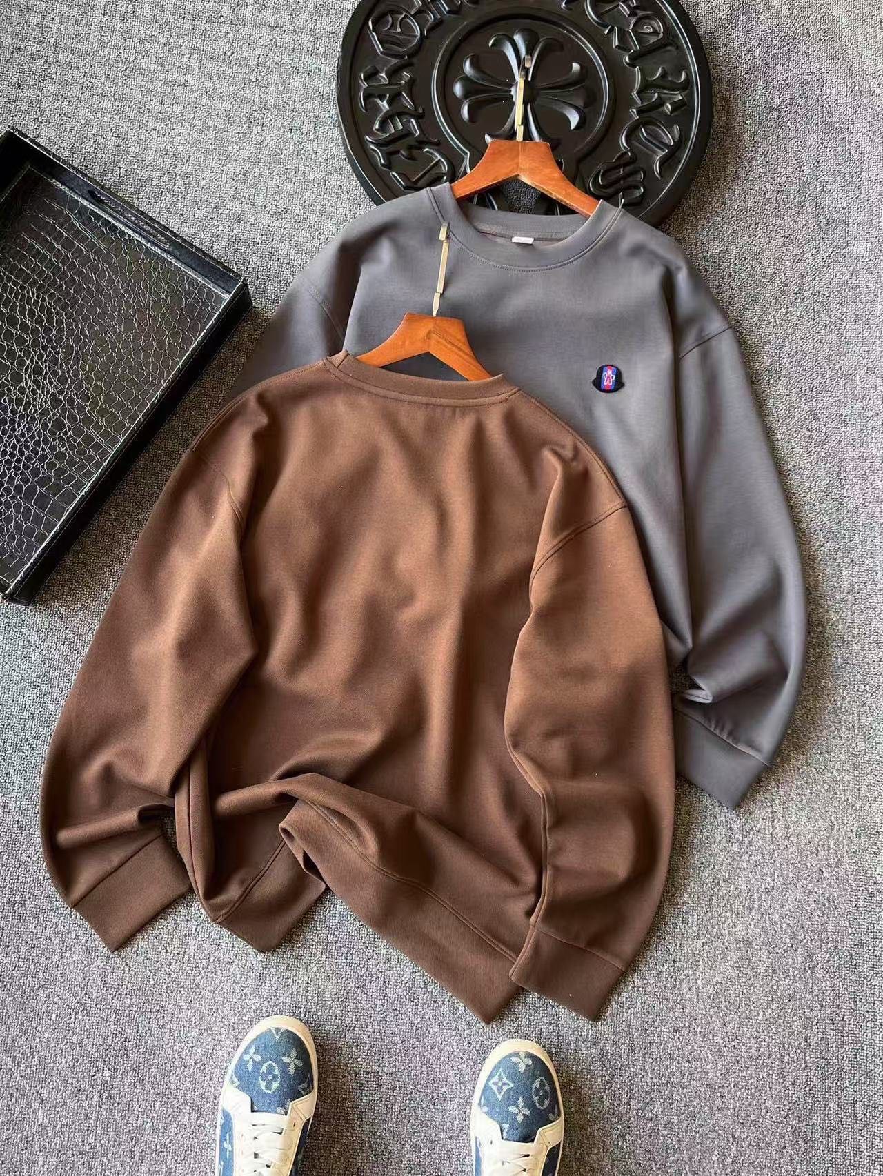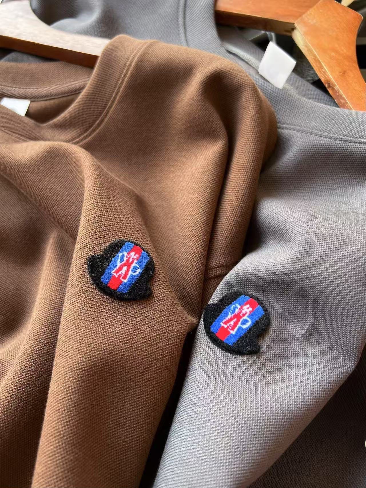 细节细节再细节 Moncler专柜新品毛巾绣3D高奢圆领卫衣 全身精致简约 纯正摩卡色以及水泥灰配色 胸前采用最新3D立体高密彩色毛巾绣工艺 精致蓝红蒙口标识 十分精致 所有拼接接缝处全部做了双针压线 精湛做工天花板
