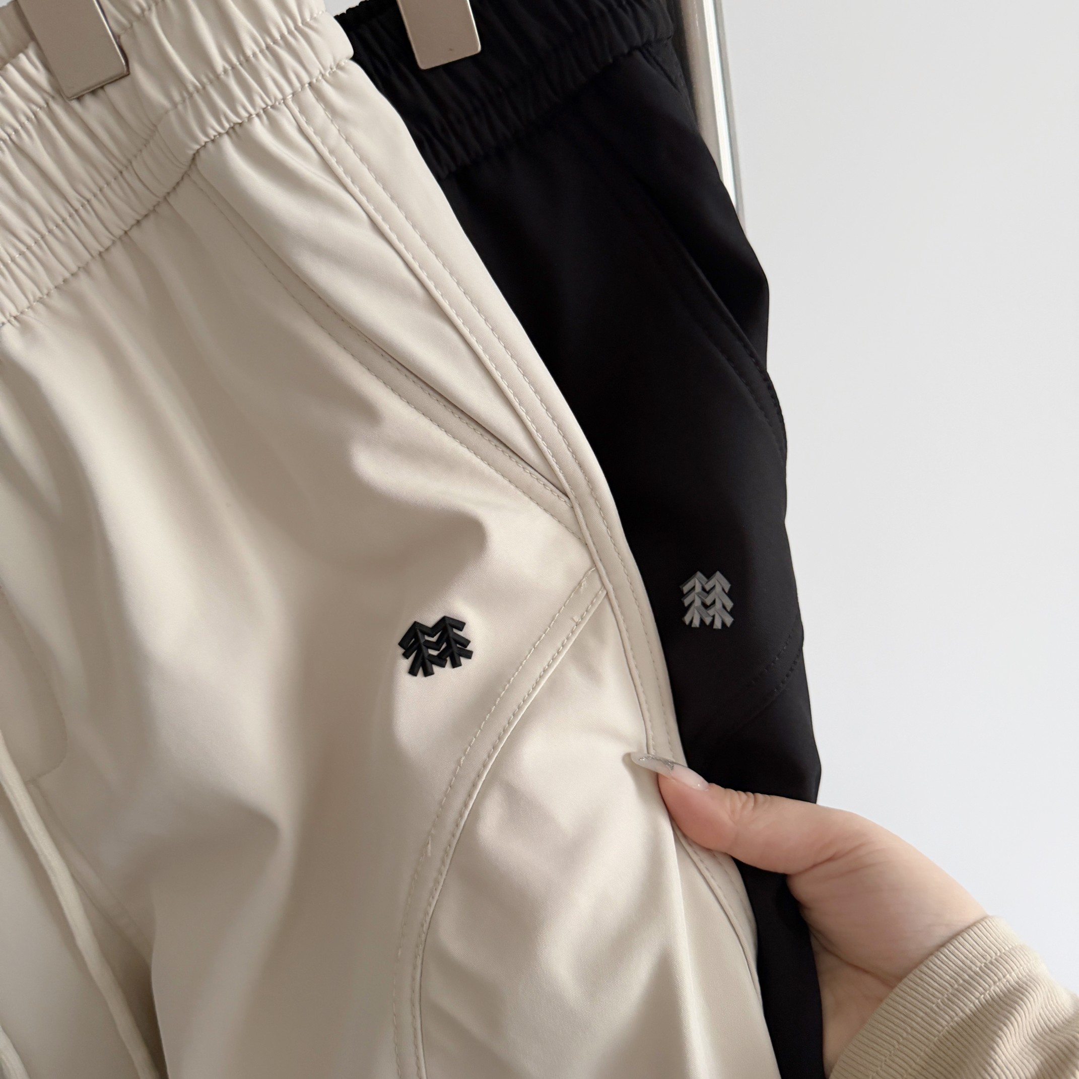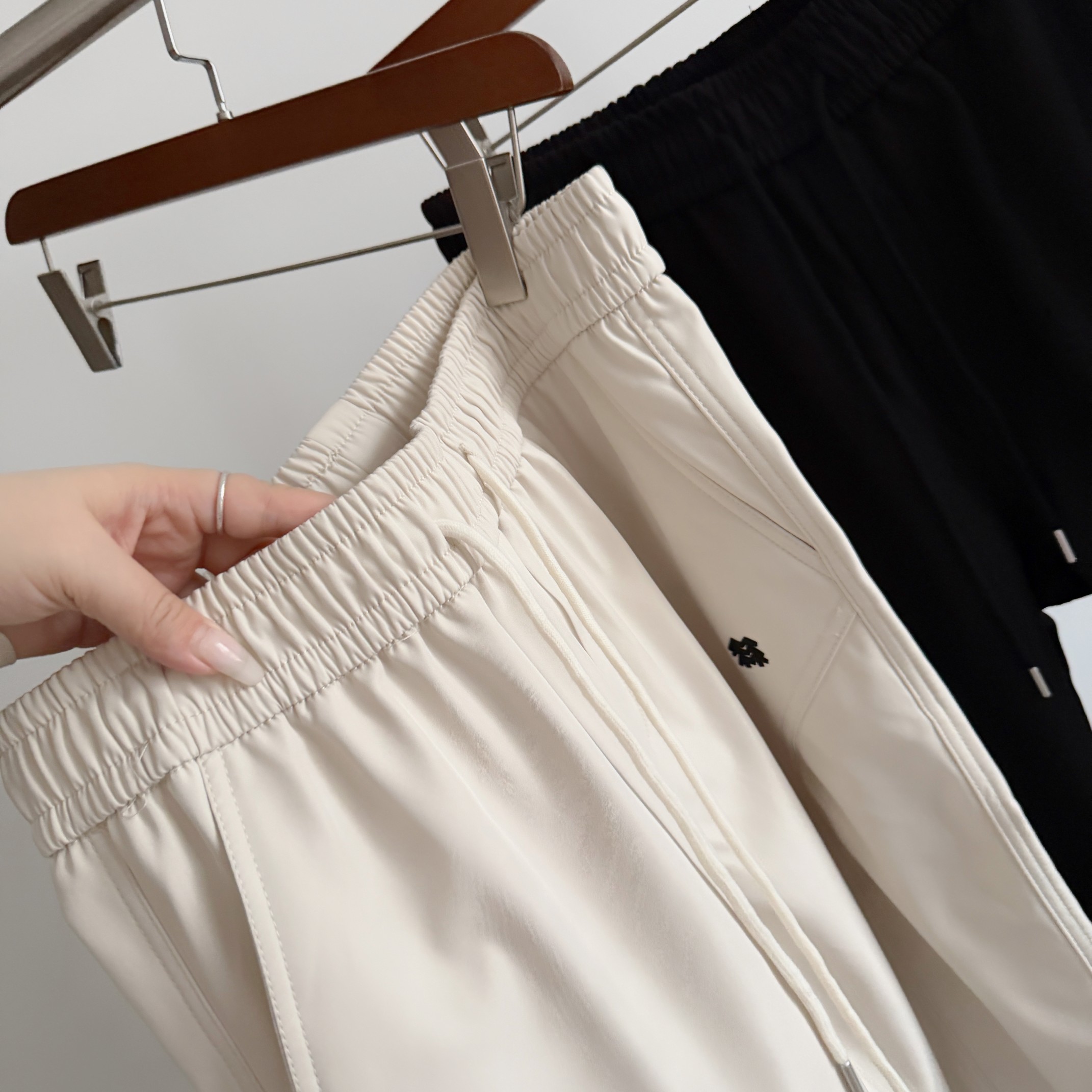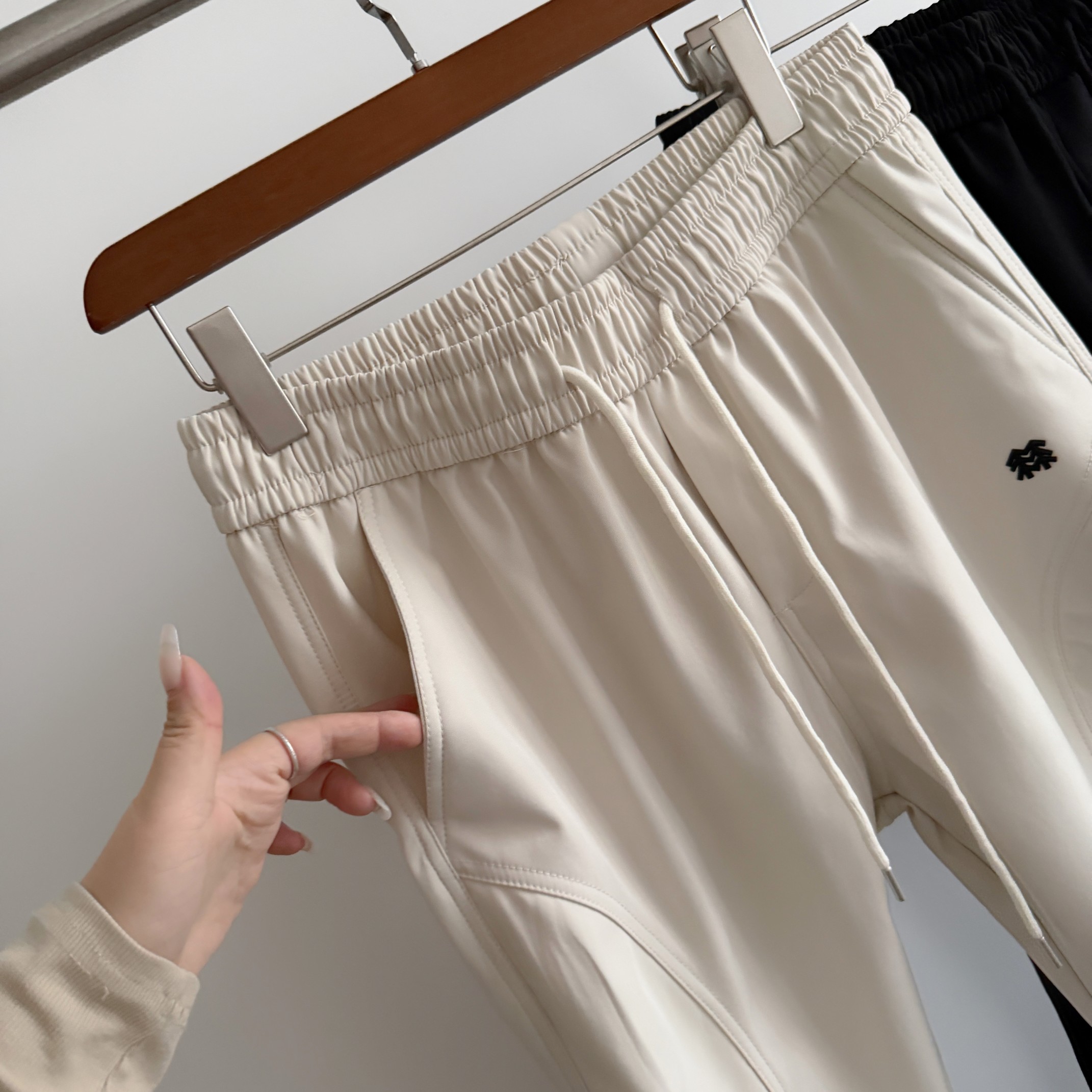抽绳内置的松紧腰 弹力大 穿着不易勒 适合各种腰围的朋友 而且比起外置抽绳也更美观 隐形拉链口袋 实用且颜值高