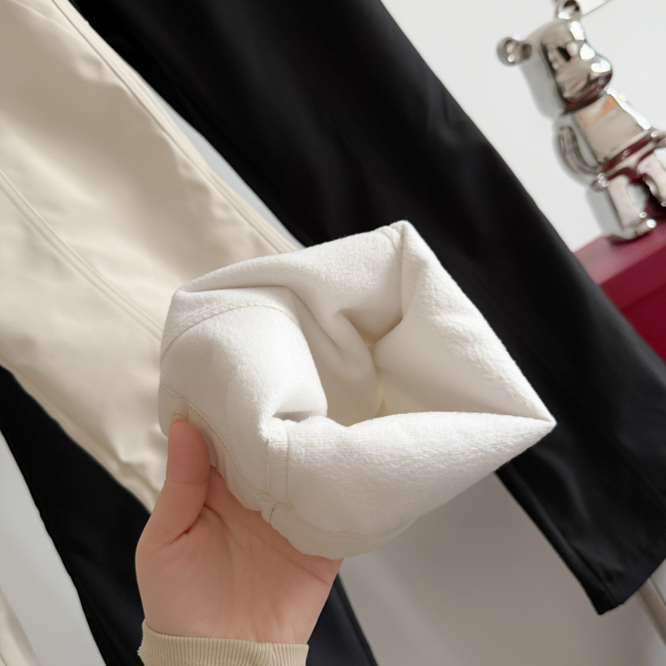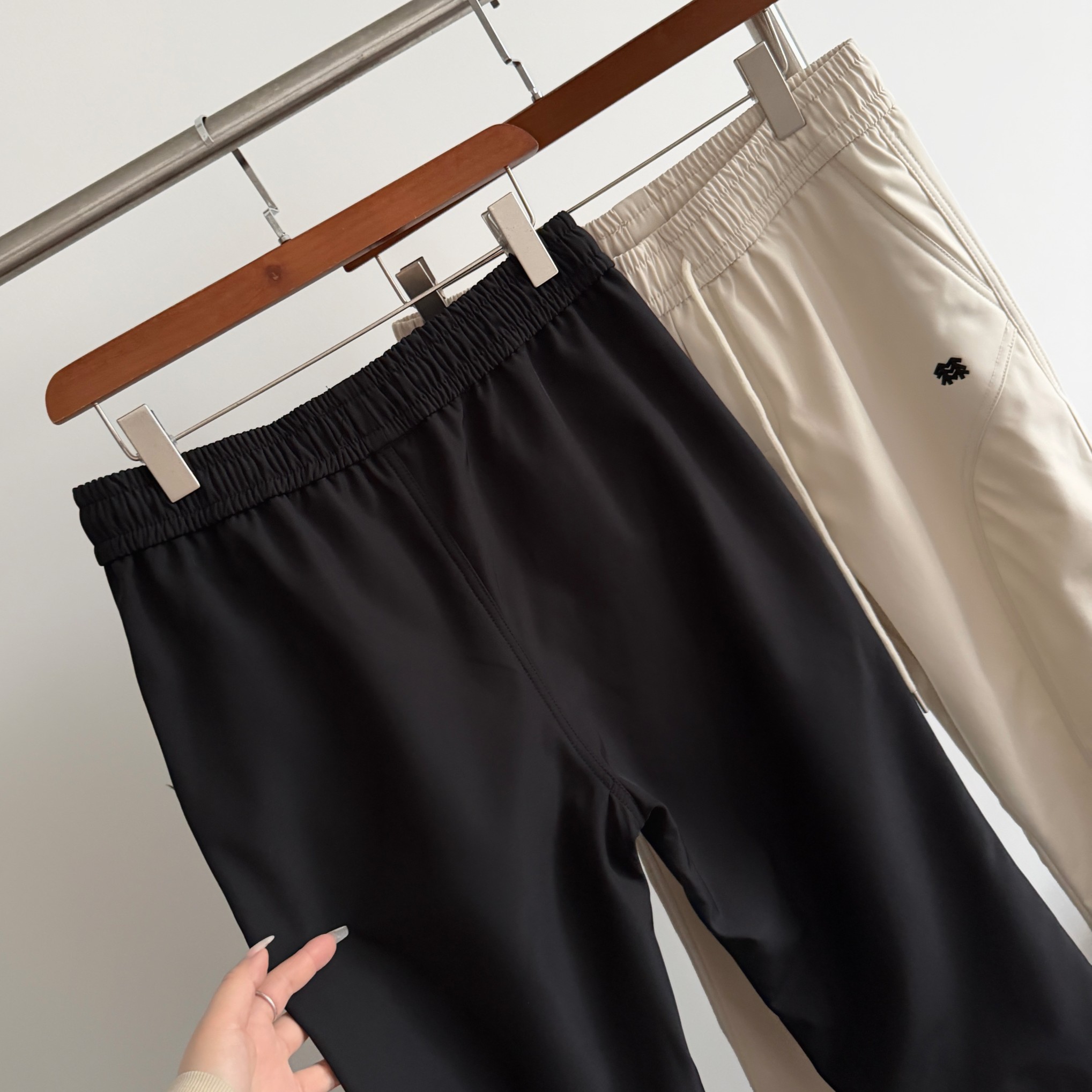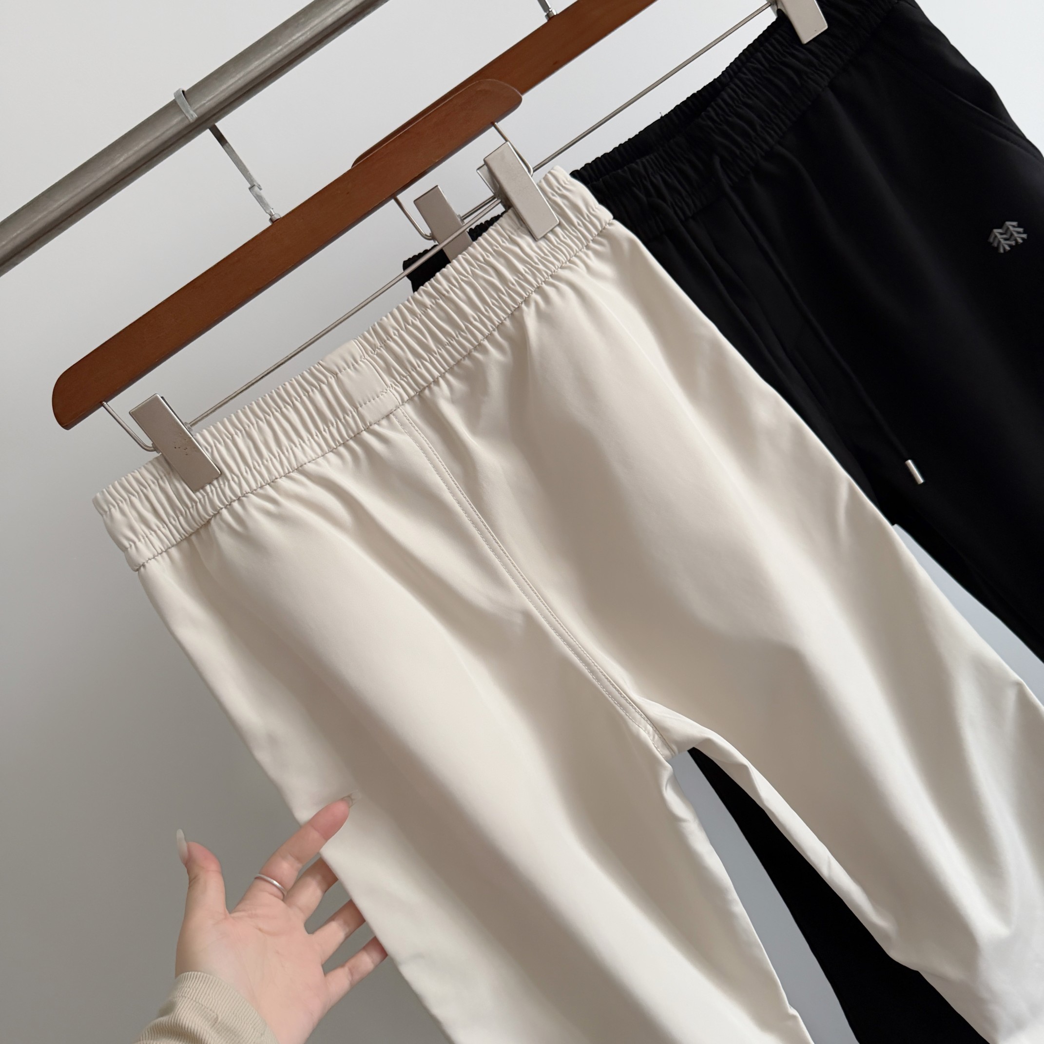 抽绳内置的松紧腰 弹力大 穿着不易勒 适合各种腰围的朋友 而且比起外置抽绳也更美观 隐形拉链口袋 实用且颜值高