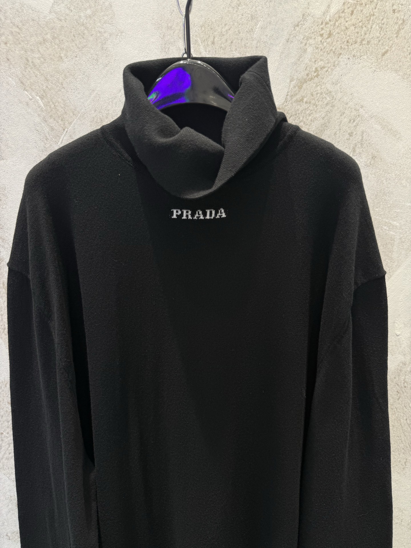 PRAD 小字母高领毛衣打底衫 这款Oversize精纺羊毛毛衣的领口底部饰以提花刻字徽标 展现标志性的极简设计元素 尺码SIZE XS S M L