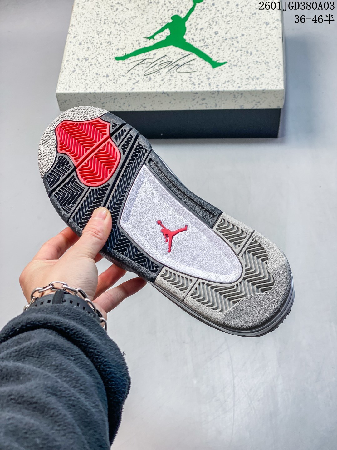 耐克 Nike Air Jordan 4 Retro OG迈克尔 乔丹AJ4代乔4 低帮复古休闲运动文化篮球鞋 秉承轻量化的速度型篮球鞋设计思想完成设计 降低重量的同时提升舒适度 中底延续前作使用了分离式后掌可视化 Air Sole气垫 鞋带孔和后跟鞋提以籃网为造型灵感 将篮球运动巧妙融入到鞋款的设计之中 使鞋身整体富有流动性 节奏感和优雅气质