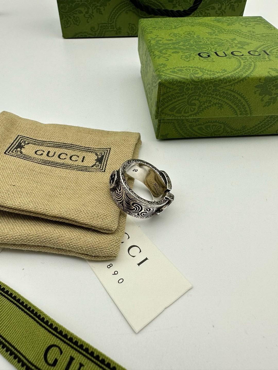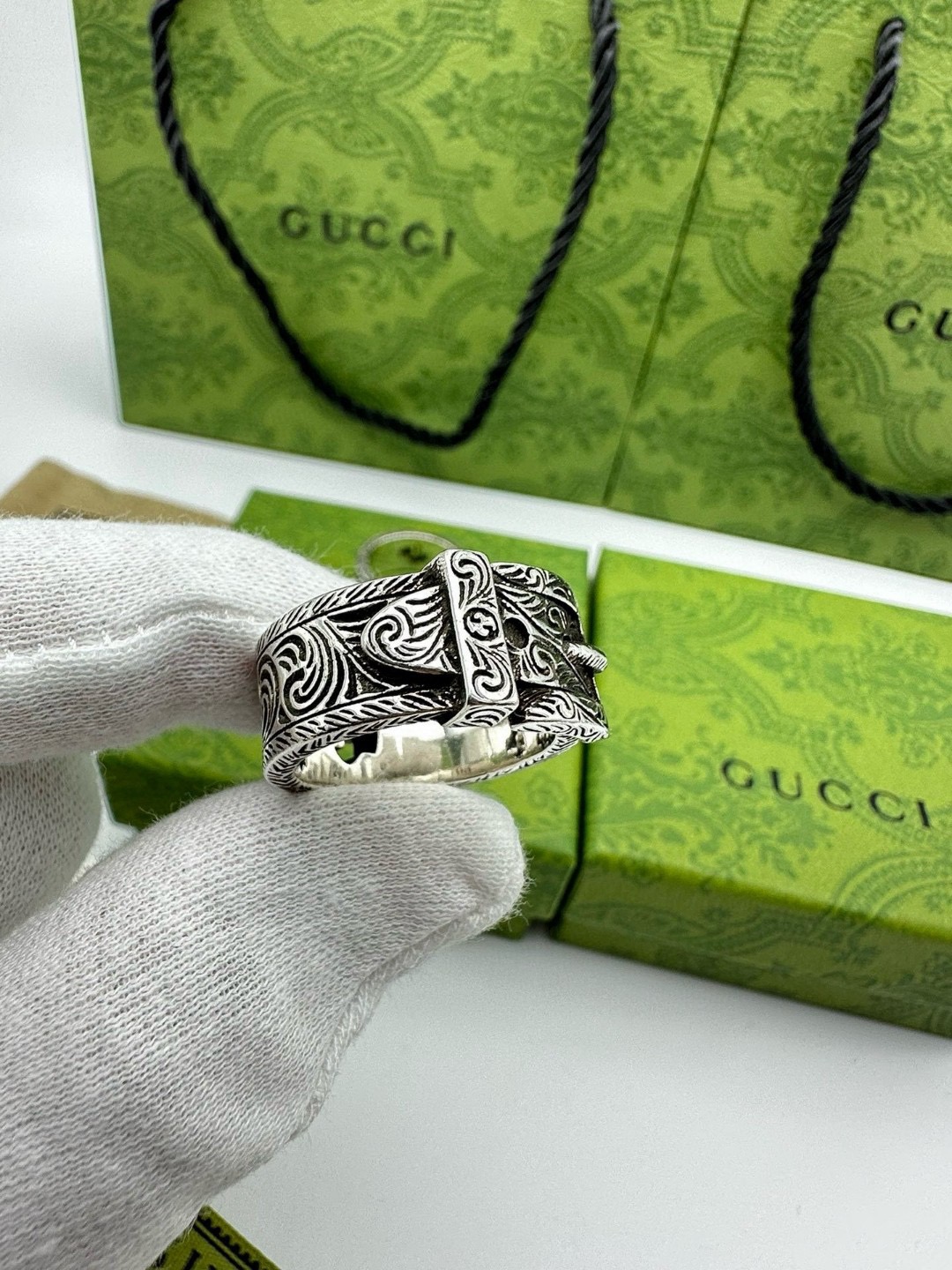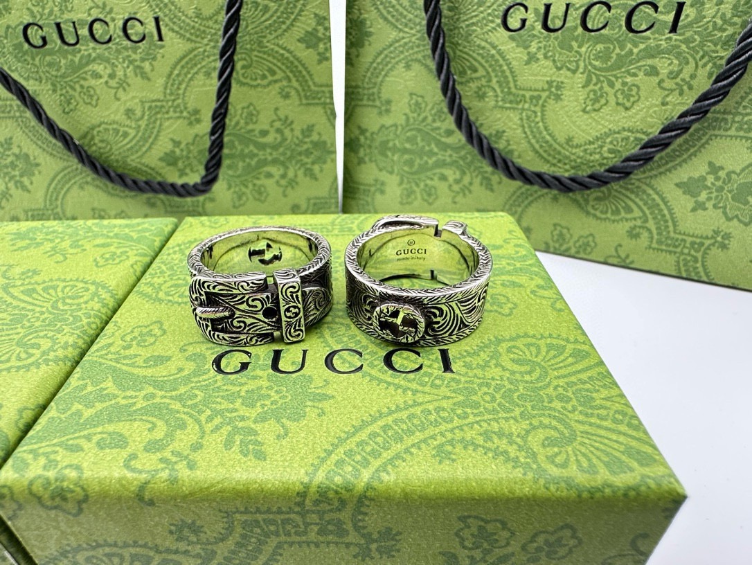 60243591 - Gucci古驰双G花藤皮带扣戒指 泰银版本 戒指上镌刻品牌标 447110