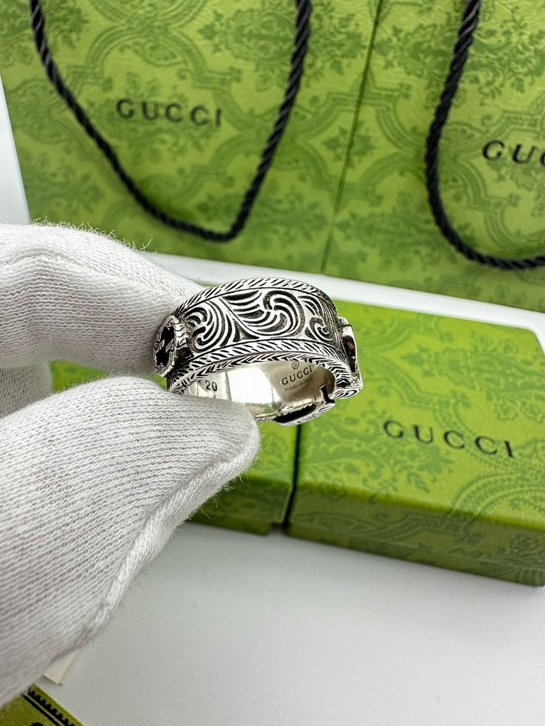 Gucci古驰双G花藤皮带扣戒指 泰银版本