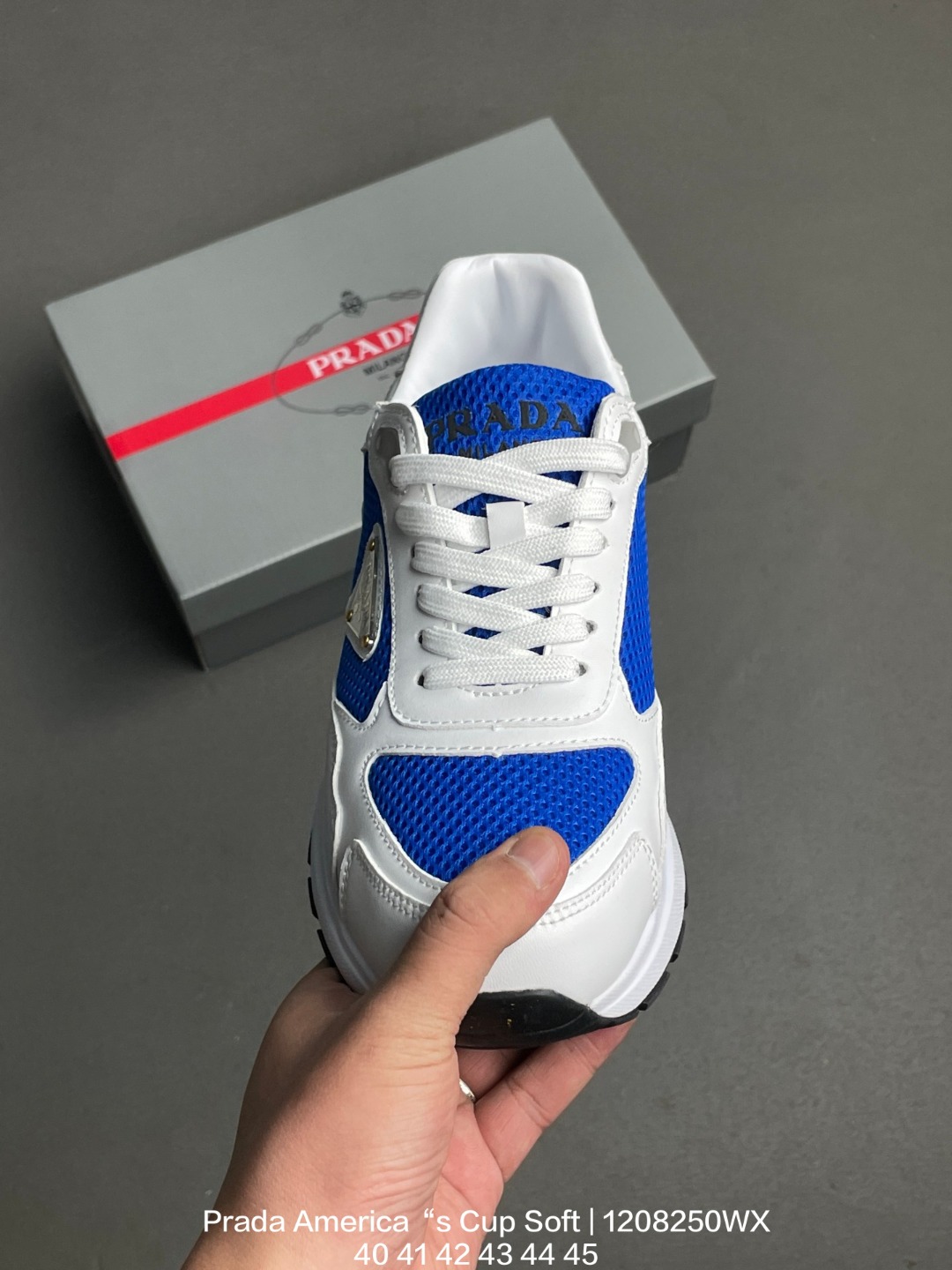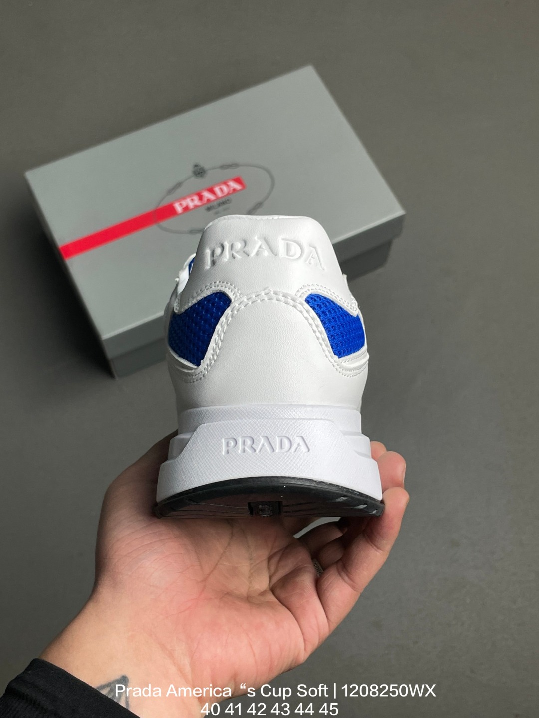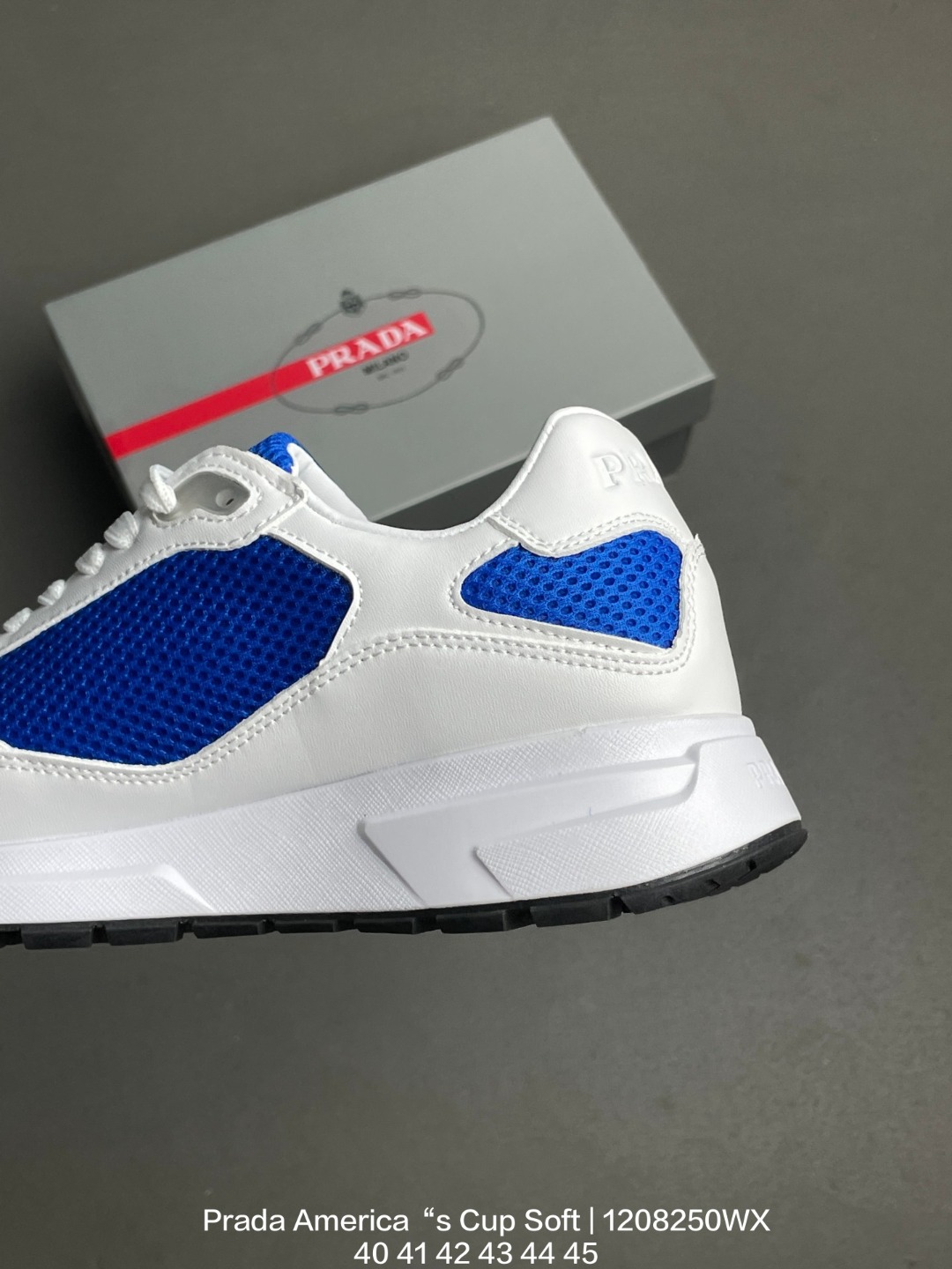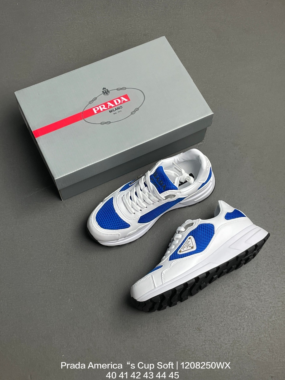 原楦数据开发版型 采用TPU定型橡胶模片网织布鞋面材质 头层真皮灌注式PU乳胶缓震鞋垫 外置TR耐磨橡胶鞋底多变设计塑造新品 意大利高奢品牌 普拉达Prada America s Cup Soft Rubber Sneakers 美洲杯系列低帮系带简约百搭休闲运动慢跑鞋