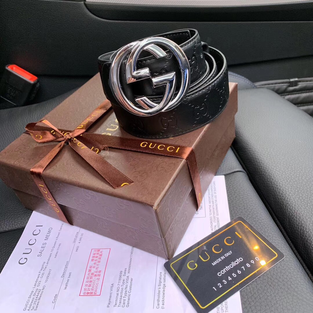 GUCCI皮带全套包装礼盒装腰带 这批腰带从外到内都堪称完美 无论是高端大气的包装 还是真材实料的品质 都受各位男士的追捧 暗纹压花的设计还是很低调的小心机 让腰带多一点设计元素 但整体又是黑色 不会像印花的那样引入注意
