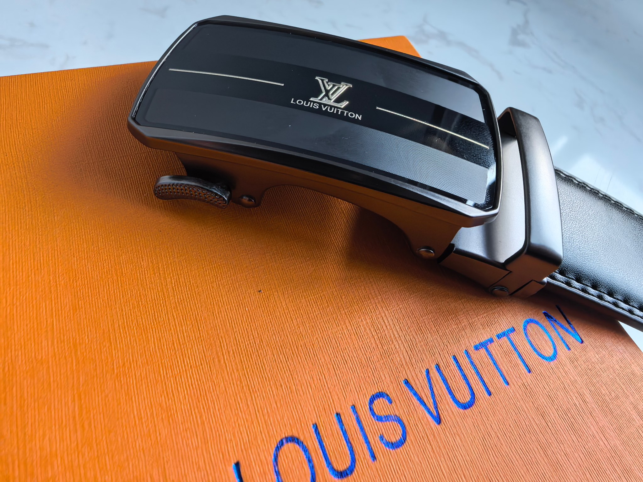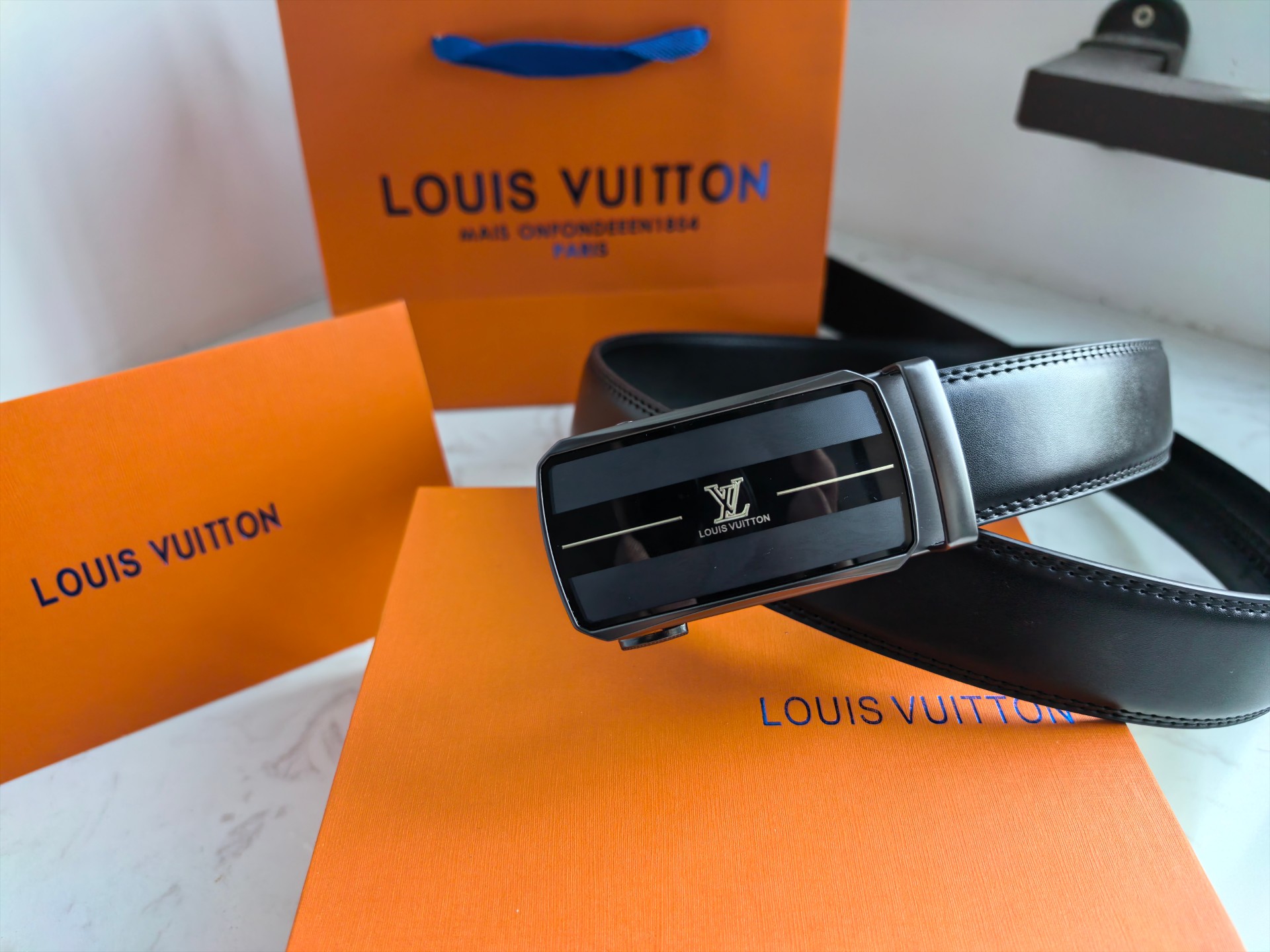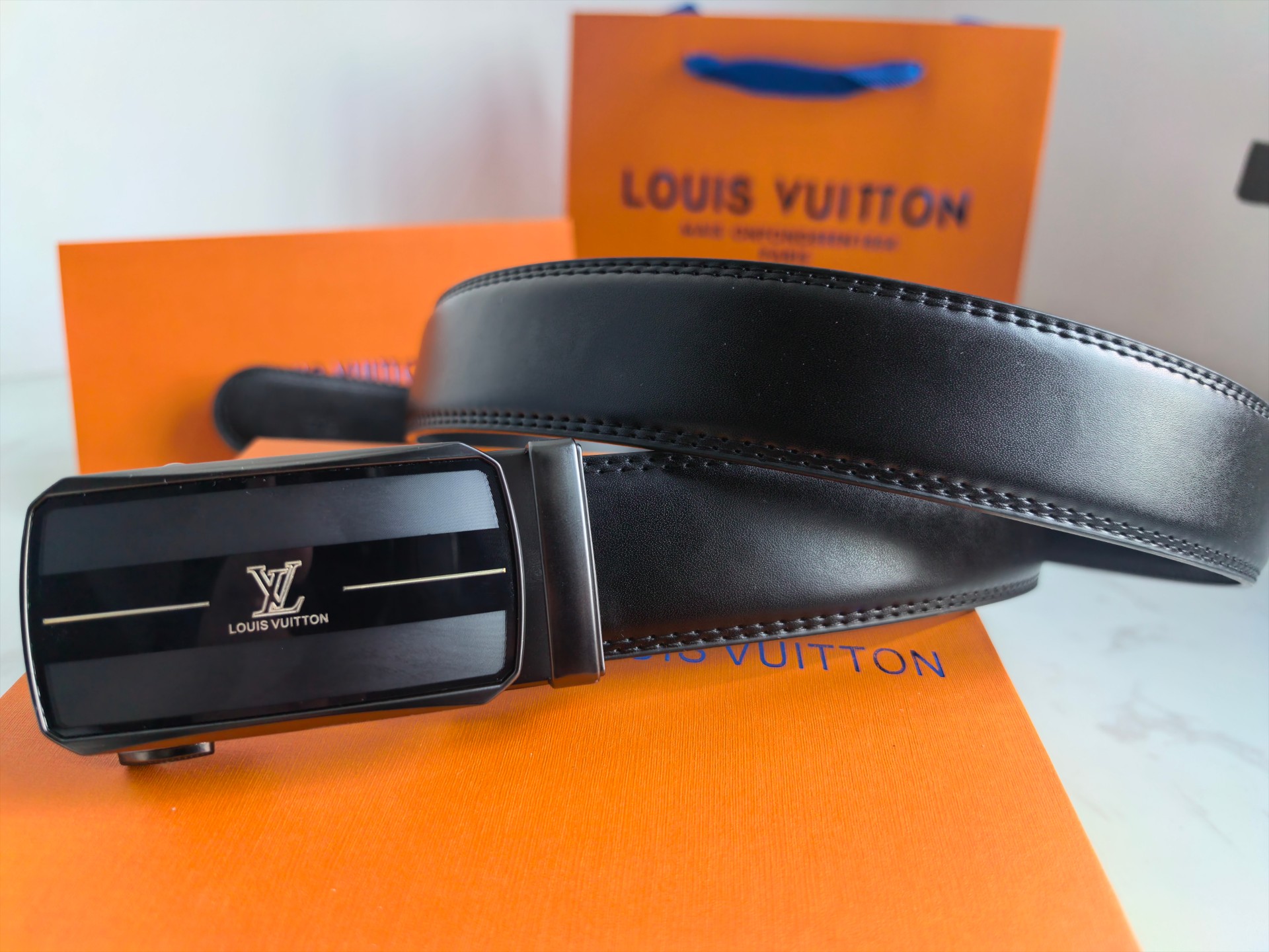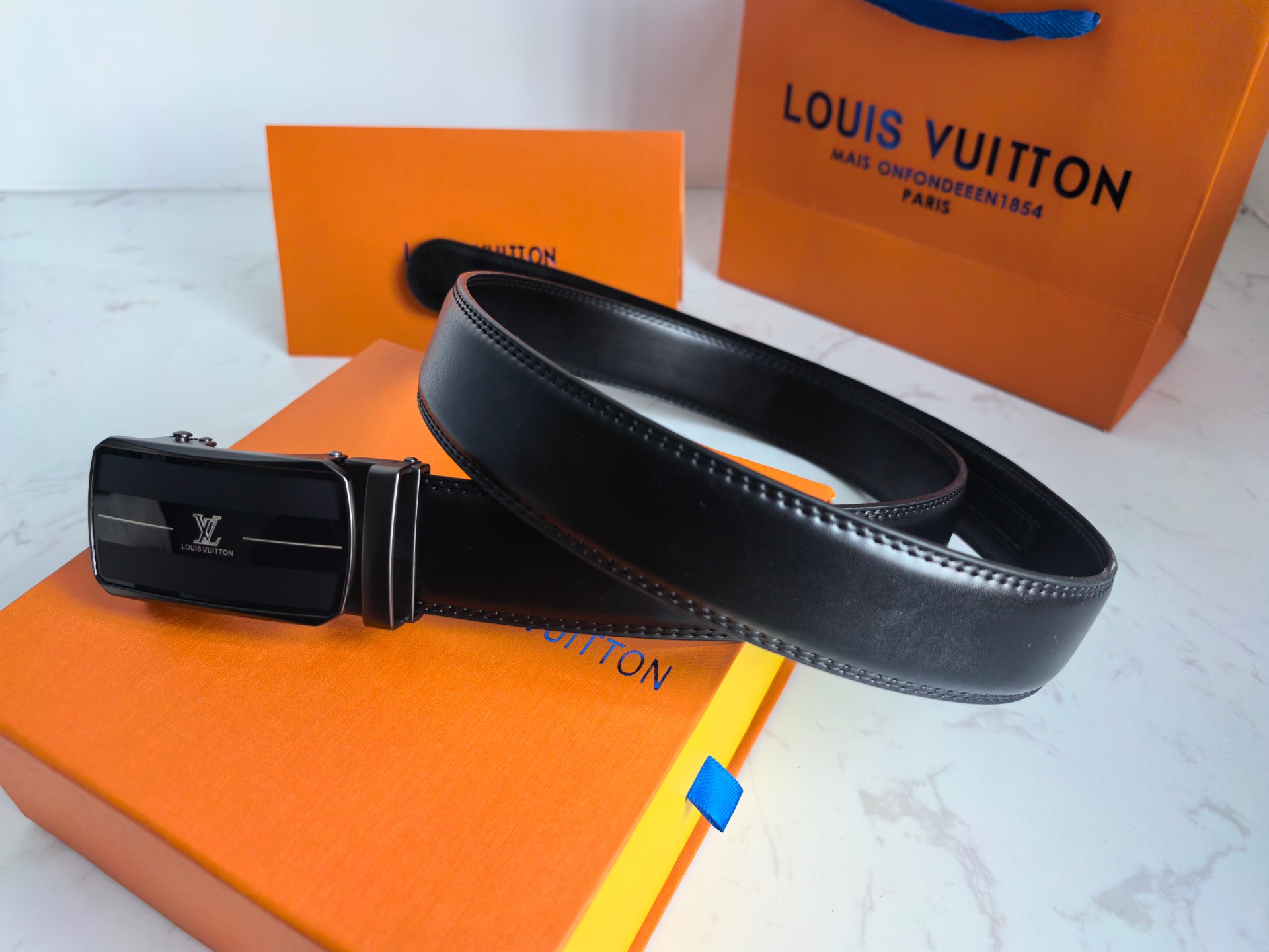 售后不停 原单路易威登LOUIS VUITTON磨砂自动平滑扣高品质皮带 经典中的经典款式 话不多说 直接看实拍图 真的超有质感 好东西不是靠嘴说的哈 LV独特的气场 标准的方框造型设计 真的是美爆了 居可靠统计 LV皮带一直稳坐轻奢品牌皮带的宝座 足以证明它的独特魅力 LV一直是时尚与文明的象征 辨识度超高 LV的设计风格非常鲜明 年轻人及成功人士都是完全可驾驭的 真心推荐