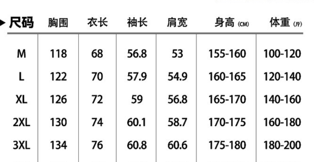 尺码 M 3XL