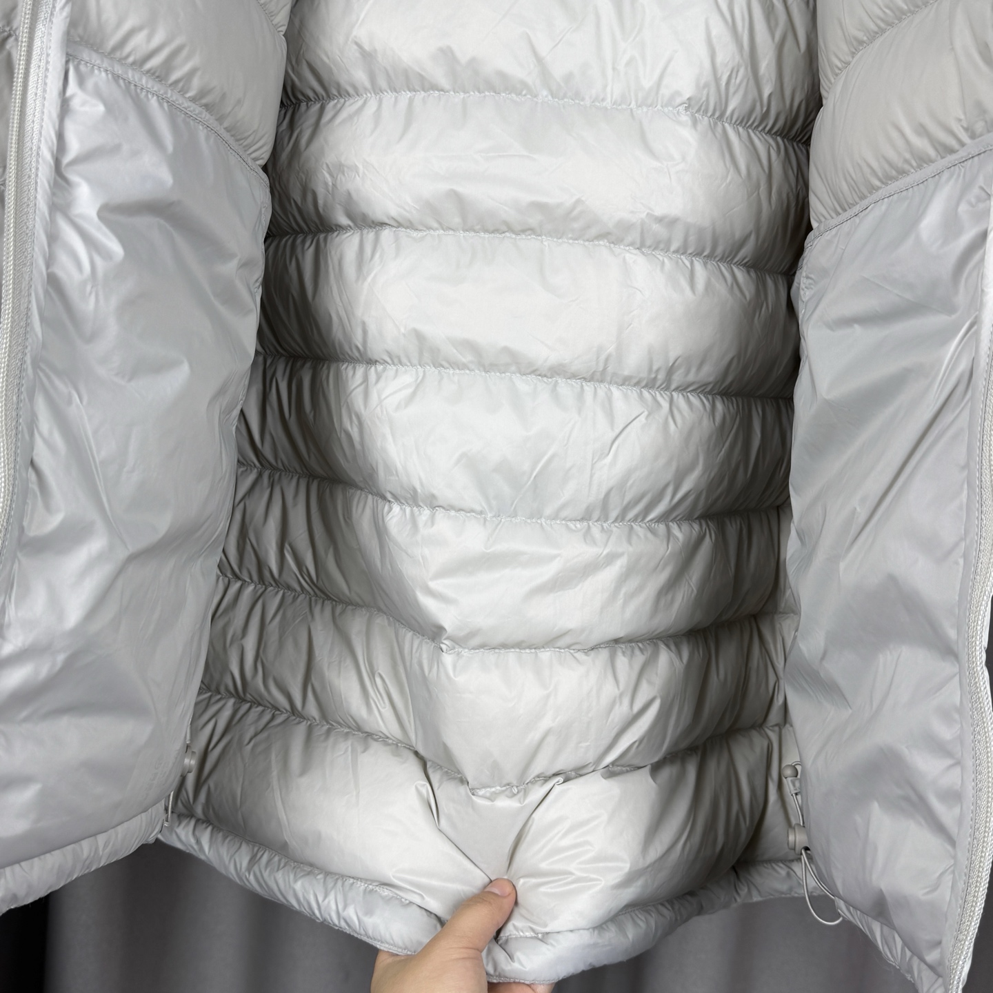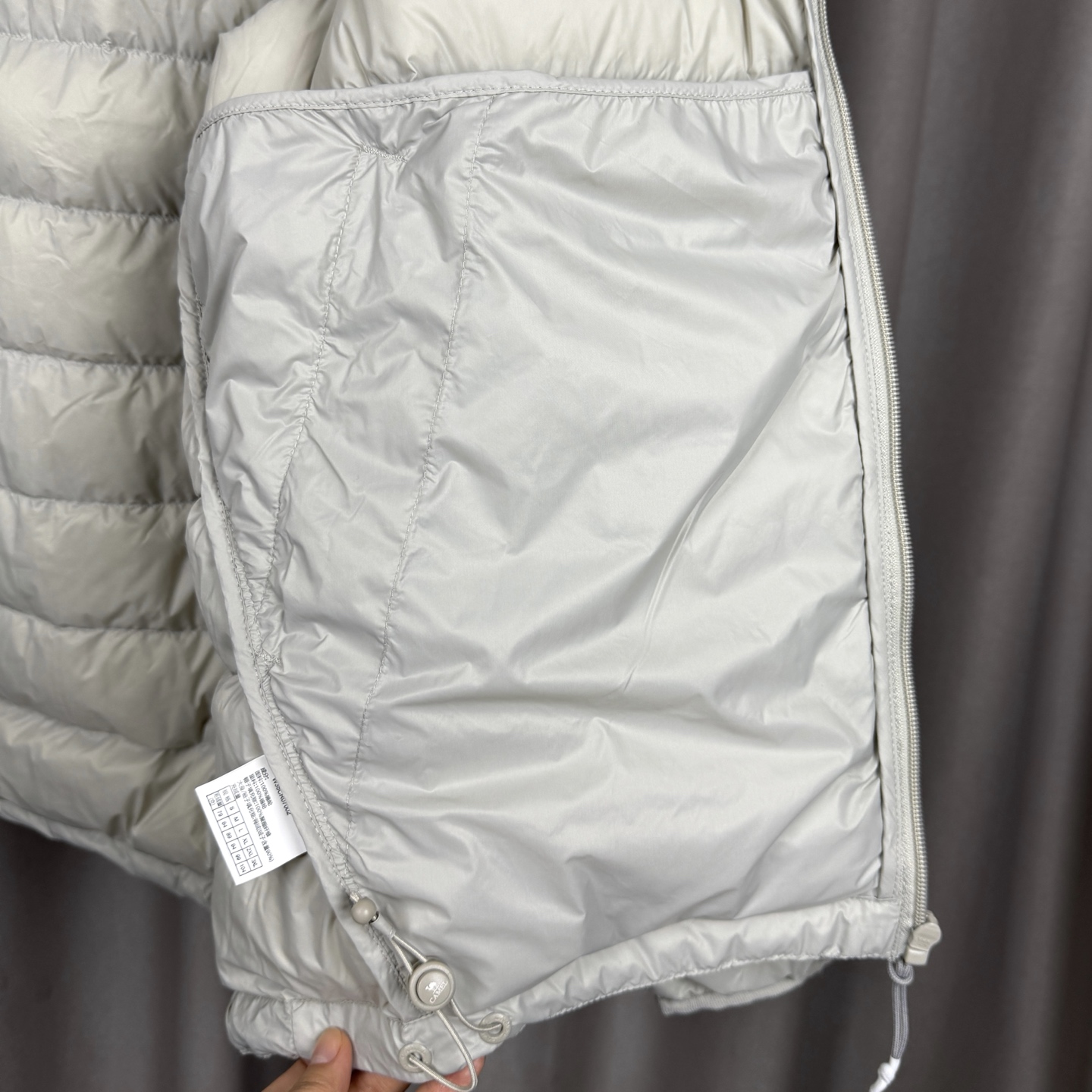 面料采用原版定制轻量的微细高密面料 表面经拒水处理 轻盈透气 耐撕裂防风防泼水 穿着轻盈舒适不压肩 分区充绒使绒朵蓬松的空问更大 更保暖 同时不显臃肿 内里填充900蓬高品质拒水鹅绒 绒子含量高达95 袖口采用弹力带收口 减少热量散失 全方位贴合防风 御寒锁温 侧边插手兜ykk隐形拉链 内里多功能口袋可将羽绒服迅速压缩至手掌大小 方便携带 无论是户外冒险还是日常出行都超合适