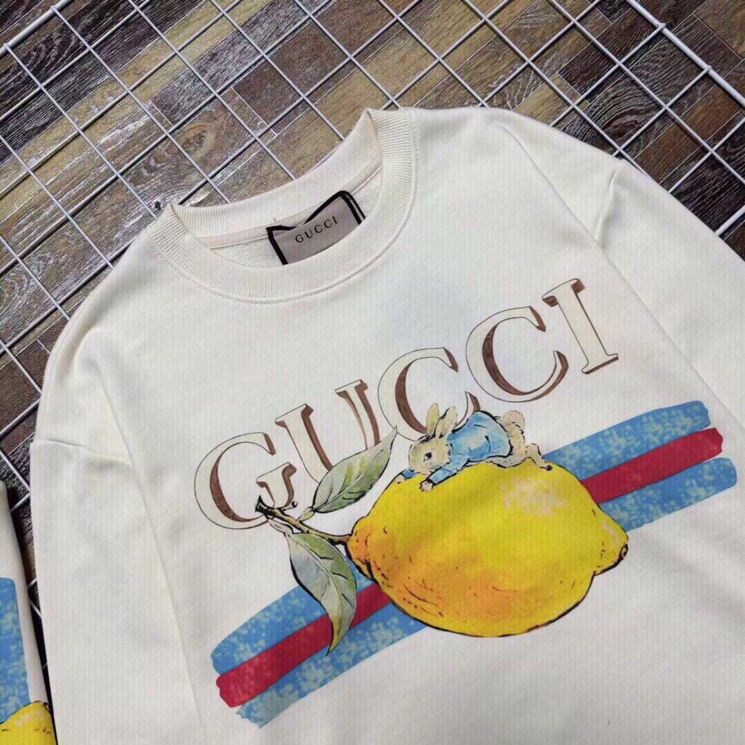 新款上新 限量款爆款推荐高版本Gucci 古驰秋季彼得兔石墨印花彩色卡通情侣款圆领长袖卫衣 流氓兔彩色前福水印花 衣服印花怎么洗也不会掉落 双纱480G精梳全棉面料 衣服都是采用双针走线工艺 GUCCI超爆新款 秋季新款限定版情侣卫衣 不是好货不推荐 万年基础百搭绝对是最好的选择 多入手几件都不为过 面料和款式都很出色 版型正 人人都好穿 首先来说 超高品质 精密印花大标 重工艺 面料吸汗透气超级舒服 做工细致 款式简单大方 不啰嗦 版版型非常完美 不会局限身材 不论胖瘦都合适 超级推荐自留款