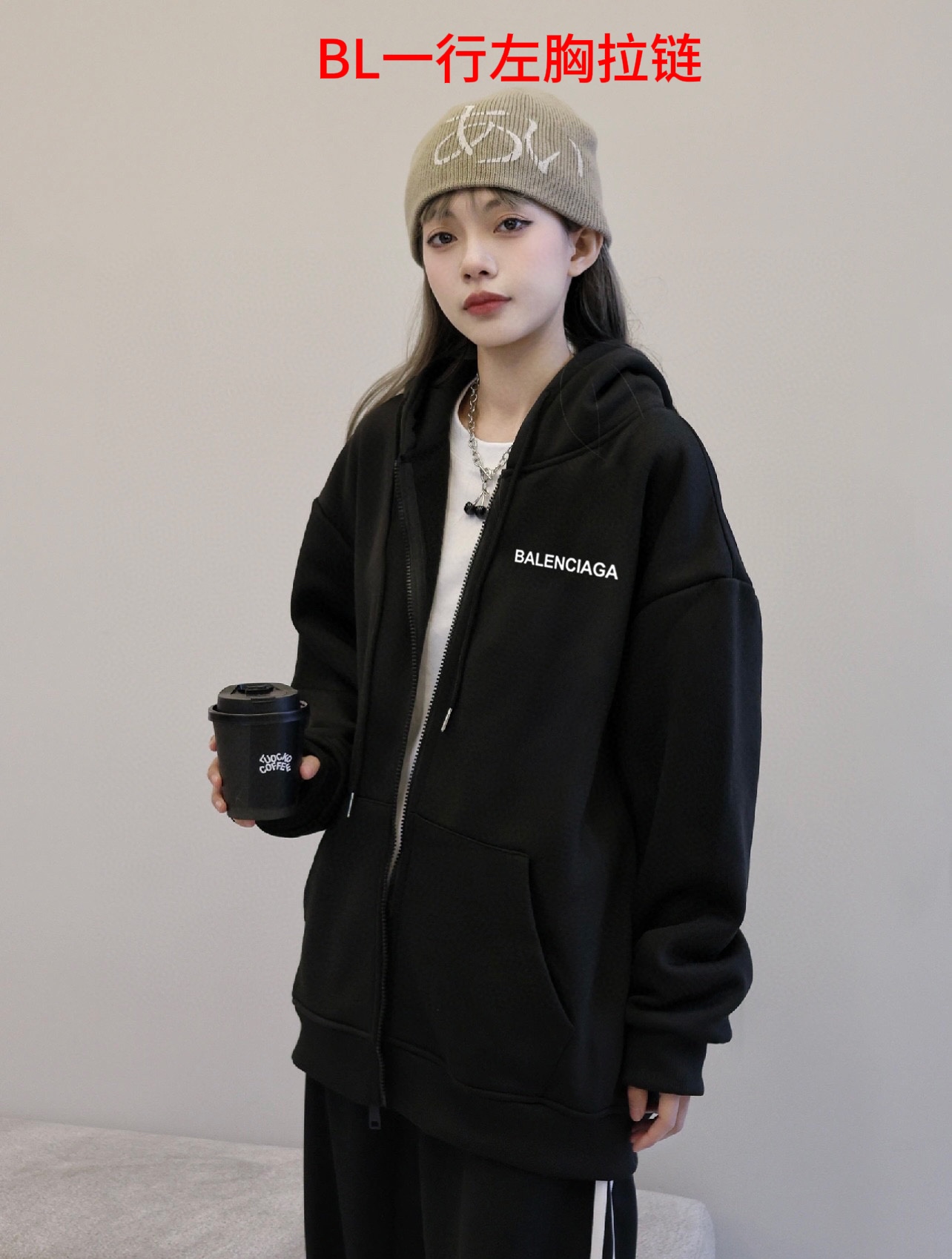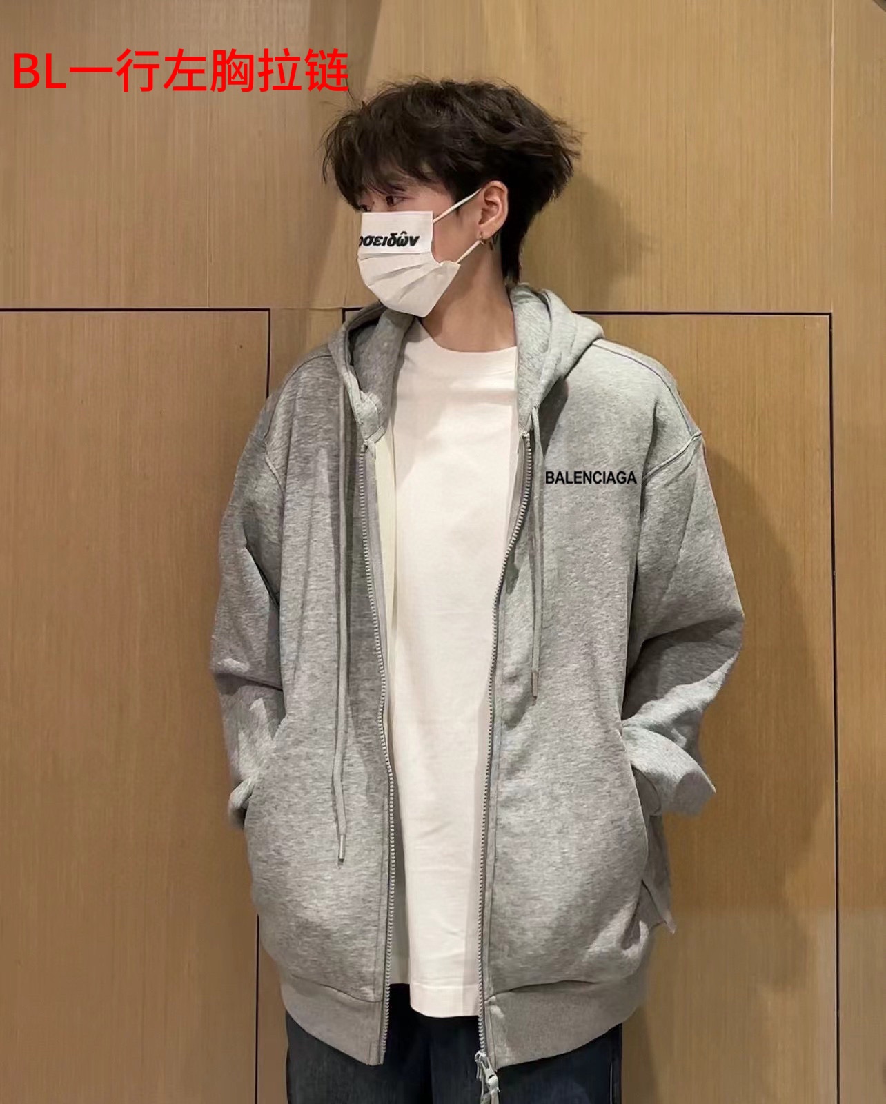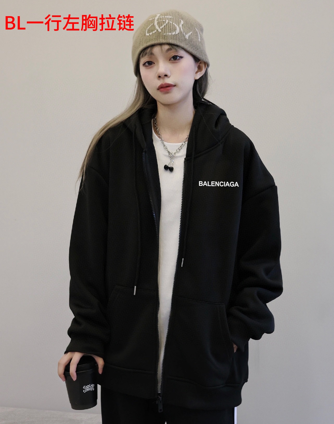 Balenciaga巴黎世家经典小标春季开衫拉链连帽卫衣外套