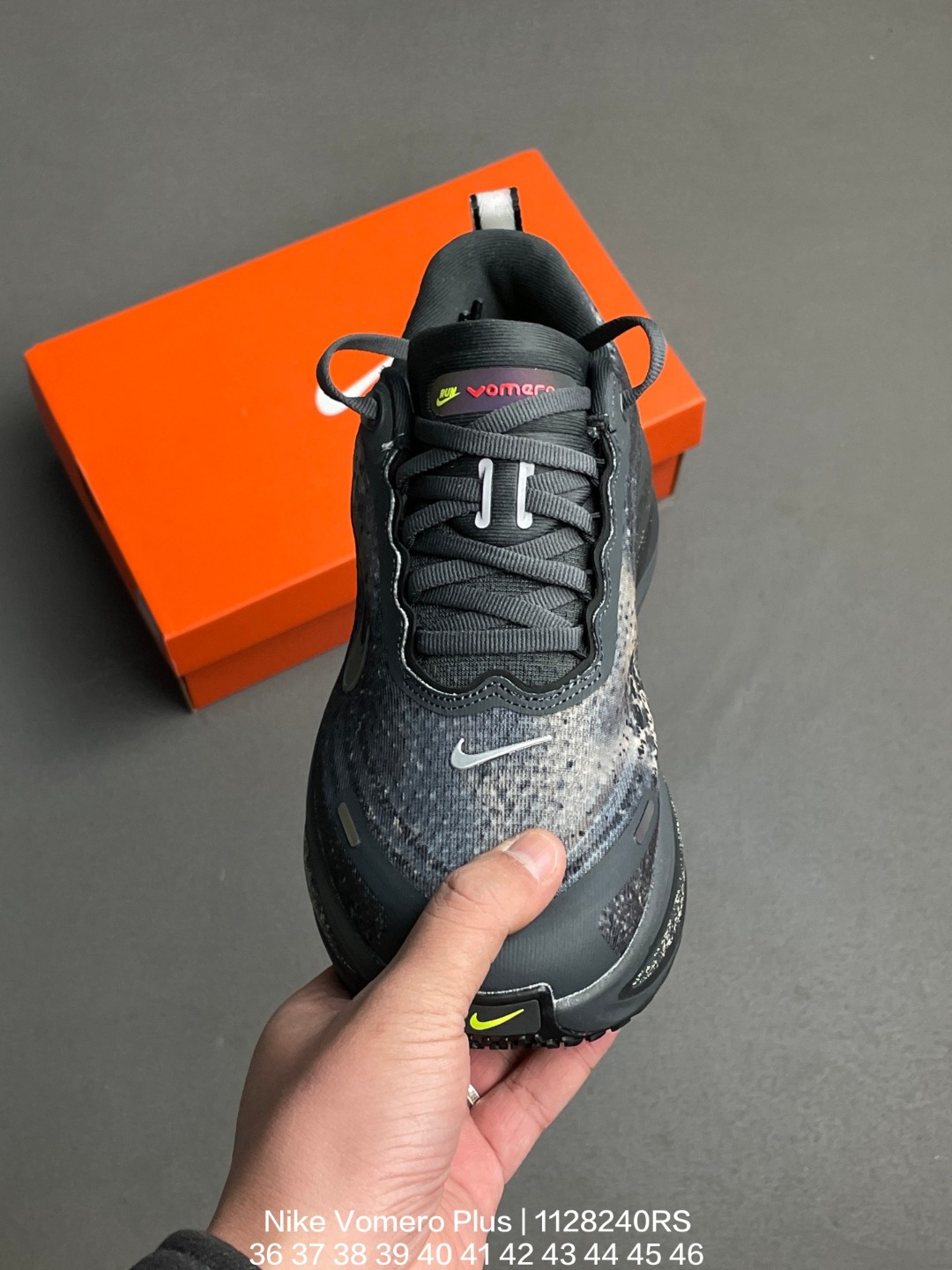 Nike 耐克 采用科技织法轻盈织物合成鞋面材质 ZoomX 泡绵中底 外置外置防滑耐磨橡胶底片造舒适迈步体验 助力日常畅跑 耐克Nike Vomero Plus Bright Mango 佛莫罗加强版系列低帮轻质厚底缓震公路透气休闲运动跑步鞋