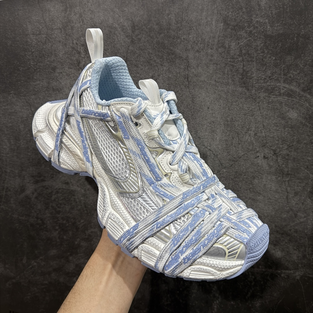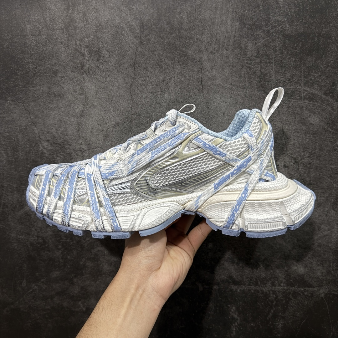 全套原纸板楦头开发 最原汁原味的灵魂版型 全鞋荧光划线卡点 胶水把控整洁度追求极致完美 每一双都是工艺品 多重QC质检 超越公司货的品控标准 实实在在的免检产品 原盒原配 正确字体电绣 粗细 位置 大小正确 侧边TPU 透气孔匹配意产原版 正确分离大底 TPU软底 原版一致大底LOGO 立体感十足 原厂皮料水洗做旧 采购原厂网纱 不含皮革 网布材料和聚氨酯 磨损效果 鞋头边缘和后帮 Balenciaga 徽标 鞋面和后跟凸印尺码 鞋舌 3XL 橡胶品牌标识和反光细节 鞋帮拉袢和鞋舌拉祥 配反光细节 备用鞋带在鞋履前侧 可在穿着前取下 便于不同造型搭配