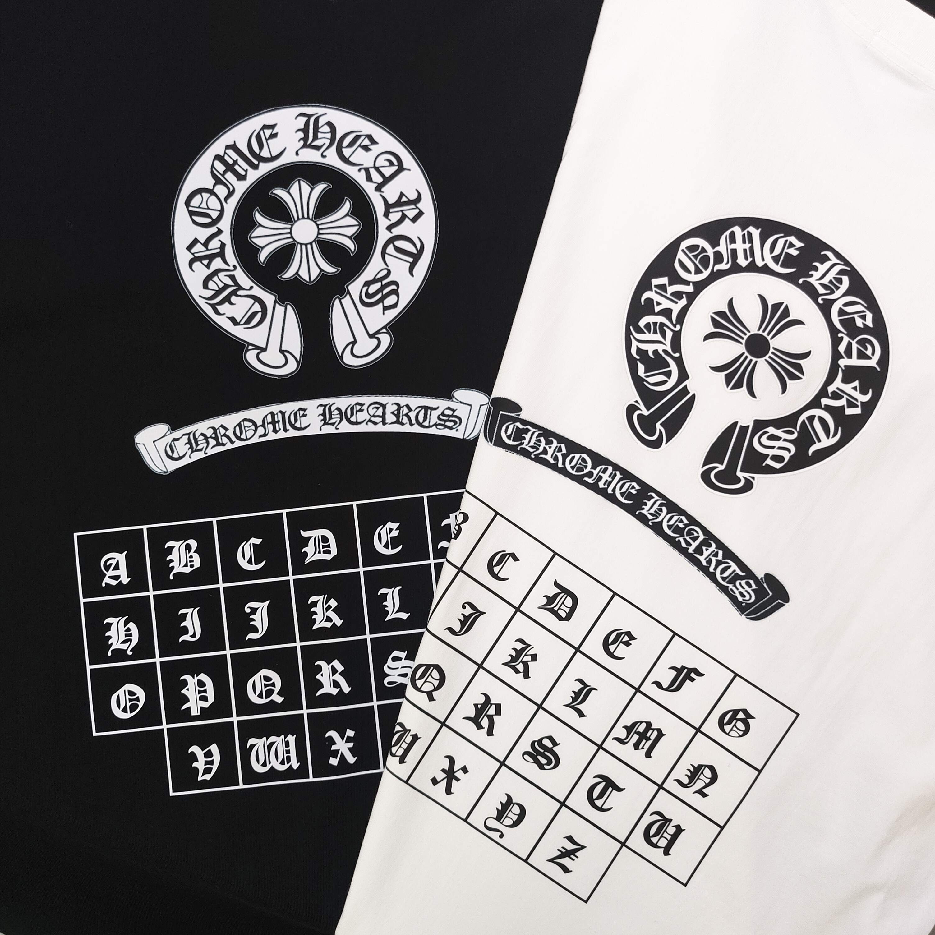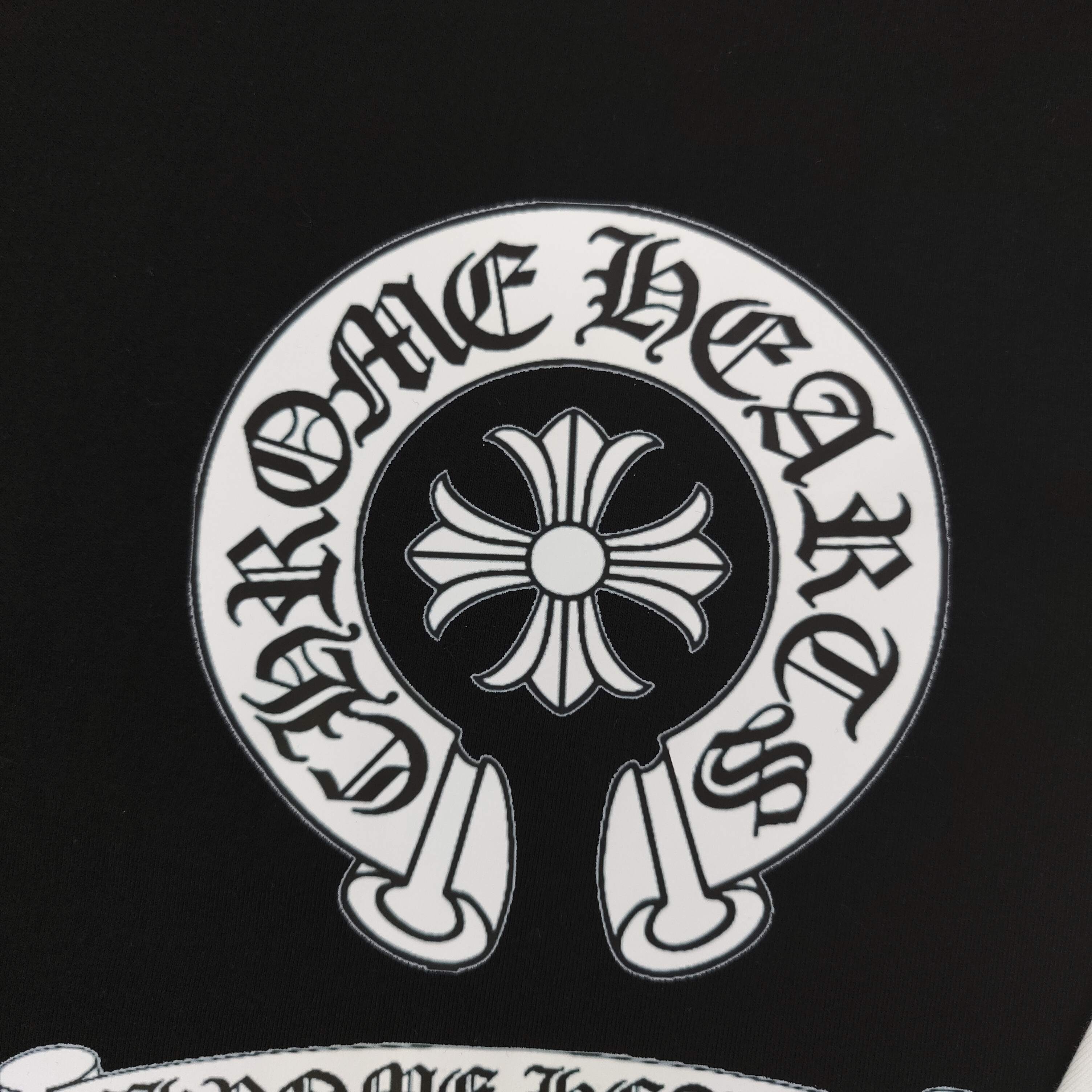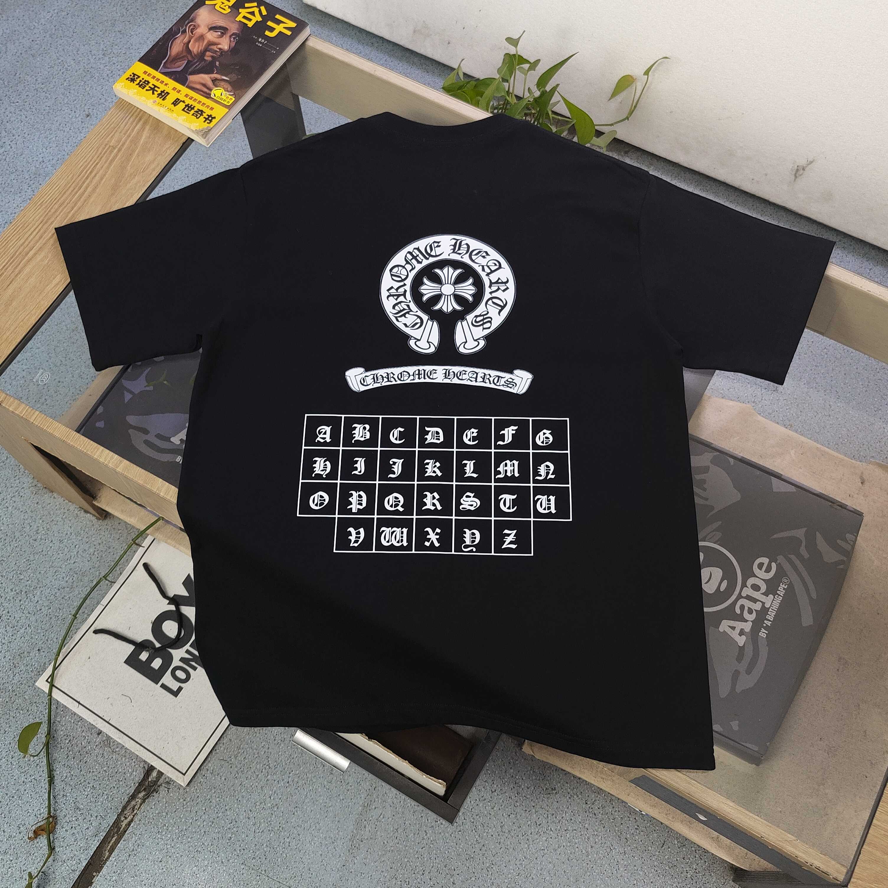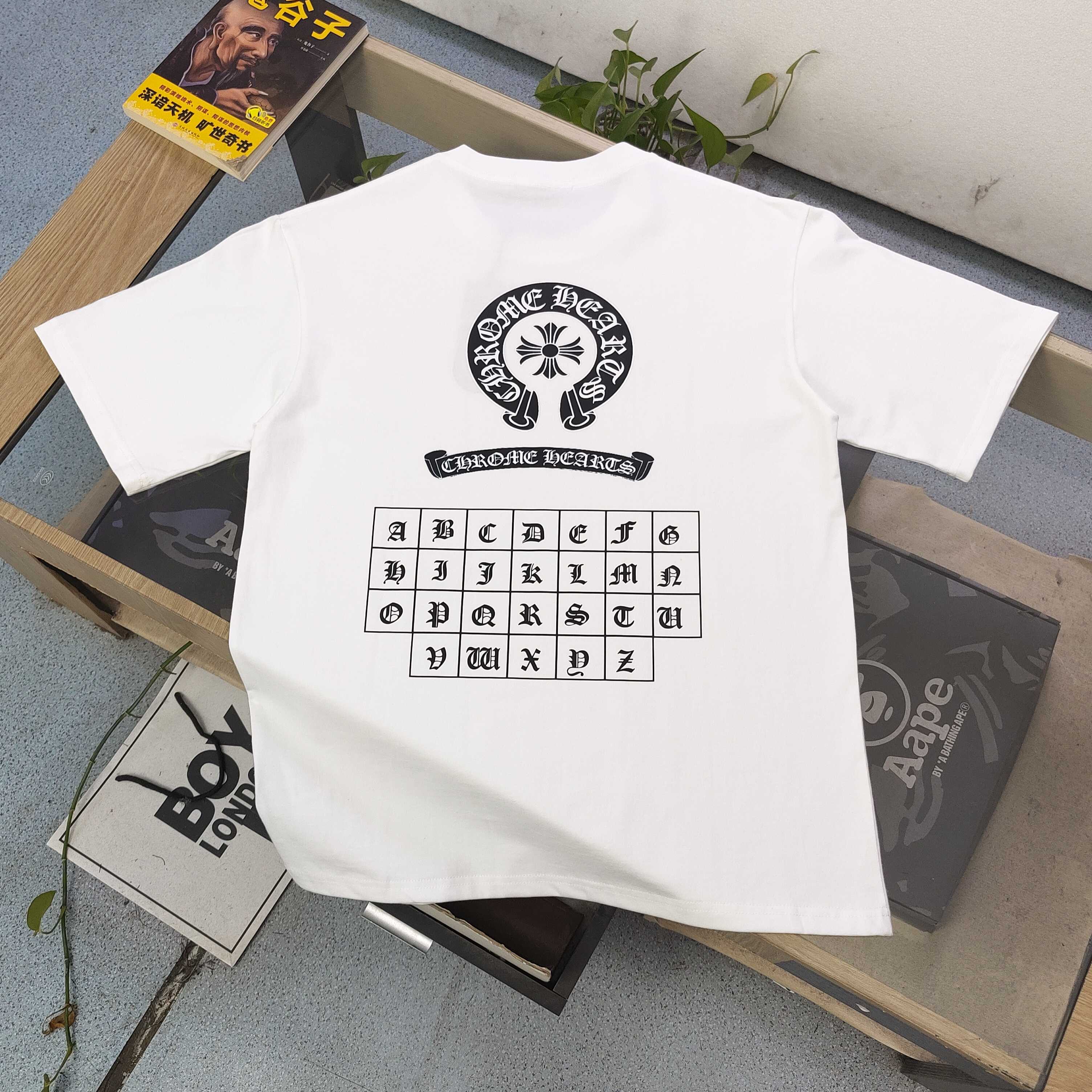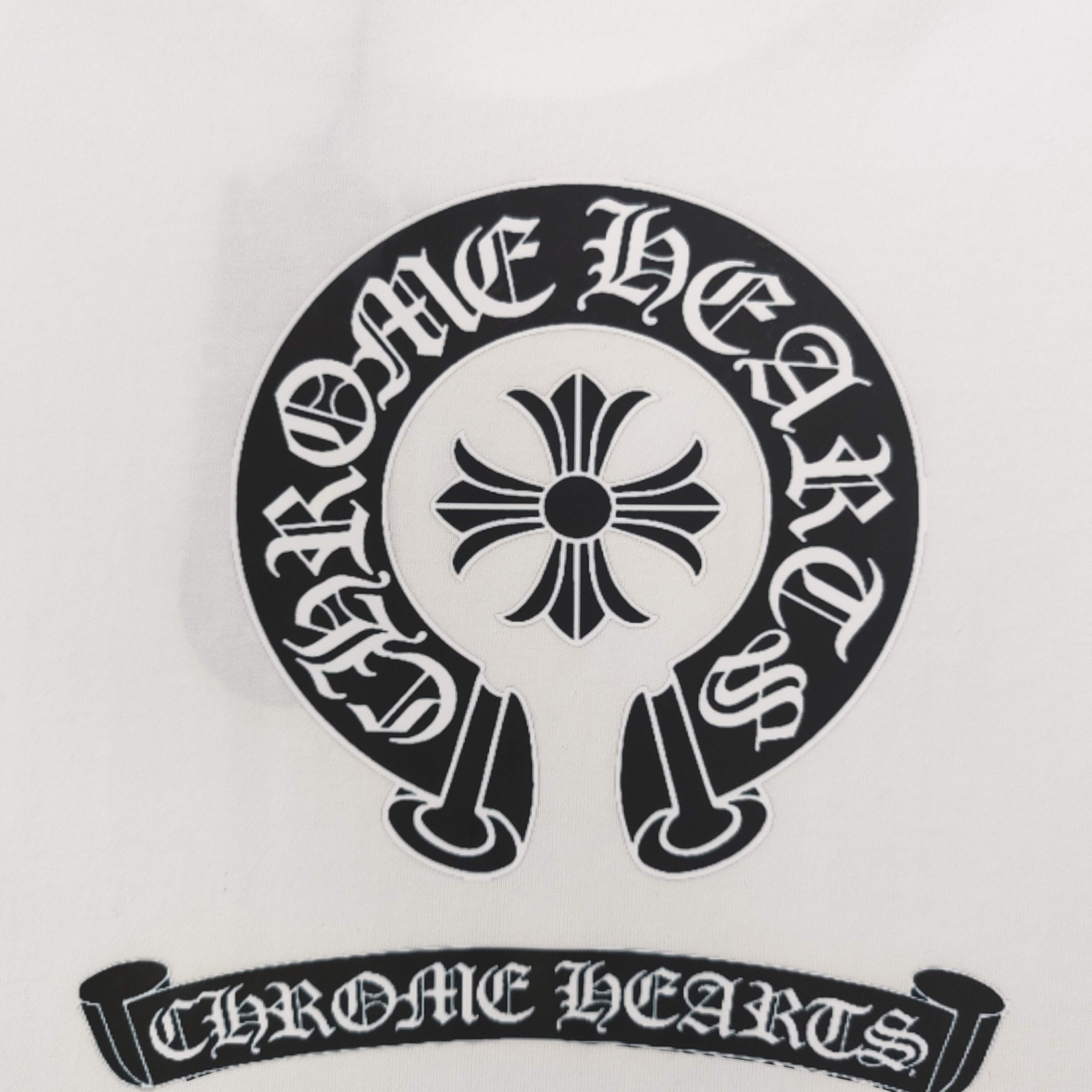 2025新款Chrome Hearts克罗心梵文马蹄图案logo字母印花休闲情侣短袖T恤 经典图案设计 朋克不羁 采用250g克重纯棉面料 印花很稳固的 不会开裂 可搭配情侣刷街必备 亲肤透气 简直太个性了 男女同款