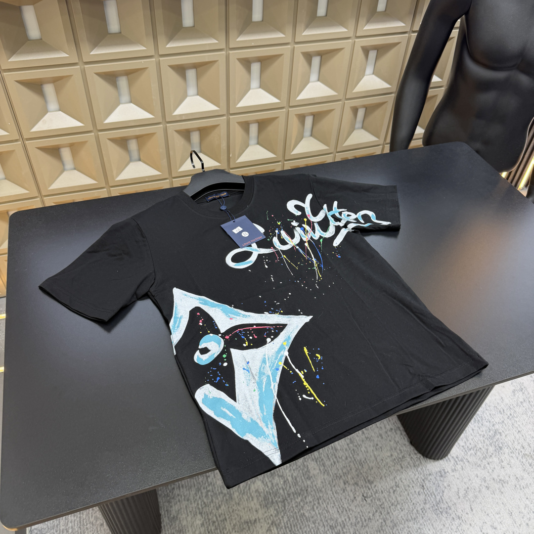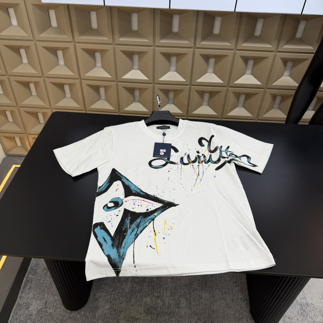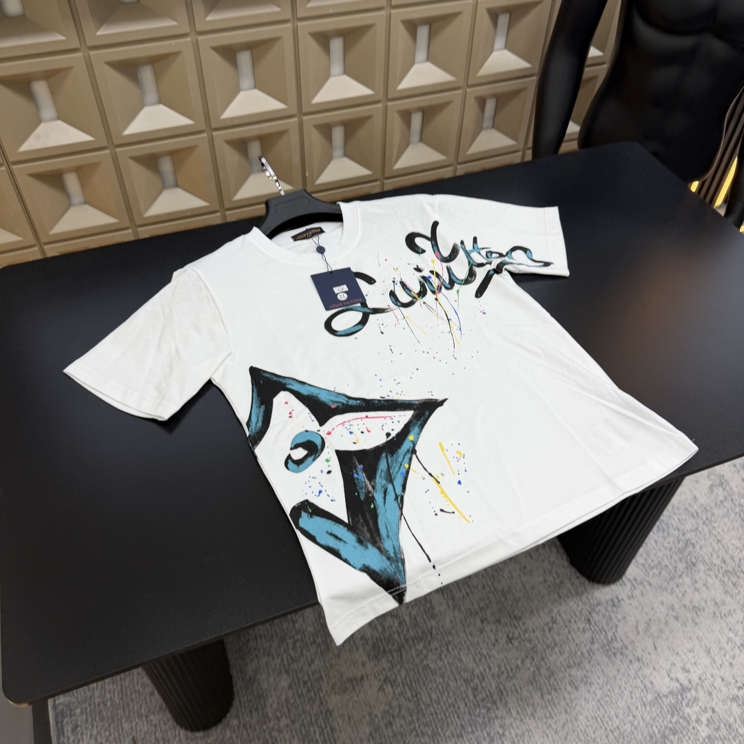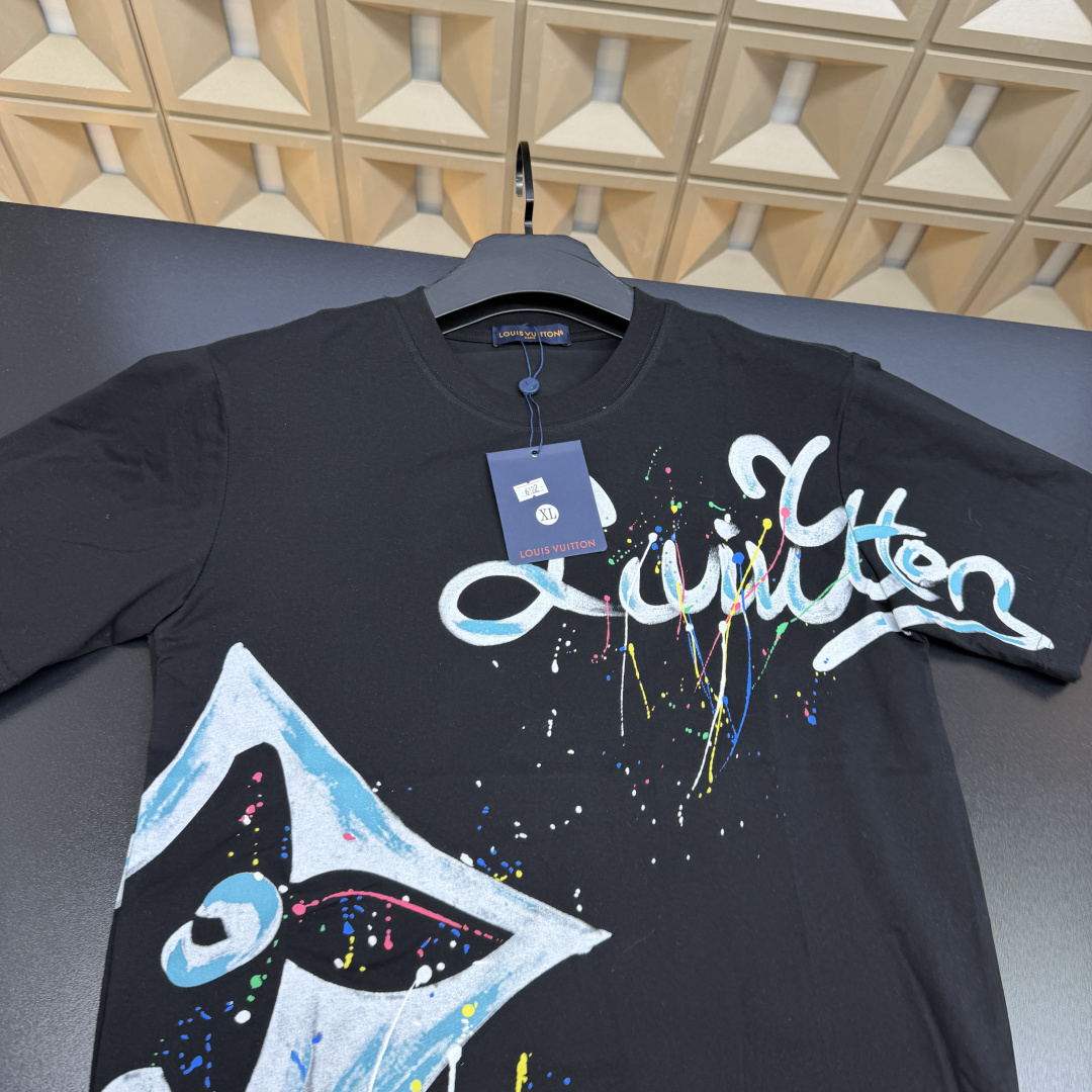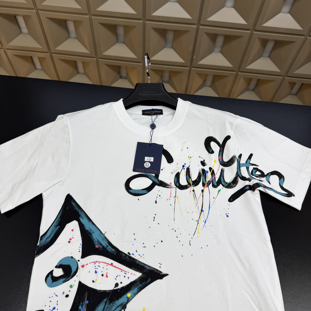 春夏新款上新爆炸输出 Lv路易威登 T恤短袖 满印多花字母Logo泼墨炫彩 三标齐全官网一致 放大看细节原相机实物拍摄
