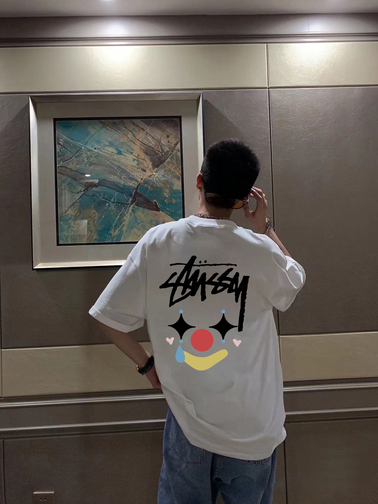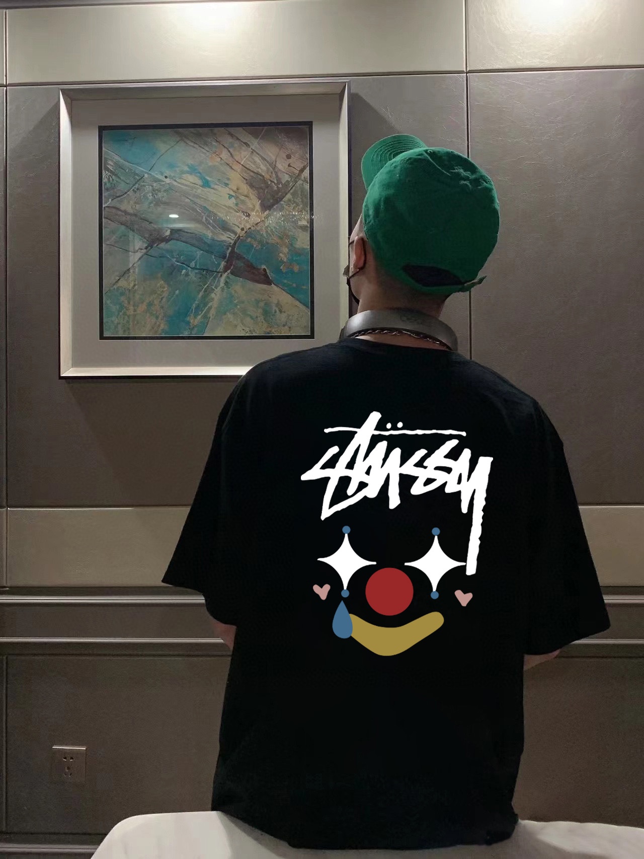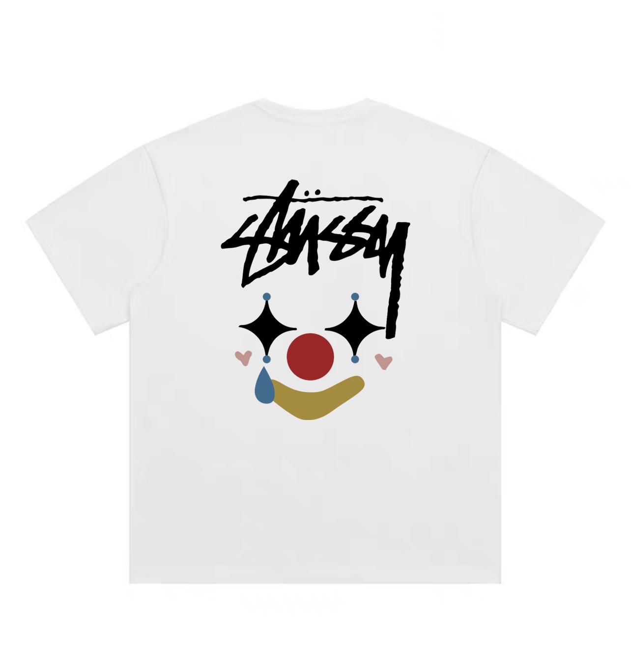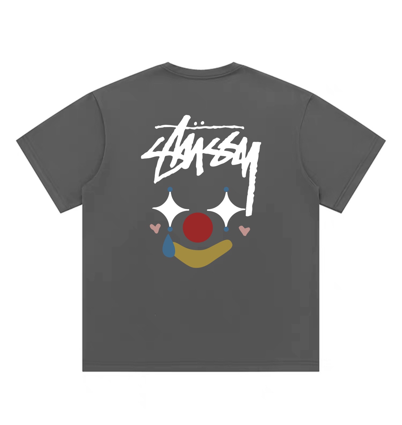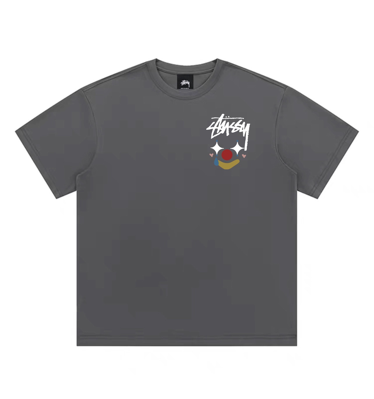 Stussy斯图西彩绘小丑圆领短袖半袖T恤 面料采用260克纯棉双纱食毛面料 双线二本针压线 久洗不变形 原版定制三标 高端进口印花 随意水洗 情侣可穿 男女同款 黑色 白色 深灰色 M XL M 衣长70肩宽51胸围112 L 衣长72 肩宽54胸围116 XL衣长74肩宽57胸围120