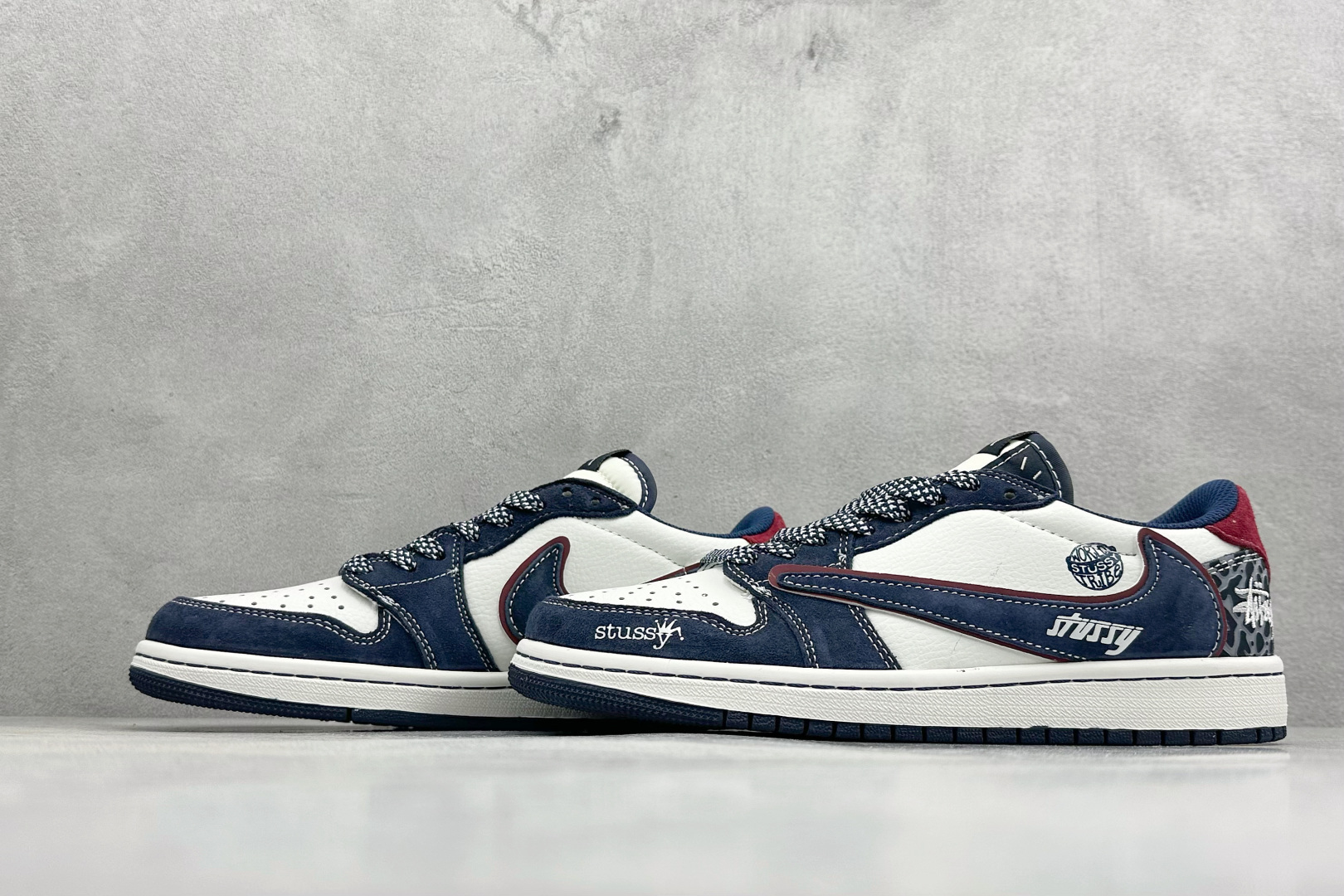 Stussy x Air Jordan 1 Low 乔丹1代低帮斯图西联名白深蓝红