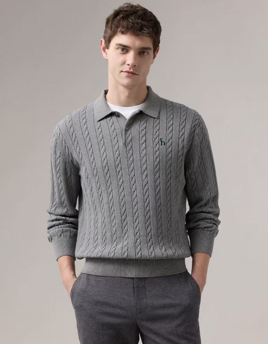 哈吉斯经典款刺绣麻花纹路毛衣